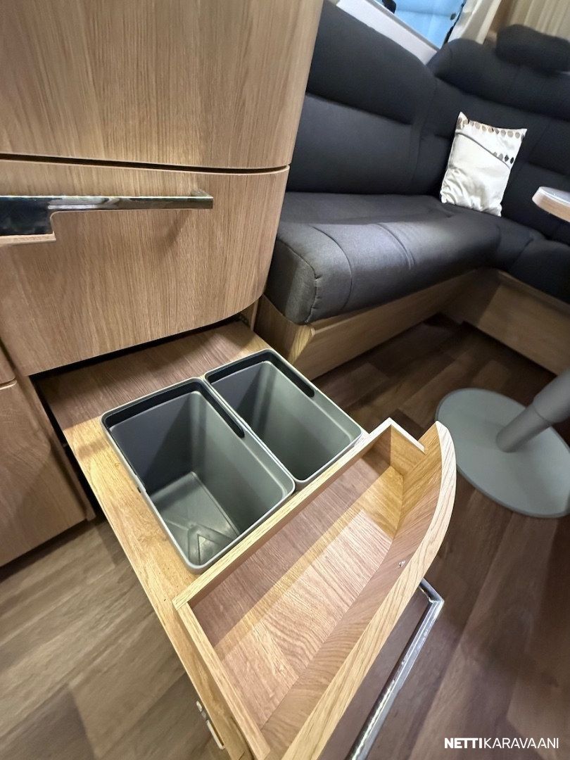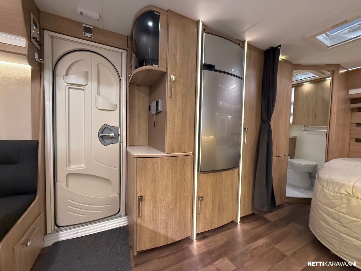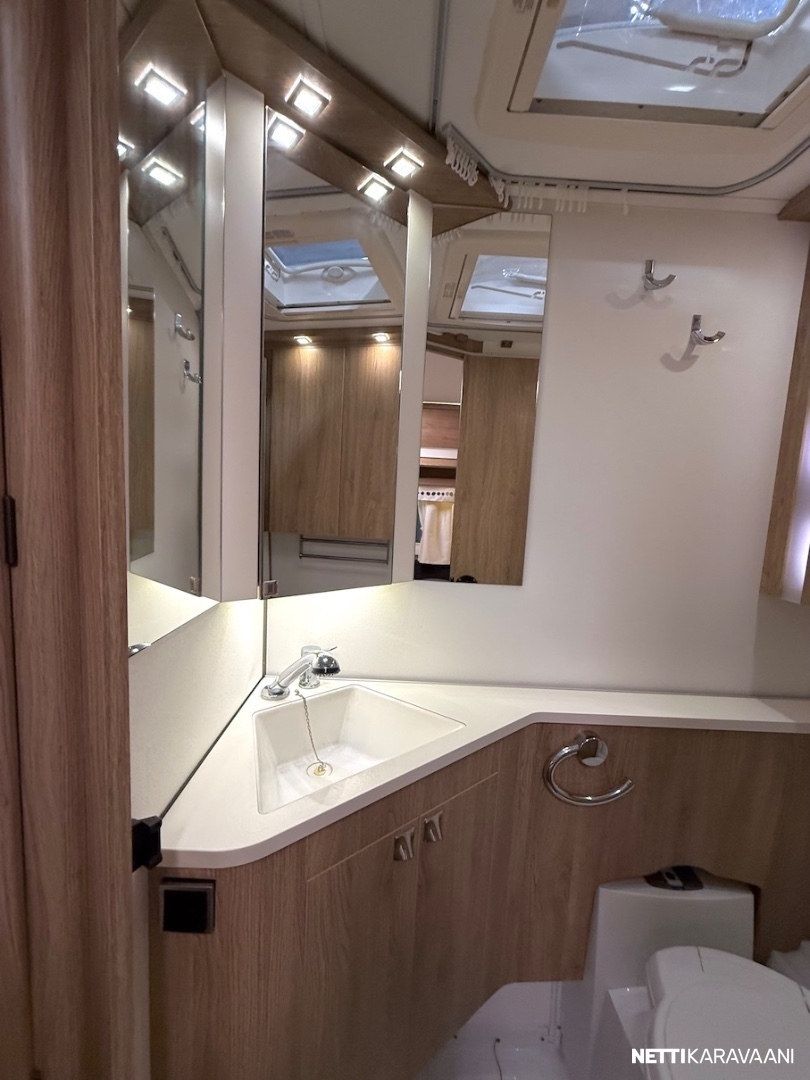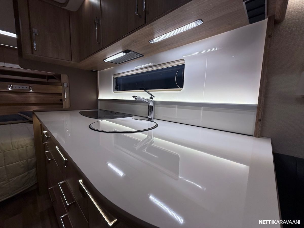 Alde -nestekeskuslämmitys, nestekiertoinen lattialämmitys, vesijärjestelmät sisällä lämpimässä, EcoPrim Foam -eristys, suuri jääkaappi erillisellä pakastimella, mikrouuni, suuri Heki -kattoikkuna, hyttysverkko-ovi, alumiinivanteet, kitkavetopää, liesituuletin, TV-antenni ja TV-teline, suksiboksi, kWh-mittari, radio ja kaiuttimet, LED-valaistus ja epäsuora tunnelmavalaistus.