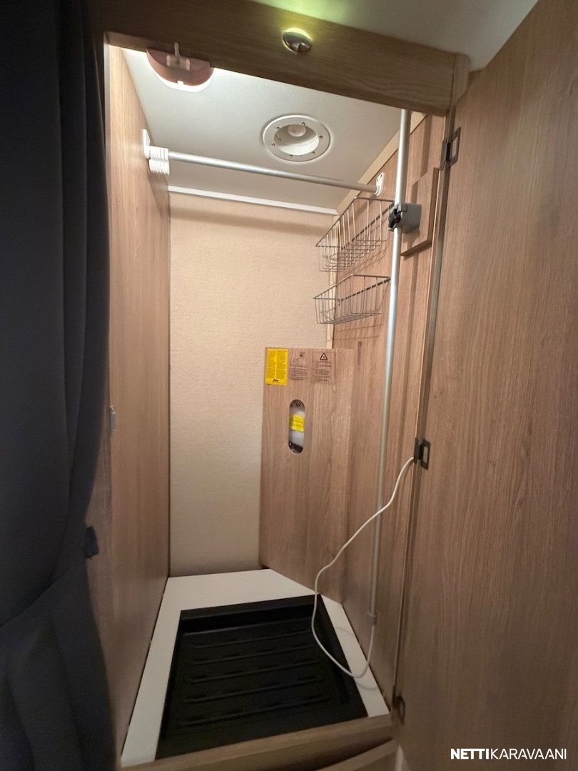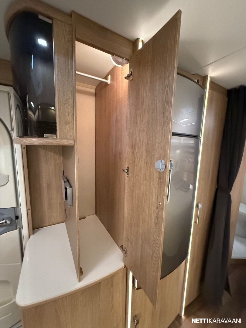 Jääkaappi, Kasetti WC, Kasettiverhot, Liesi, Lämminvesiboileri, Mikroaaltouuni, Pakastelokero, Pesuallas, Suihku, TV-antenni tai lautasantenni, Alde, Erikoisvanteet, Eristetty harmaavesisäiliö, Kattoluukku, Lattialämmitys, Sähköpatruuna, Tukijalat