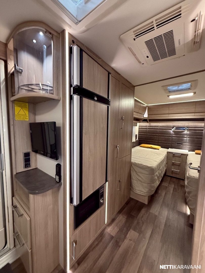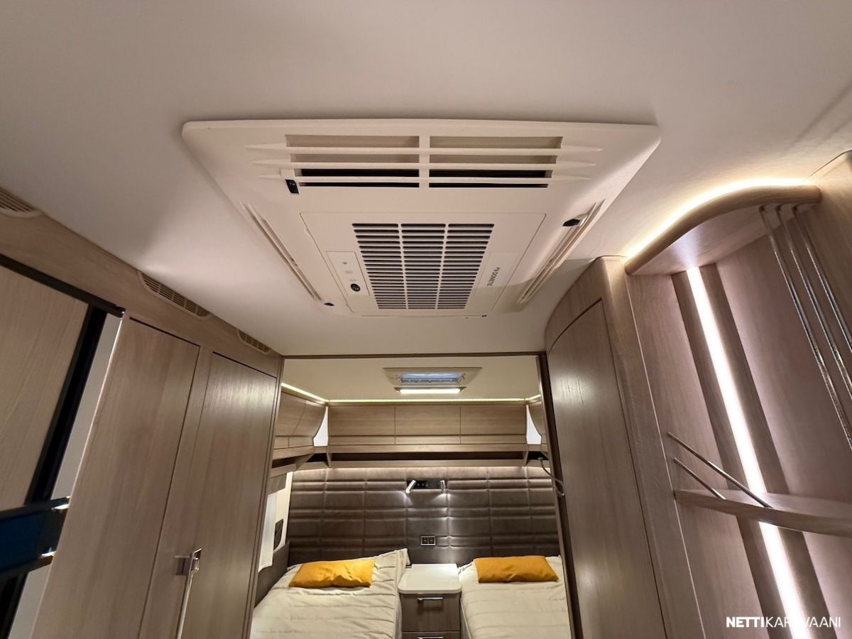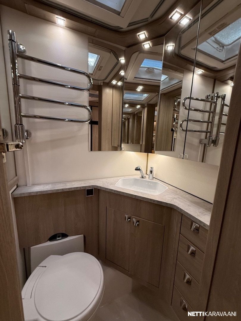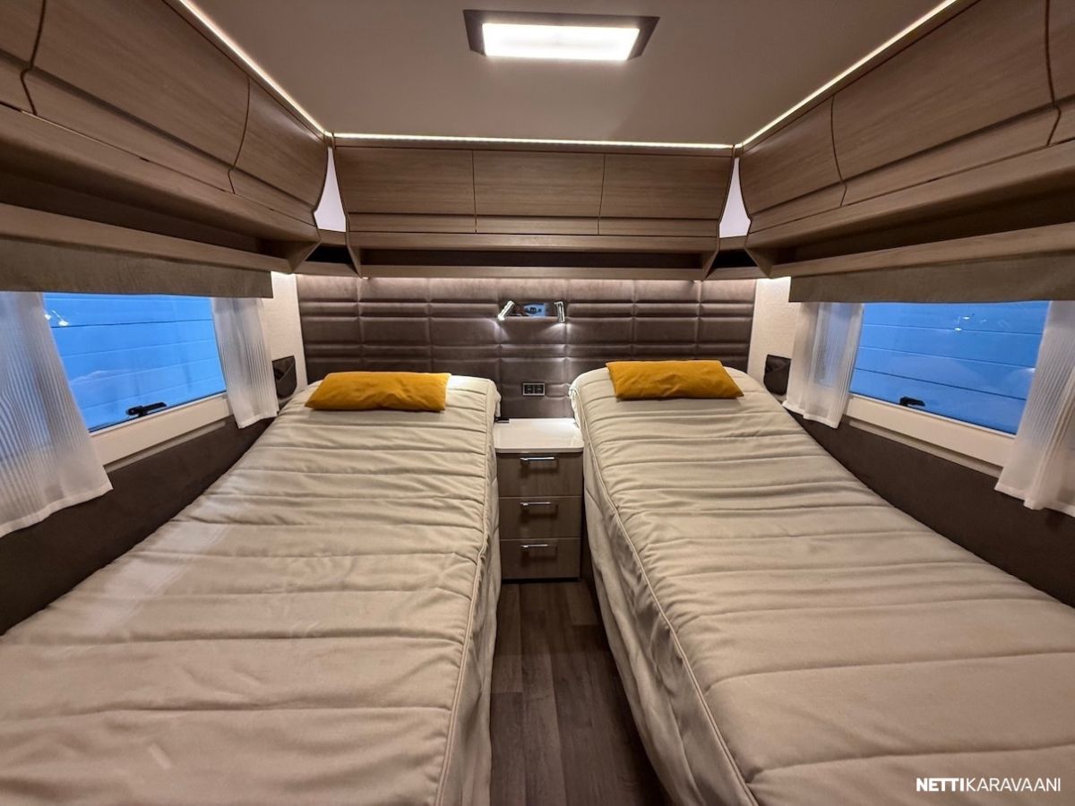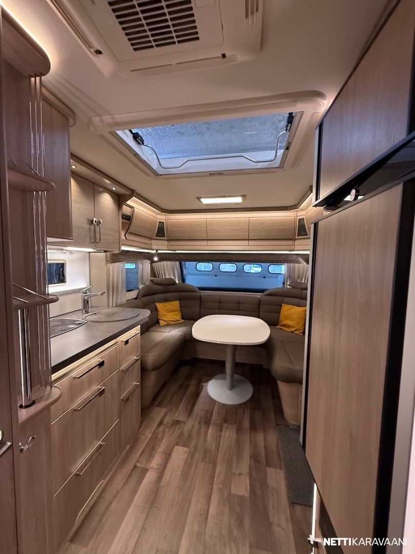 Alde 3020 -nestekeskuslämmitys kaasulla ja sähköllä, nestekiertoinen lattialämmitys, EcoPrim -foam eristys, kaikki vesijärjestelmät sisällä, sileä ulkopelti, hyttysverkko-ovi, kirkkaat Mini Heki -kattoluukut, CD-radio ja kaiuttimet, suksikotelo ulosvedettävällä kaukalolla, TV-teline, TV-antenni, LED-valaistus ja epäsuora tunnelmavalaistus, alumiinivanteet, kitkavetopää, liesituuletin, jousipatjat ja sijauspatjat, päiväpeitot, sähkökeskus 230 v ulosotolla ja kWh-mittarilla, Dometic -asuinosan ilmastointi - Mukavuuspaketti (sis. Suuri jääkaappi erillisellä pakastimella ja molemminpuolin avattavalla ovella, tavaraluukku sängyn alle, niskatyynyt istuinryhmässä, pyyhekuivain, sähköisesti ylösnostettava vuoteen pääty) - Design -paketti (sis. 15 tuuman alumiinivanteet, ikkunallinen ulko-ovi, suuri Heki 2 -kattoikkuna) - Mikrouuni jääkaapin alla. - Ekopaketti (sis. 130 Ah AMG Akku, akkusensori, Kabe Airvent -tuuletinkattoluukku omalla termostaatilla, aurinkopaneeli)