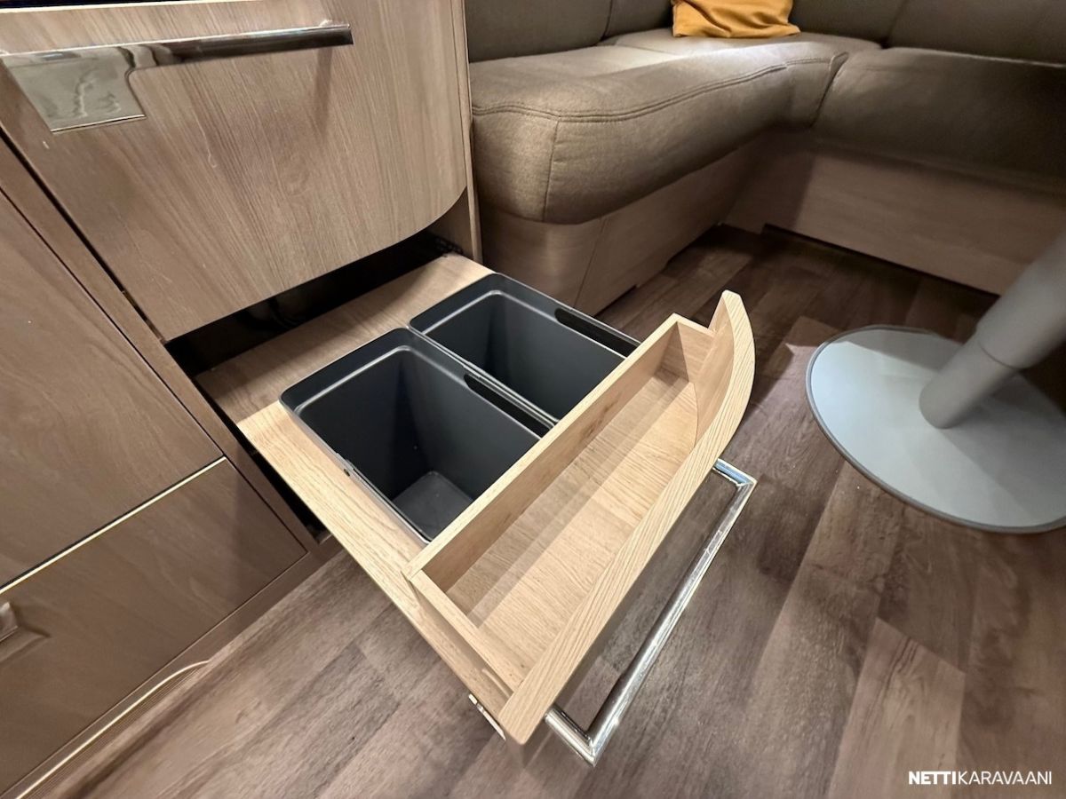 Jääkaappi, Kasetti WC, Kasettiverhot, Liesi, Lämminvesiboileri, Mikroaaltouuni, Pakastelokero, Pesuallas, Suihku, TV-antenni tai lautasantenni, Alde, Aurinkopaneeli, Erikoisvanteet, Eristetty harmaavesisäiliö, Kattoluukku, Lattialämmitys, Sähköpatruuna, Tukijalat