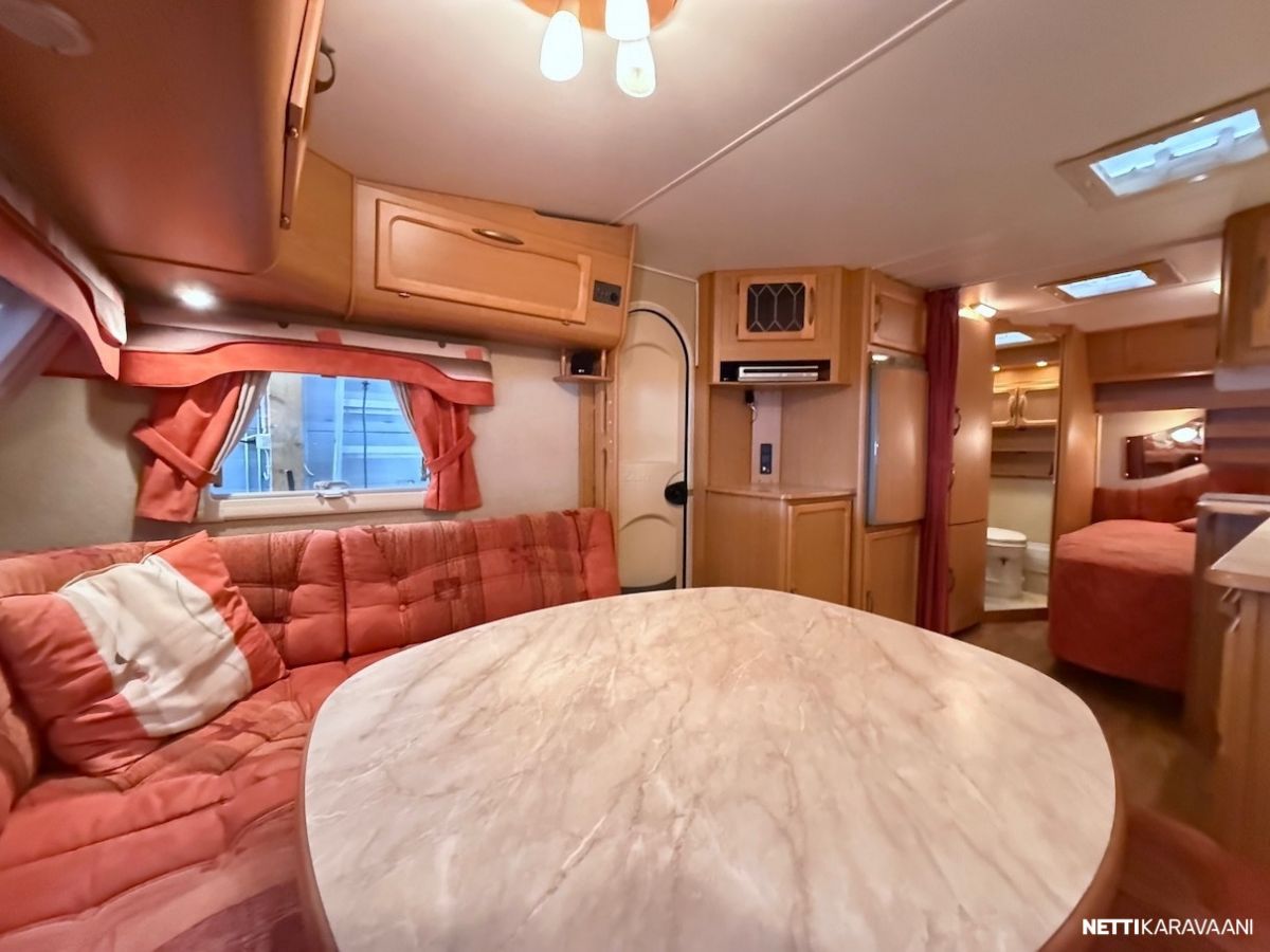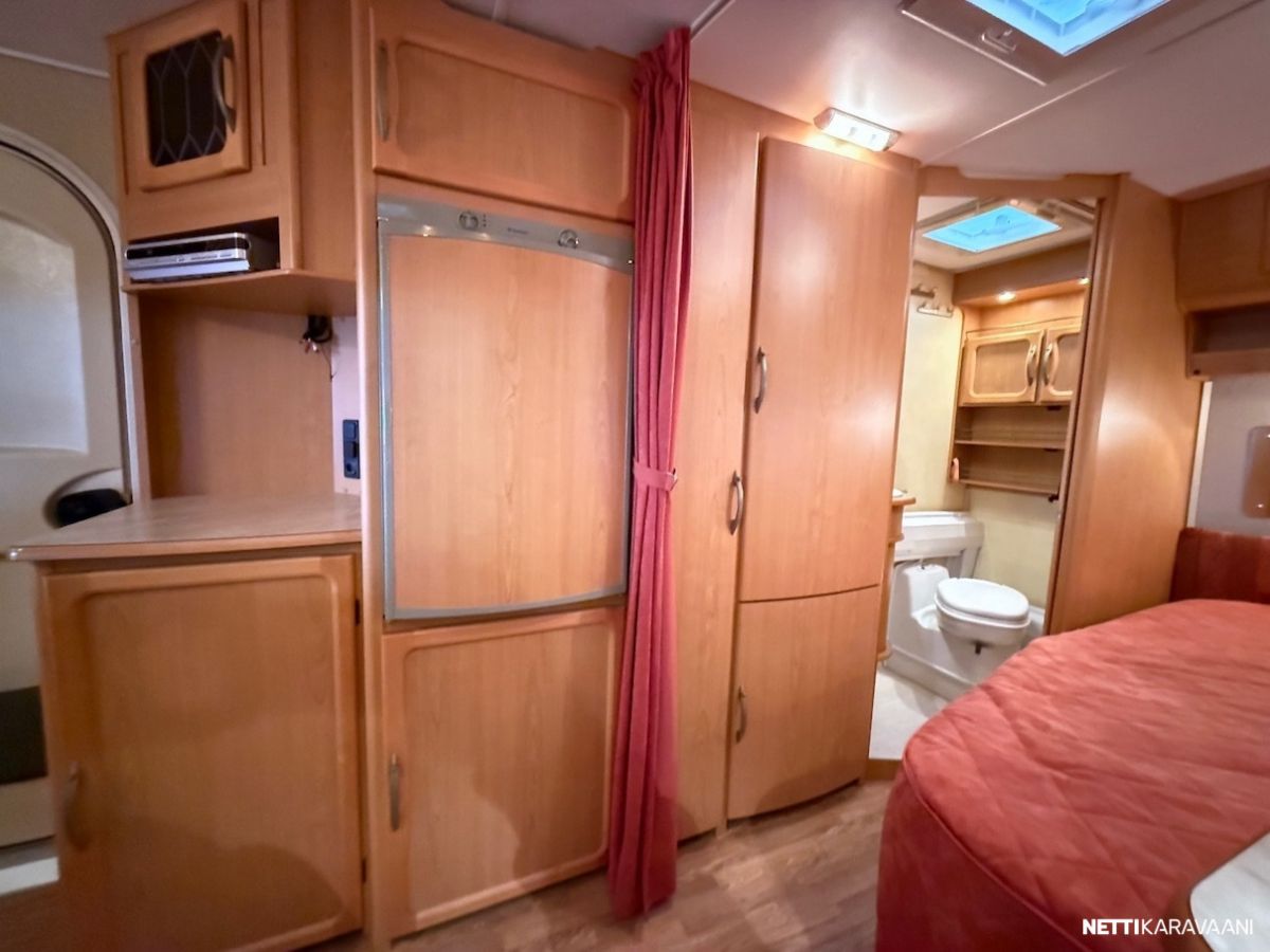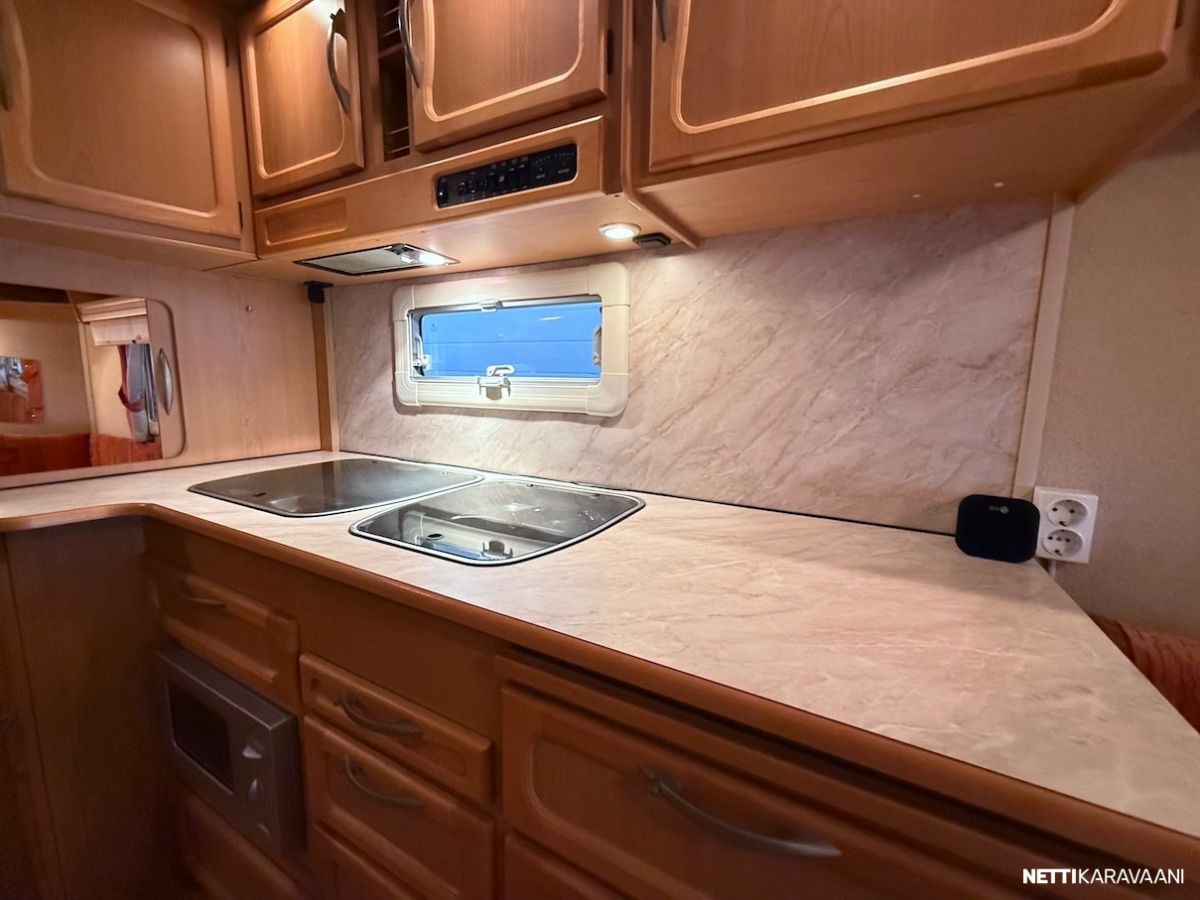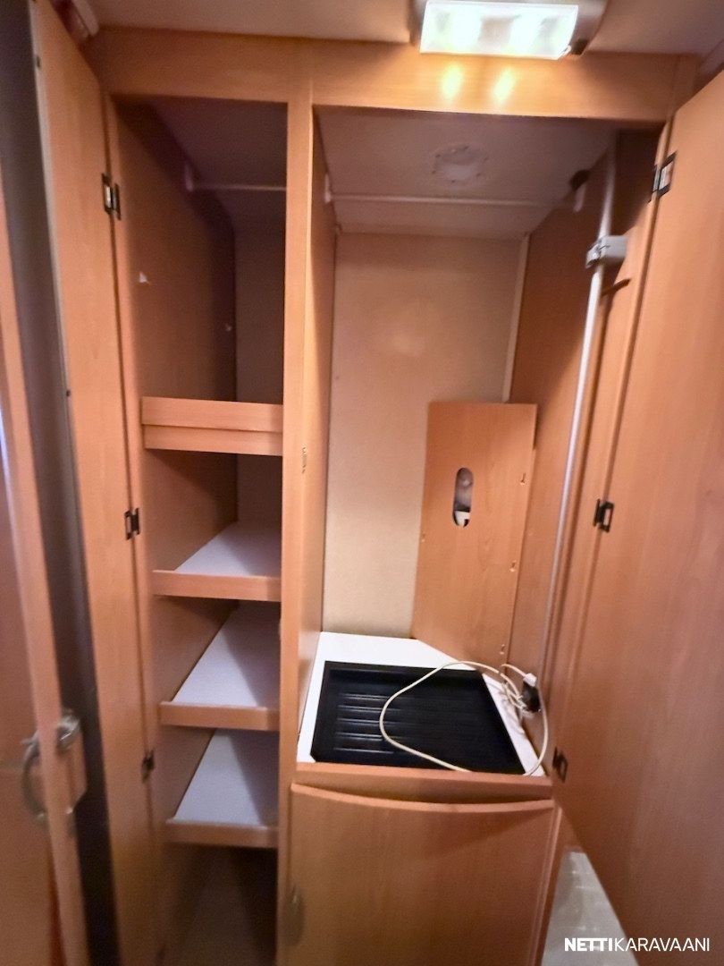 Jääkaappi, Kasetti WC, Kasettiverhot, Liesi, Mikroaaltouuni, Pakastelokero, Pesuallas, TV-antenni tai lautasantenni, Alde, Erikoisvanteet, Eristetty harmaavesisäiliö, Kattoluukku, Lattialämmitys, Sähköpatruuna, Tukijalat