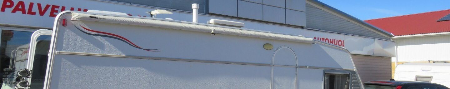 Alde nestekiertolämmitys, sähköpatruuna, nestekiertoinen lattialämmitys, lämminvesi, pyöräteline, markiisi. Hieno haalistumaton Kabe.