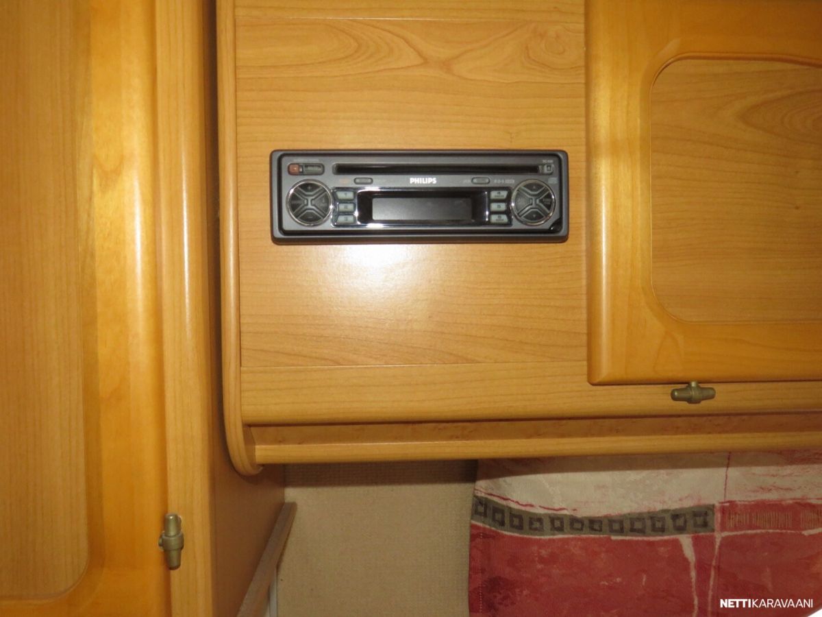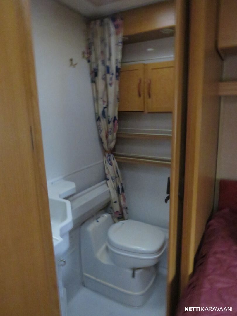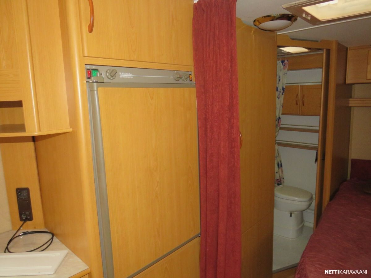 Jääkaappi, Kasetti WC, Kasettiverhot, Liesi, Lämminvesiboileri, Pakastelokero, Pesuallas, Suihku, TV-antenni tai lautasantenni, Alde, Eristetty harmaavesisäiliö, Kattoluukku, Lattialämmitys, Sähköpatruuna, Tukijalat