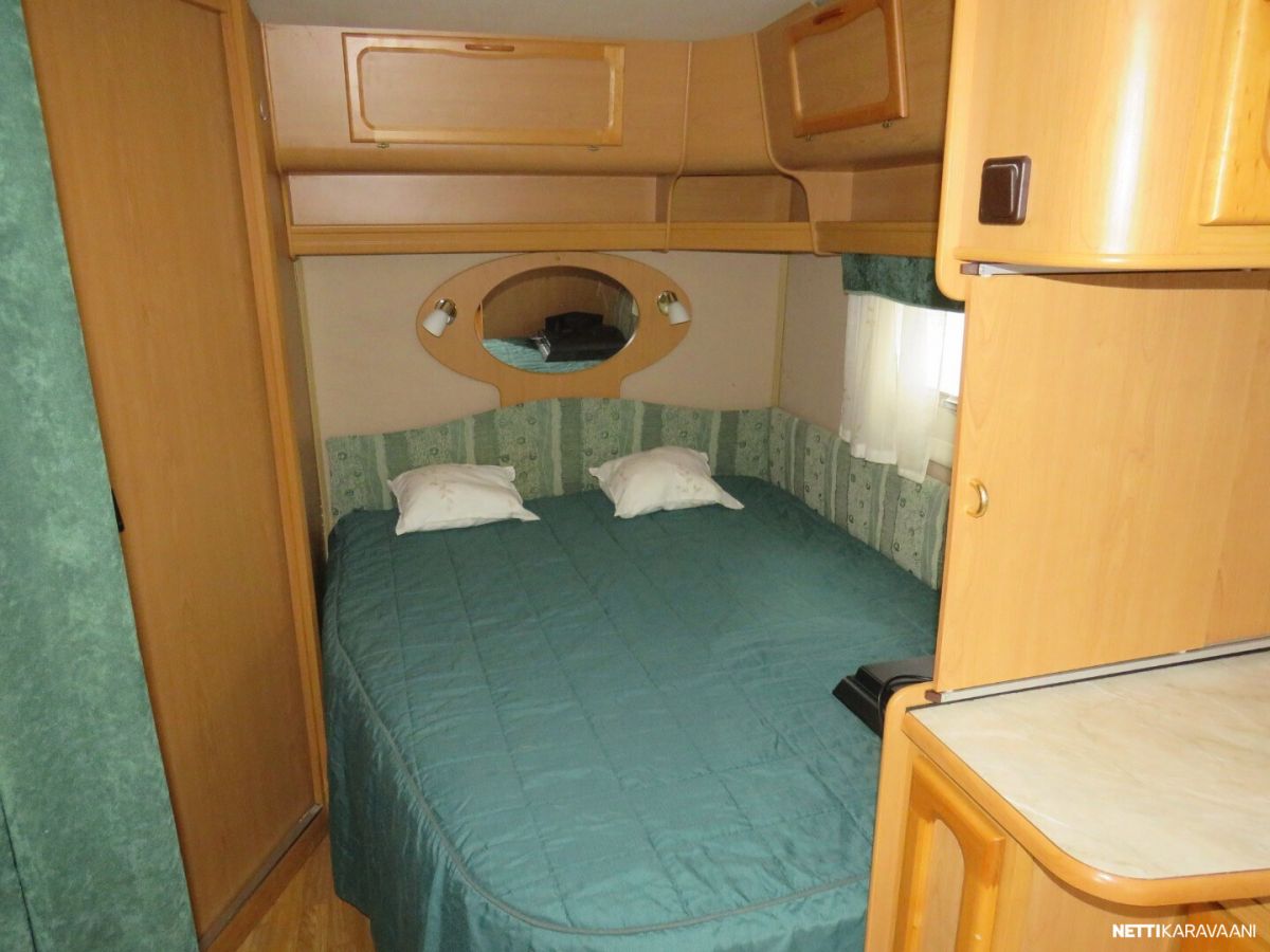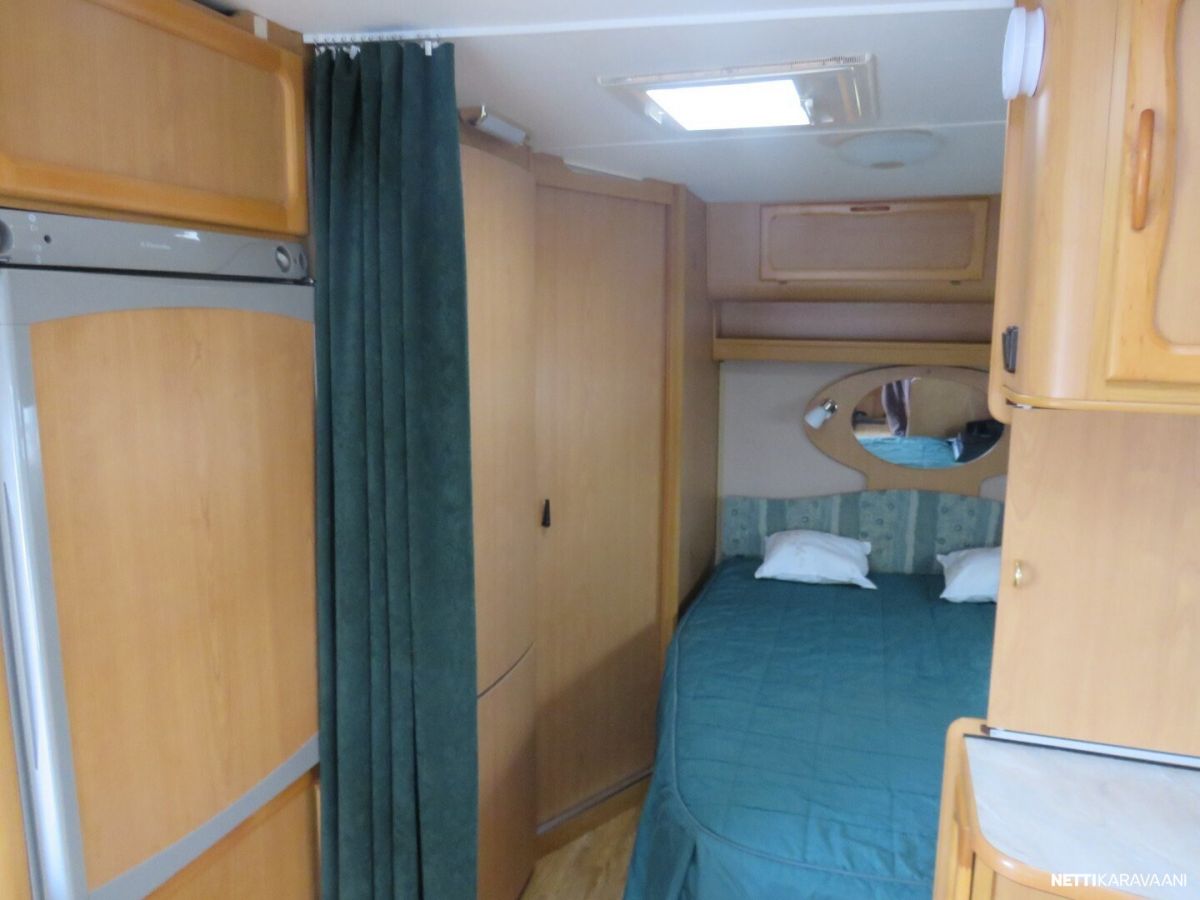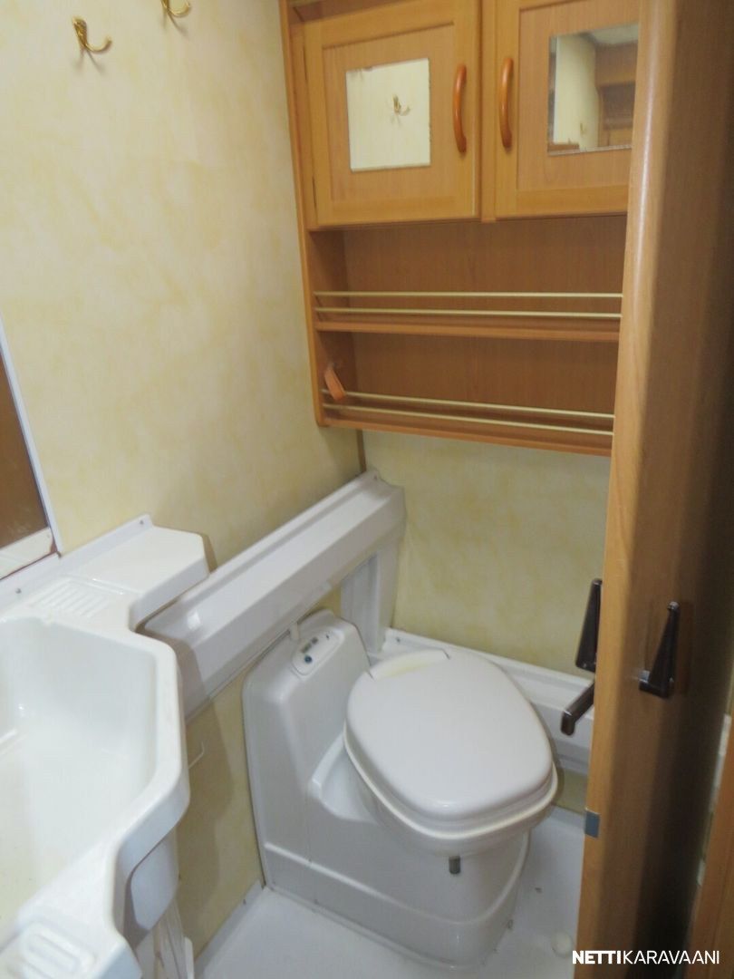 Jääkaappi, Kasetti WC, Kasettiverhot, Liesi, Lämminvesiboileri, Mikroaaltouuni, Pakastelokero, Pesuallas, Suihku, TV-antenni tai lautasantenni, Alde, Eristetty harmaavesisäiliö, Kattoluukku, Lattialämmitys, Sähköpatruuna, Tukijalat