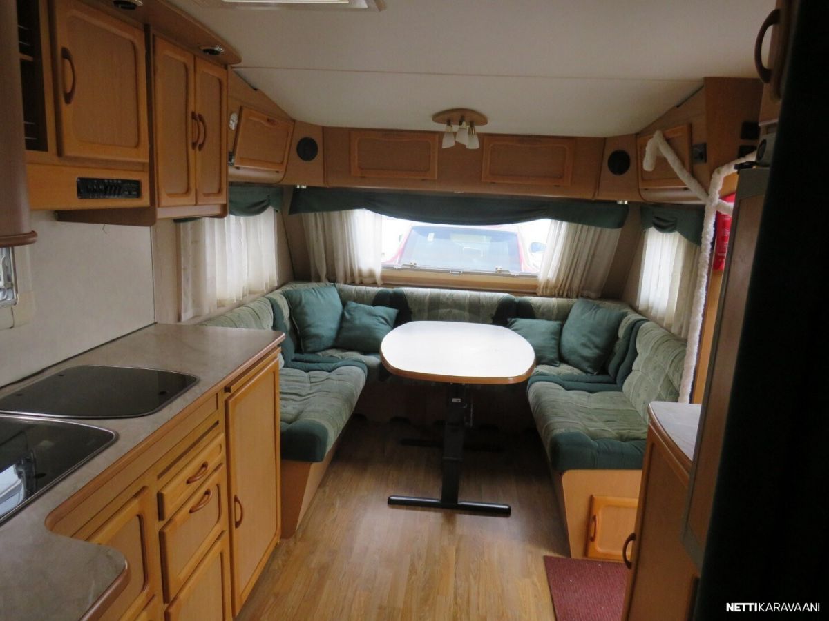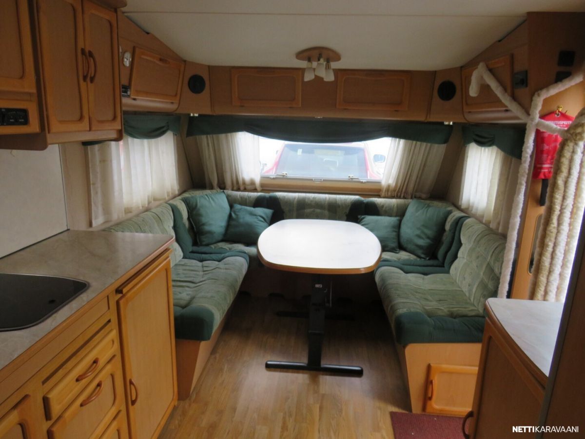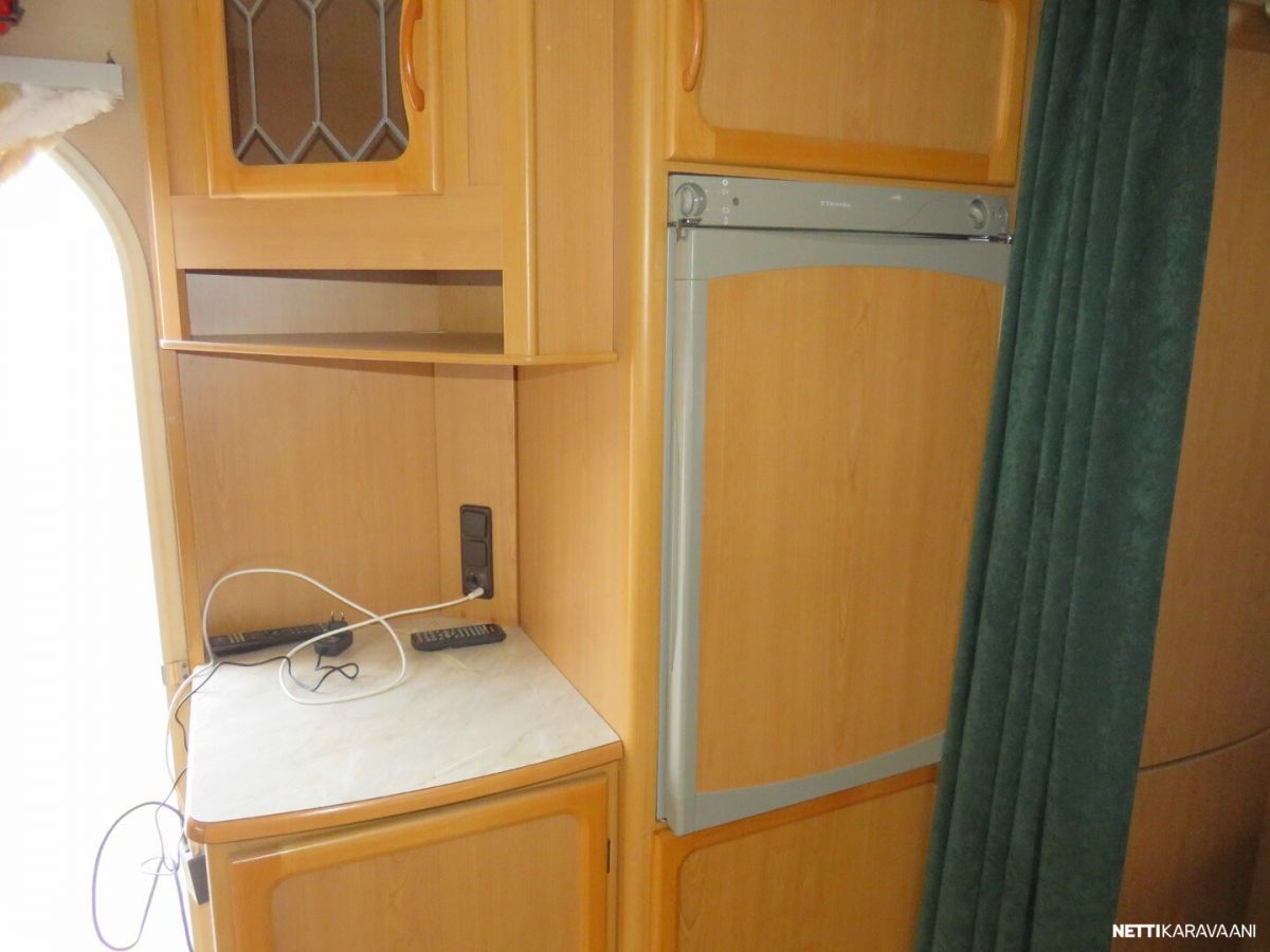Jääkaappi, Kasetti WC, Kasettiverhot, Liesi, Lämminvesiboileri, Mikroaaltouuni, Pakastelokero, Pesuallas, Suihku, TV-antenni tai lautasantenni, Alde, Eristetty harmaavesisäiliö, Kattoluukku, Lattialämmitys, Sähköpatruuna, Tukijalat