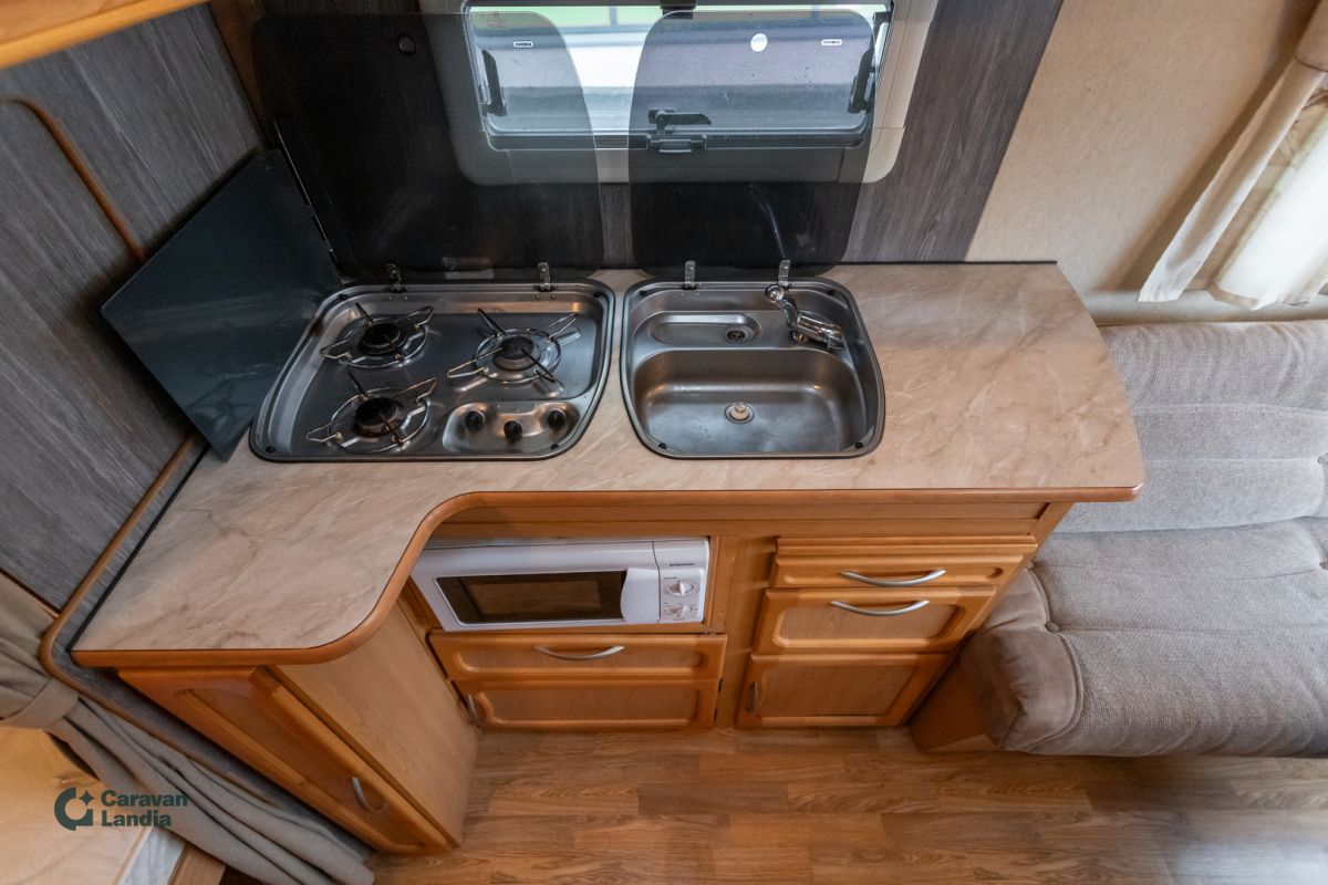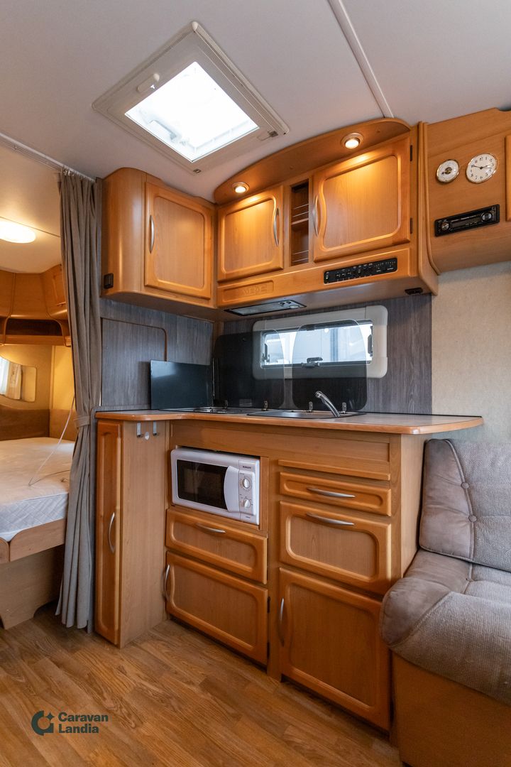 Lämminhenkinen Kabe valmiina unohtumattomiin seikkailuihin. Erikoisvanteet Tukijalat Kattoluukku Aurinkopaneeli Iso pöytäryhmä Keskuslämmitys Nestekiertolämmitys Alde Sähköpatruuna Lämminvesiboileri kWh-mittari Liesituuletin Jääkaappi Pakastelokero Mikroaaltouuni Liesi Parivuode pitkittäin Kasetti WC Pesuallas TV-antenni tai lautasantenni