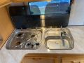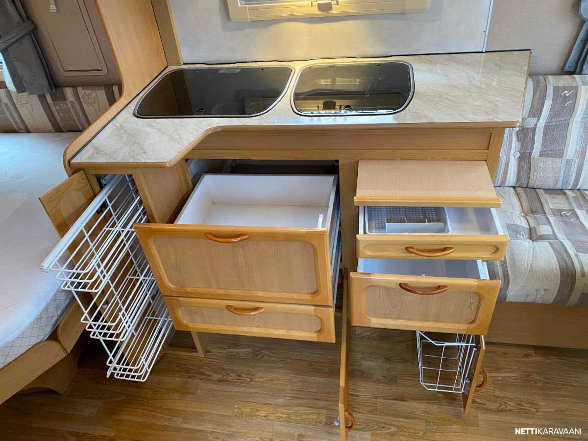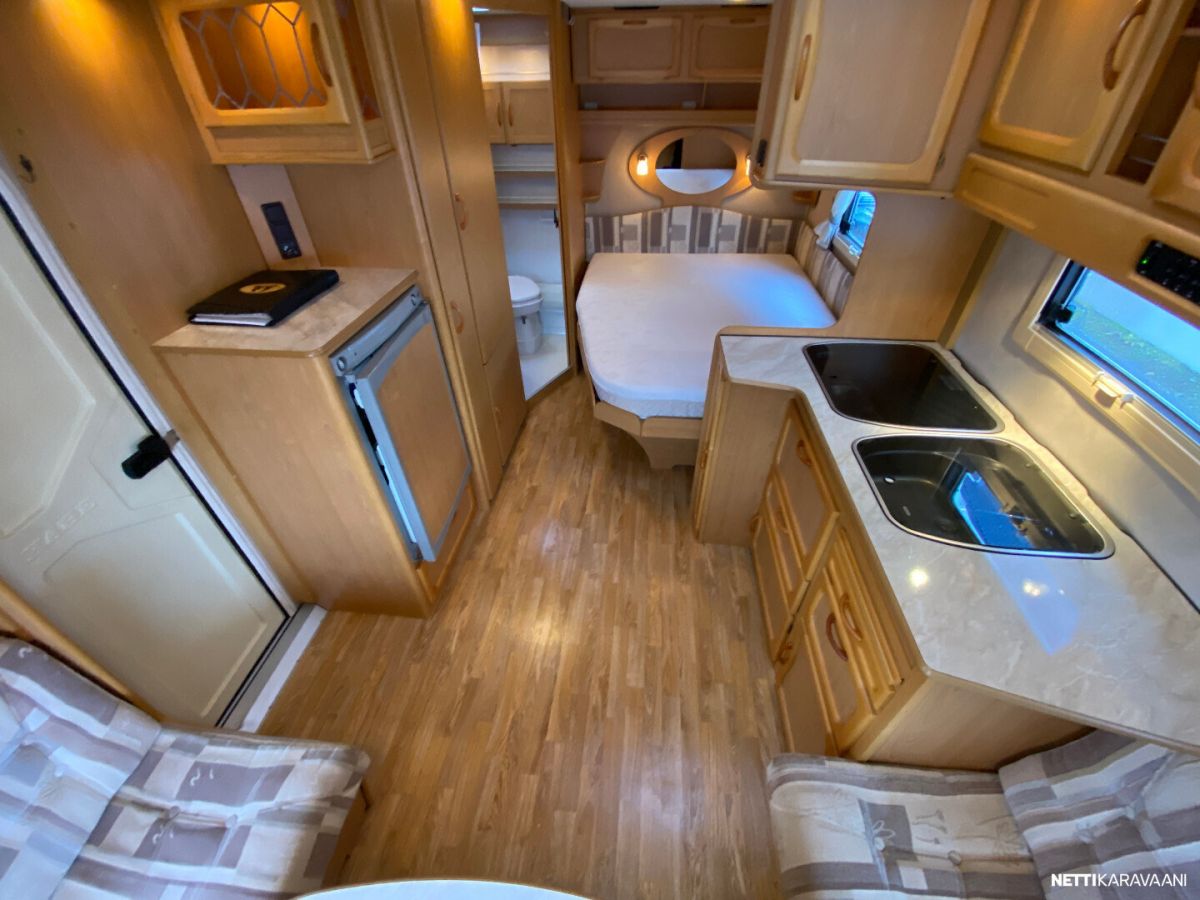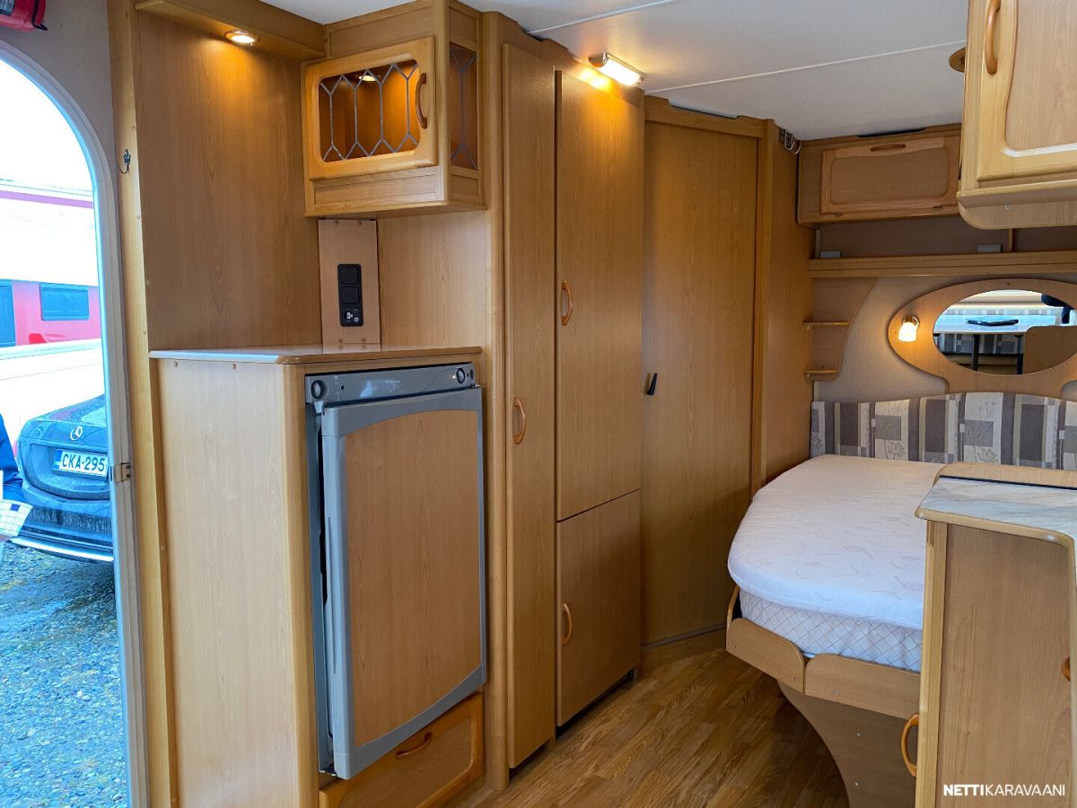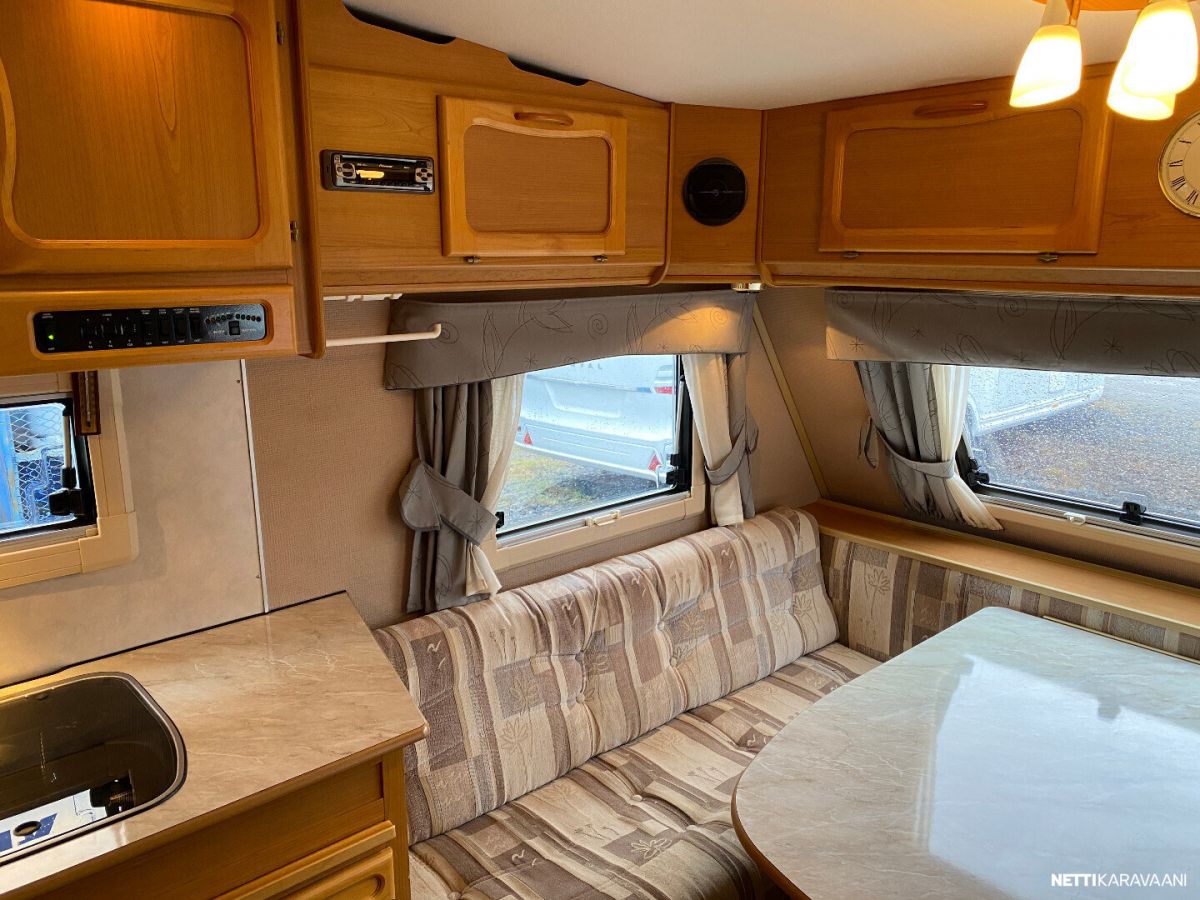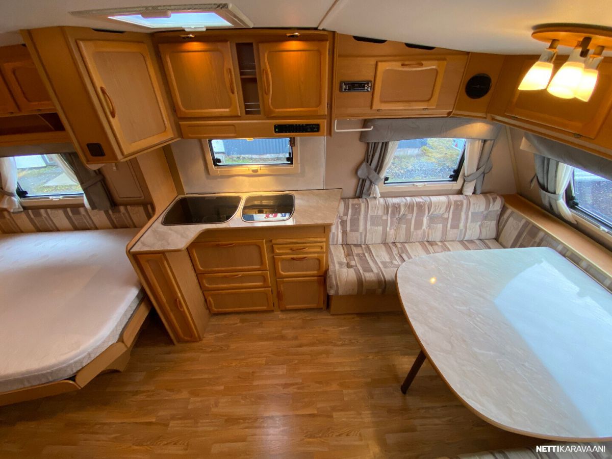 Alde-nestekeskuslämmitys, nestekiertoinen lattialämmitys, sähköpatruuna, lämmin vesi, bidesuihku, liesi, liesituuletin, jääkaappi / pakastinlokero, kiinteä raikasvesisäiliö, kiinteä harmaavesisäiliö, kasetti-wc, kasettiverhot, cd/radio, akku-/ laturivarustus, sähkömittari, telttapalvelu, tv-antenni, suksiluukku, tuuletusluukku, pyöräteline, kaasupullo... Alde vattenburen-centralvärme, elvärme, Alde-golvvärme, varmvatten, bide, spis, spisfläkt, kylskåp, fast vattentank, fast gråvattentank, kasettrullgardin, kasett-wc, tv-antenn, cd/radio, batteri/laddare, elmätare, tältservice, skibox, ventilationslucka, cykelhållare, gasflaska mm... Korileveys/Karossbredd 247cm. Oma-/Kokonaispaino 1210kg/ 1310kg, 1350kg. Egen-/Totalvikt Katsastus voimassa 31.12.2025 Vaunu myydään luovutushuollettuna ja tarkastettuna !!