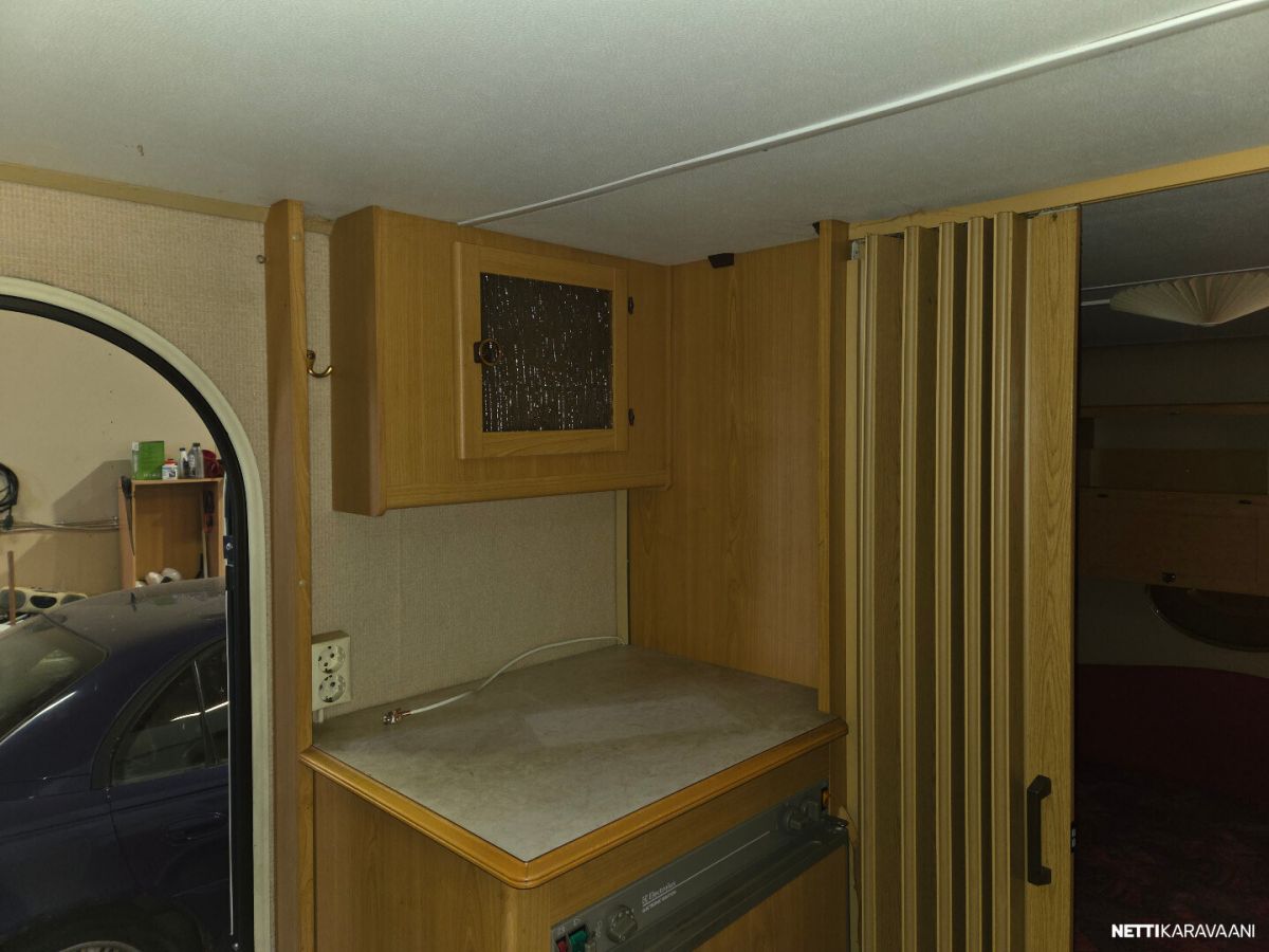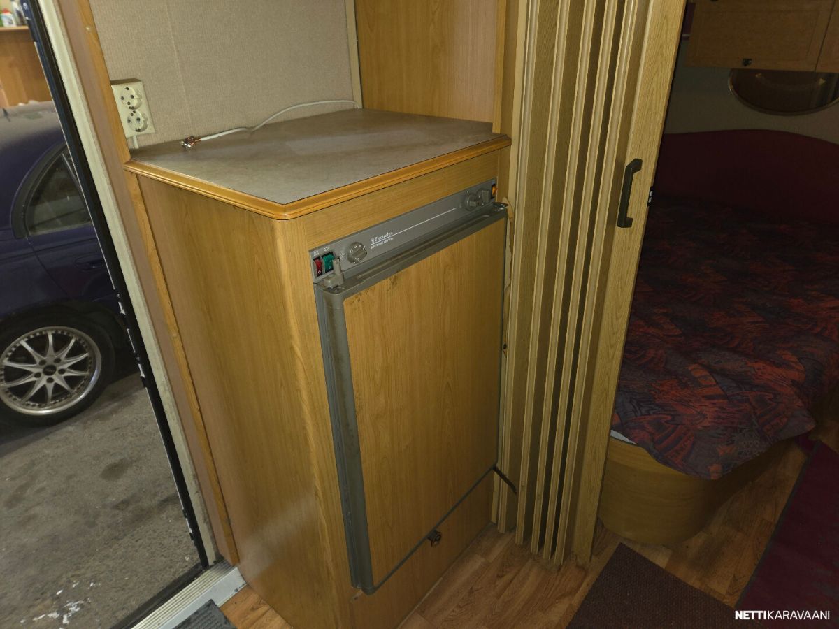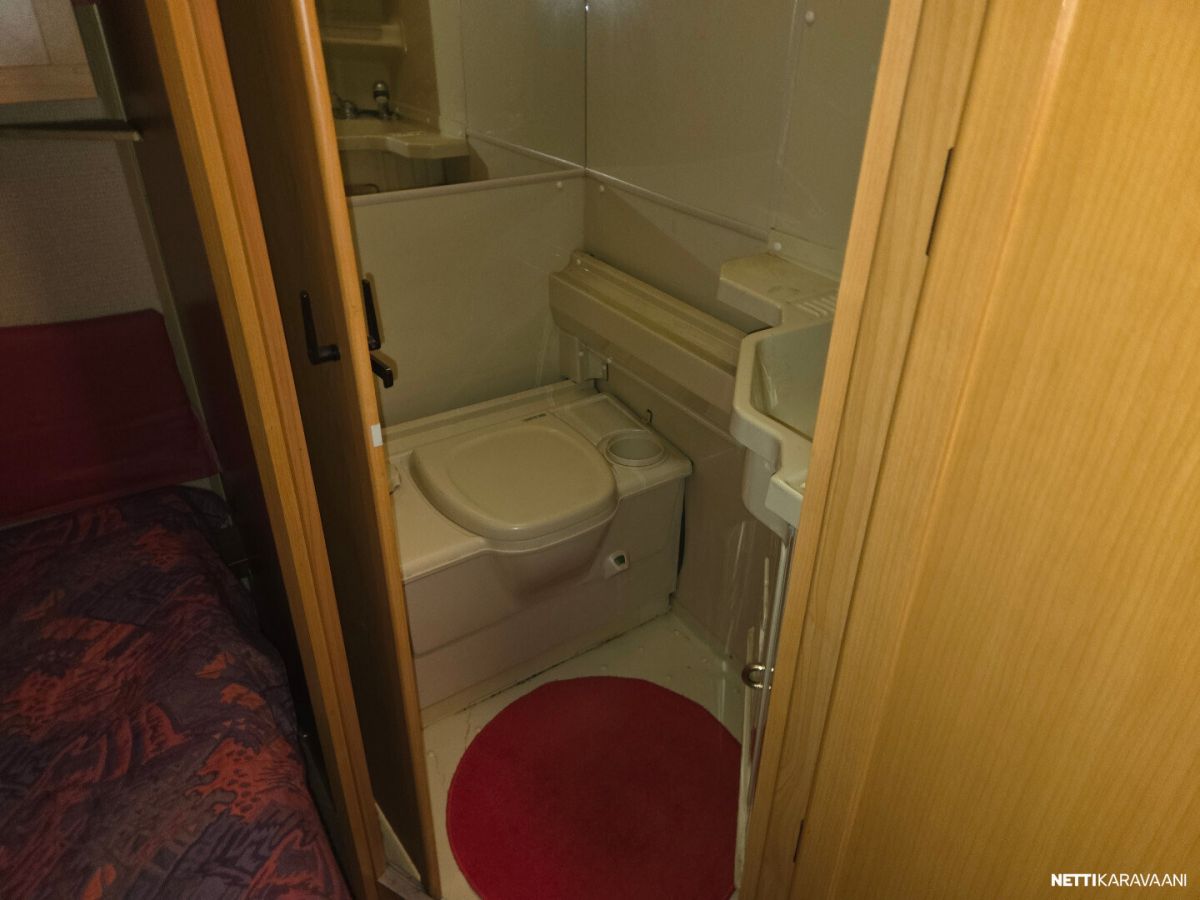 Jääkaappi, Kasetti WC, Lämminvesiboileri, Pakastelokero, Pesuallas, TV-antenni tai lautasantenni, Alde, Eristetty harmaavesisäiliö, Kattoluukku, Lattialämmitys, Sähköpatruuna, Tukijalat