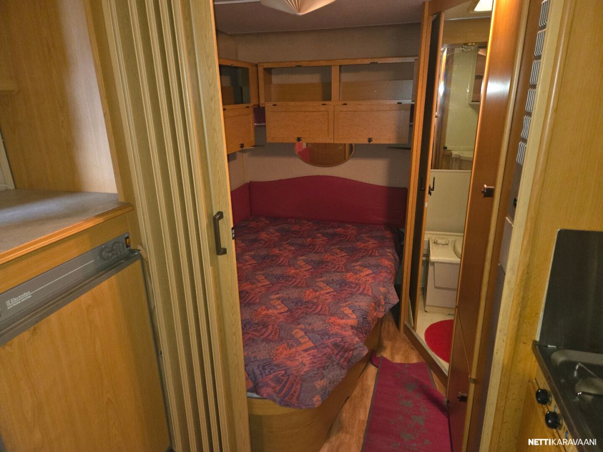 Leveys: 230 cm Pituus: 650 cm Rekisteröity: 01.06.1996 Kokonaismassa: 1 310 kg Oma massa: 1 010 kg Makuupaikat: 4 Lämmitys: Nestekiertoinen keskuslämmitys