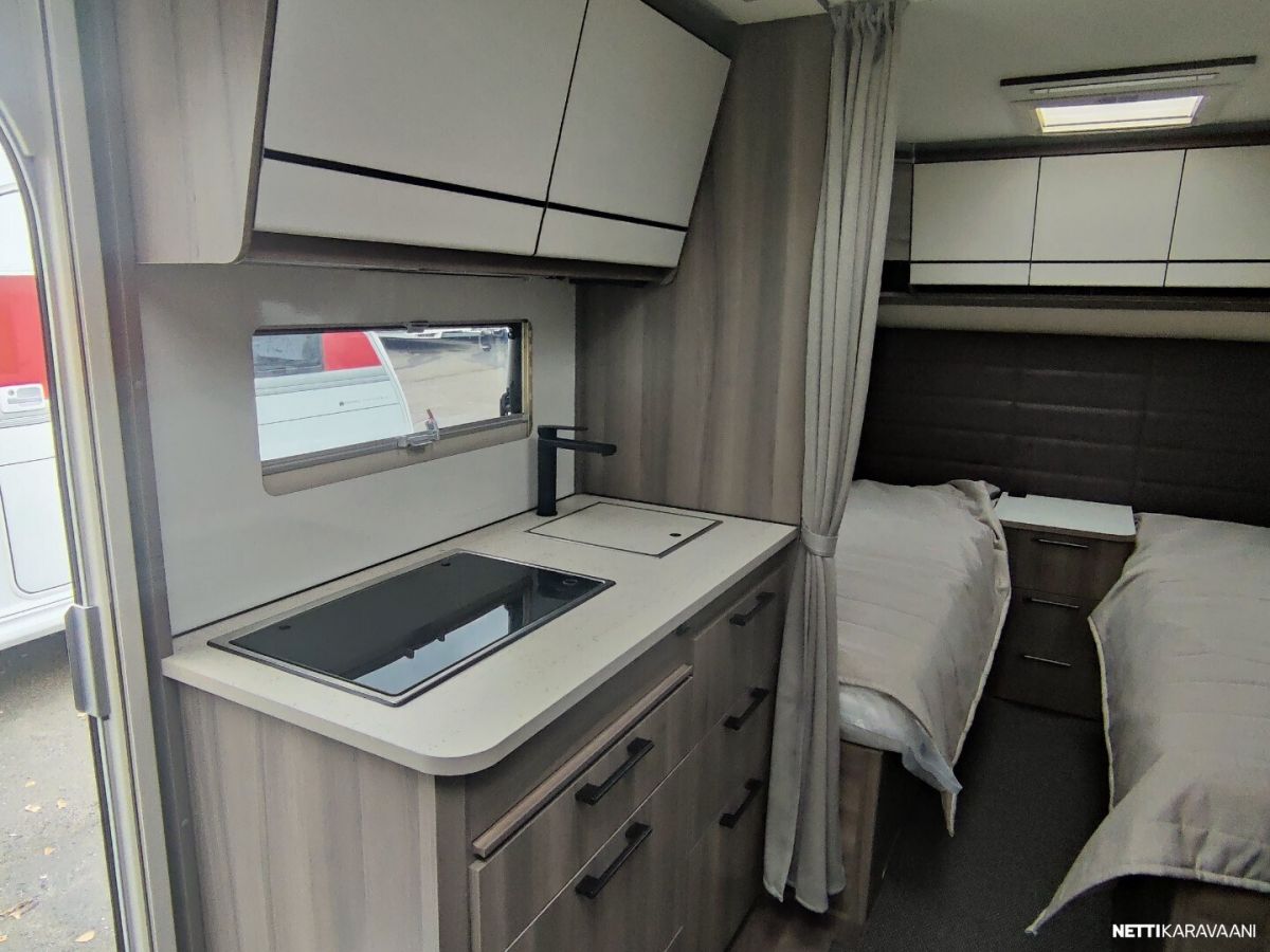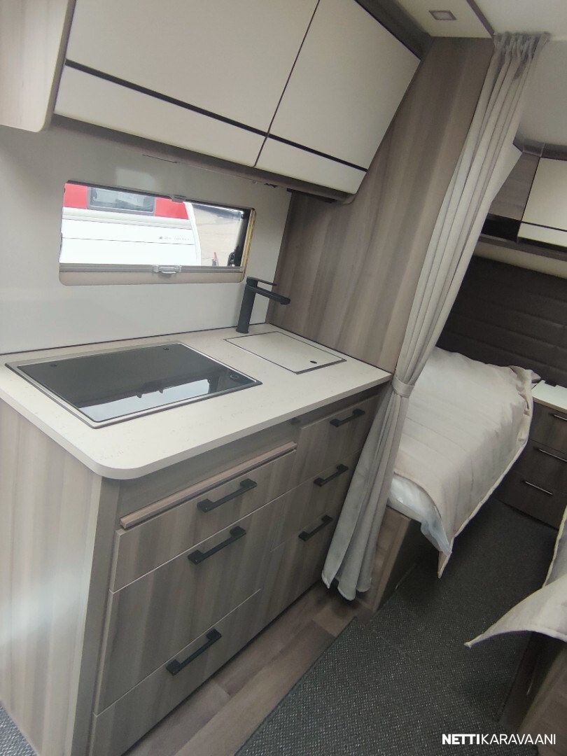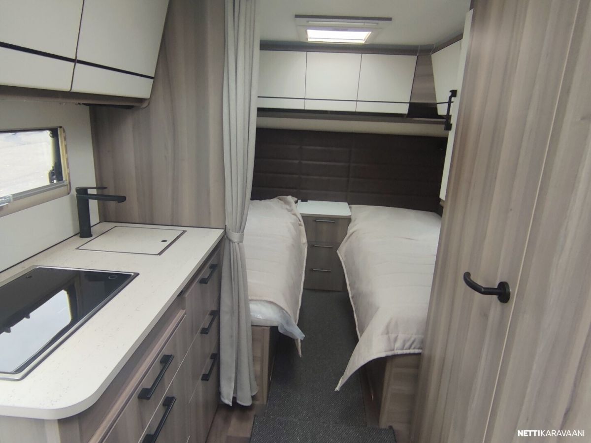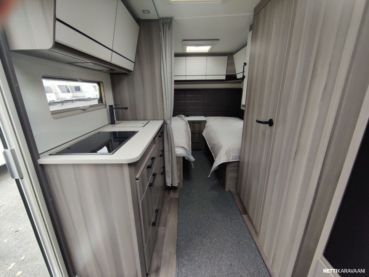 Uusi ja upea-Laadukas Kabe! Tyylikäs Kabe Estate suositulla pohjaratkaisulla, jossa on täysikokoiset erilliset vuoteet kahden aikuisen mukavaan yöpymiseen sekä kaikki taatut Kabe-ominaisuudet vaativaan ympärivuotiseen käyttöön! Vakiovarusteet Estate-sarjassa mm: -Vakaa KABE iWall -kori kestää äärilämpötiloja -Knott-alusta ja itsesäätyvät jarrut -Ulkopuolisissa seinissä sileä pelti ja 3D-tyyliset tarrasarjat (vain Estate) -Hyttysverho-ovi -Kattoikkuna 40×40 -Ulosvedettävä suksilaatikko lukittavalla luukulla ja valolla -Roiskeläpät -Hyvin eristetyt kaksinkertaiset ikkunat -Sisustus sovitettu esteettömän ilmankierron varmistamiseksi -Maksimaalinen määrä lämpöpattereita lämmitysjärjestelmässä -Optimoitu ilmanvaihtojärjestelmä – tehokkaat ilmavirrat niin kylminä kuin helteisinä päivinä -Kuivauskaapissa tippuallas ja suljettava ilmanvaihto -Vesikiertoinen lattialämmitys AGS II Alde Compact-lämmittimellä -Tuuletusluukku -3-liekkinen kaasuliesi sähkösytytyksellä -Uusi iso Thetford-jääkaappi pakastelokero -Rasvasuodattimella ja valaistuksella varustettu liesituuletin -Pehmeästi sulkeutuvat keittiölaatikot -Kansi astianpesualtaaseen -Valittavissa kaksi kangasmallistoa jossa antislip alapinnalla -Ergonomiset istuintyynyt -Omassa puusepänverstaassa valmistettu laadukas sisustus -Lehtitasku -Sängynpääty mokkaimitaatio, kierrejousipatja, sijauspatja ja päiväpeite -USB kerrosvuoteiden vieressä -Palovaroitin ja vikavirtakytkin -Vuodonilmaisin kaasulle -Runsaasti LED-valoja, himmennin etukattovalaisimelle -DAB radio -LTE-Reititin -Jäteastia lähdelajitteluun -Lukittava vesisäiliön kansi SILVER EDITION VARUSTEET: -Aurinkopaneeli -Design-paketti, (Aluvanteet 15, Ikkunallinen ulko-ovi, Vetoaisan suojalevy, Heki2 kattoikkuna) -Mukavuus-paketti Estate, (Niskatyynty, Yläkaappien hyllyt, Pyyhekuivain sähkötoiminen, Tavaraluukku sängyn alle)