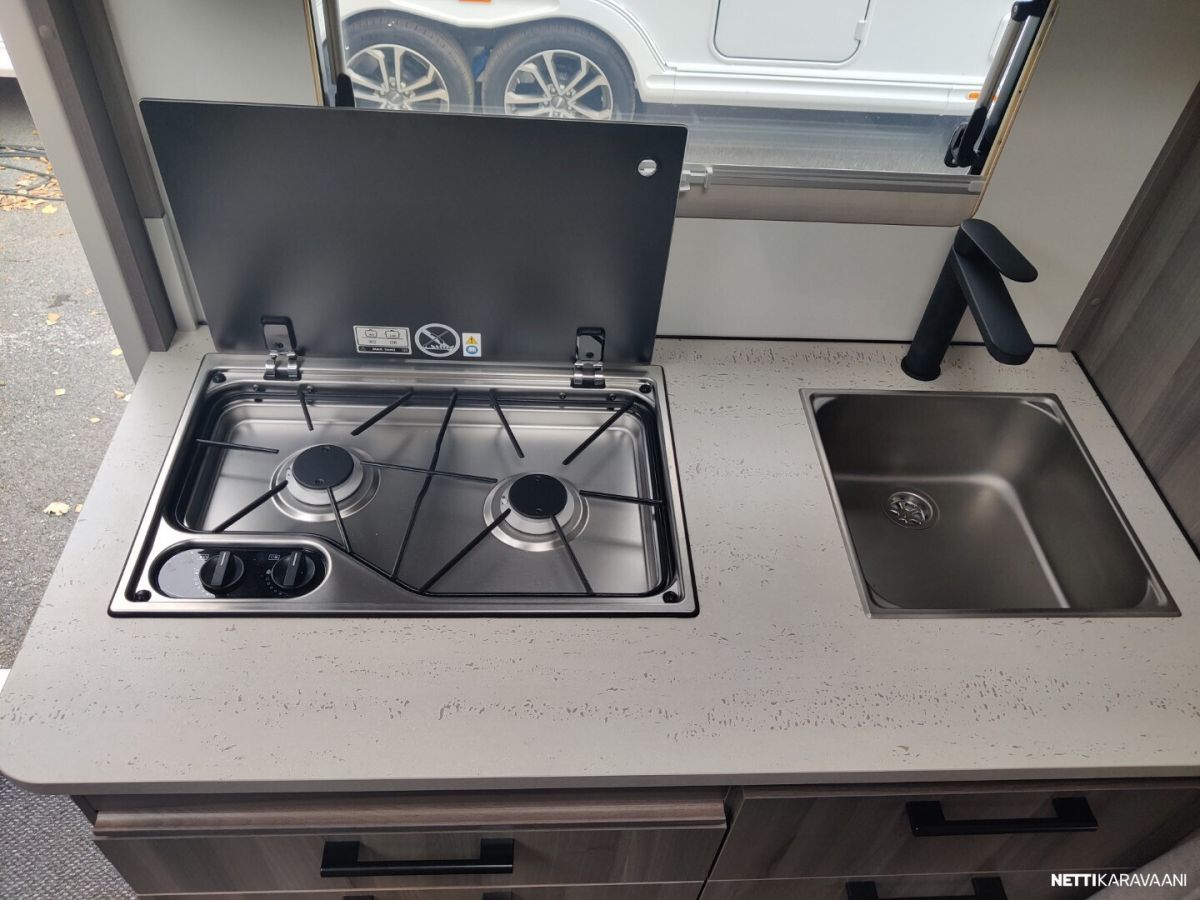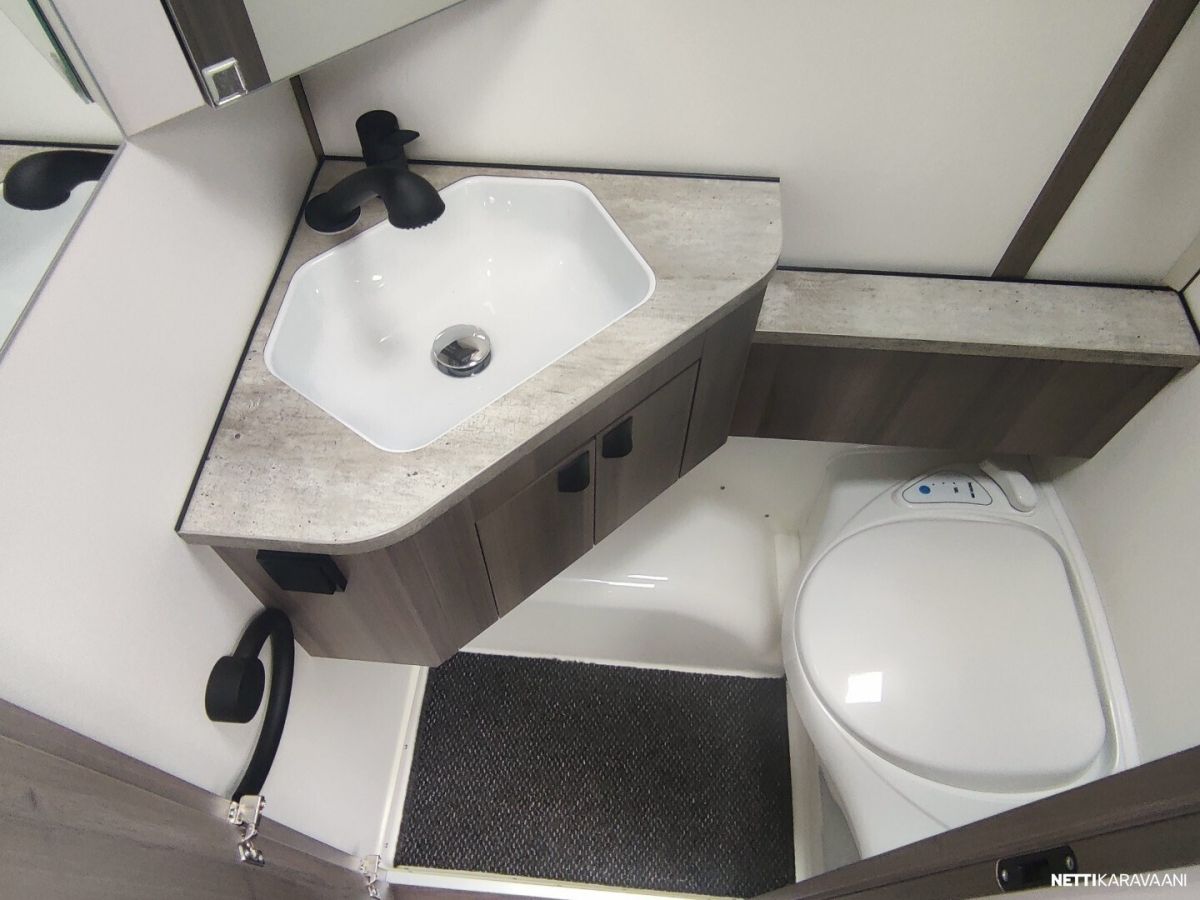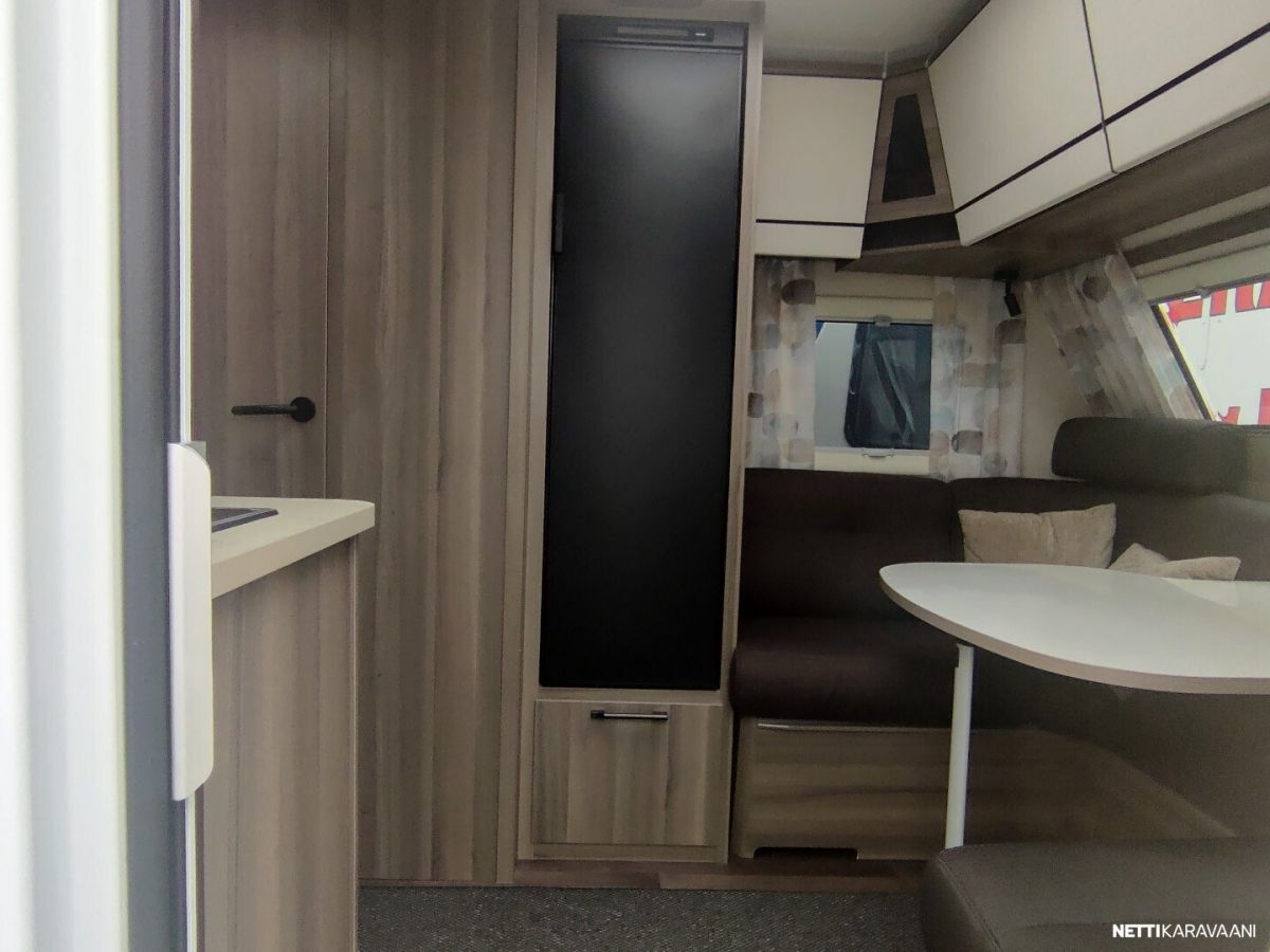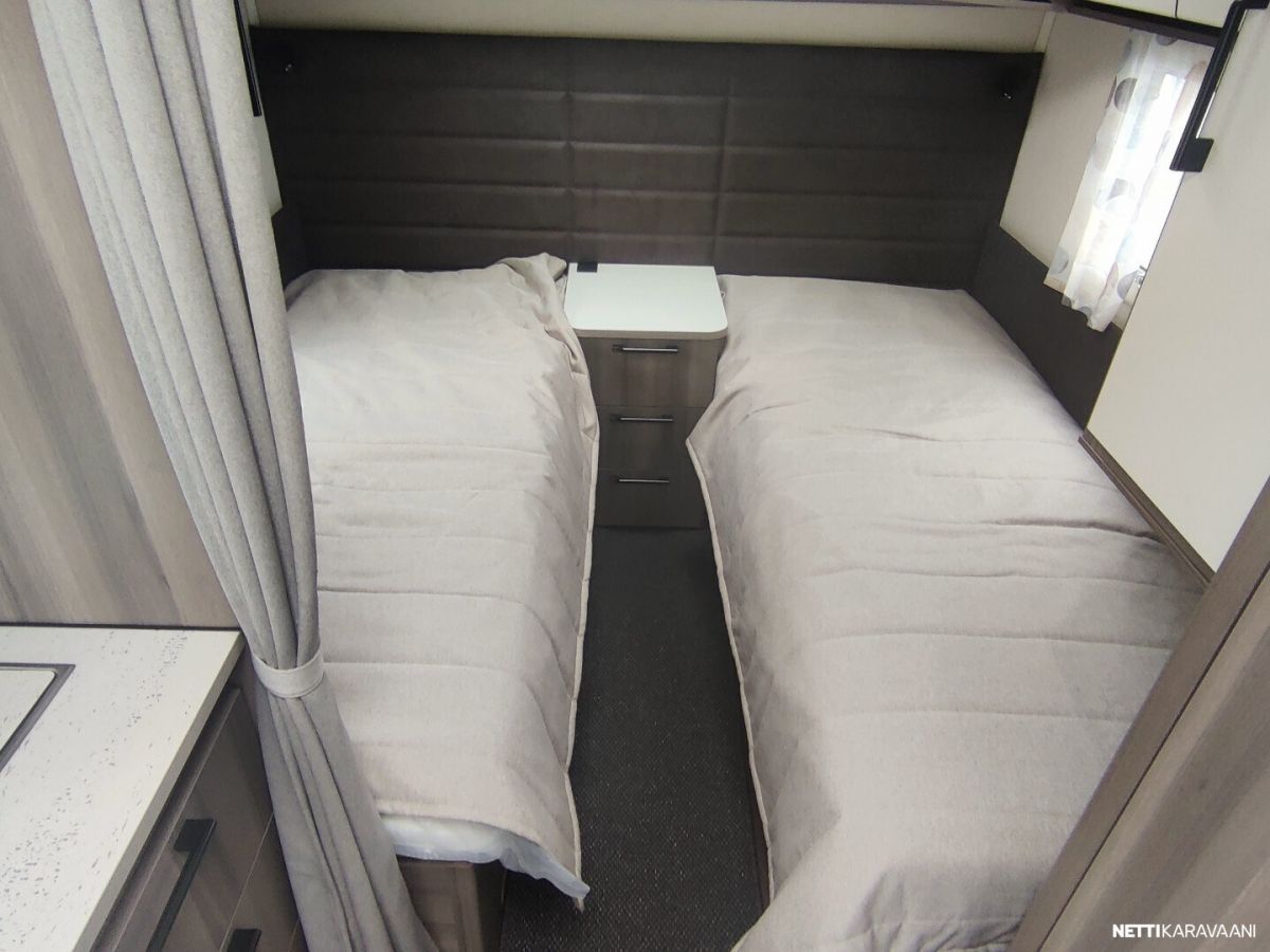 Uusi ja upea-Laadukas Kabe! Tyylikäs Kabe Estate suositulla pohjaratkaisulla, jossa on täysikokoiset erilliset vuoteet kahden aikuisen mukavaan yöpymiseen sekä kaikki taatut Kabe-ominaisuudet vaativaan ympärivuotiseen käyttöön! Vakiovarusteet Estate-sarjassa mm: -Vakaa KABE iWall -kori kestää äärilämpötiloja -Knott-alusta ja itsesäätyvät jarrut -Ulkopuolisissa seinissä sileä pelti ja 3D-tyyliset tarrasarjat (vain Estate) -Hyttysverho-ovi -Kattoikkuna 40×40 -Ulosvedettävä suksilaatikko lukittavalla luukulla ja valolla -Roiskeläpät -Hyvin eristetyt kaksinkertaiset ikkunat -Sisustus sovitettu esteettömän ilmankierron varmistamiseksi -Maksimaalinen määrä lämpöpattereita lämmitysjärjestelmässä -Optimoitu ilmanvaihtojärjestelmä – tehokkaat ilmavirrat niin kylminä kuin helteisinä päivinä -Kuivauskaapissa tippuallas ja suljettava ilmanvaihto -Vesikiertoinen lattialämmitys AGS II Alde Compact-lämmittimellä -Tuuletusluukku -3-liekkinen kaasuliesi sähkösytytyksellä -Uusi iso Thetford-jääkaappi pakastelokero -Rasvasuodattimella ja valaistuksella varustettu liesituuletin -Pehmeästi sulkeutuvat keittiölaatikot -Kansi astianpesualtaaseen -Valittavissa kaksi kangasmallistoa jossa antislip alapinnalla -Ergonomiset istuintyynyt -Omassa puusepänverstaassa valmistettu laadukas sisustus -Lehtitasku -Sängynpääty mokkaimitaatio, kierrejousipatja, sijauspatja ja päiväpeite -USB kerrosvuoteiden vieressä -Palovaroitin ja vikavirtakytkin -Vuodonilmaisin kaasulle -Runsaasti LED-valoja, himmennin etukattovalaisimelle -DAB radio -LTE-Reititin -Jäteastia lähdelajitteluun -Lukittava vesisäiliön kansi SILVER EDITION VARUSTEET: -Aurinkopaneeli -Design-paketti, (Aluvanteet 15, Ikkunallinen ulko-ovi, Vetoaisan suojalevy, Heki2 kattoikkuna) -Mukavuus-paketti Estate, (Niskatyynty, Yläkaappien hyllyt, Pyyhekuivain sähkötoiminen, Tavaraluukku sängyn alle)