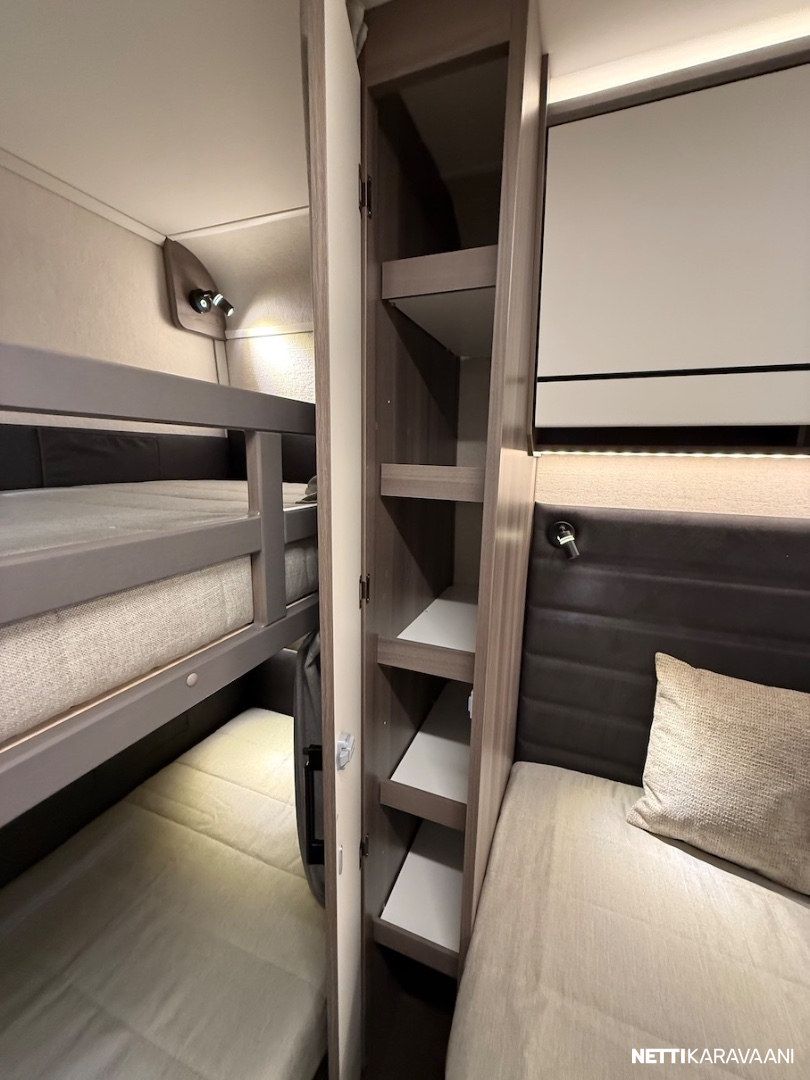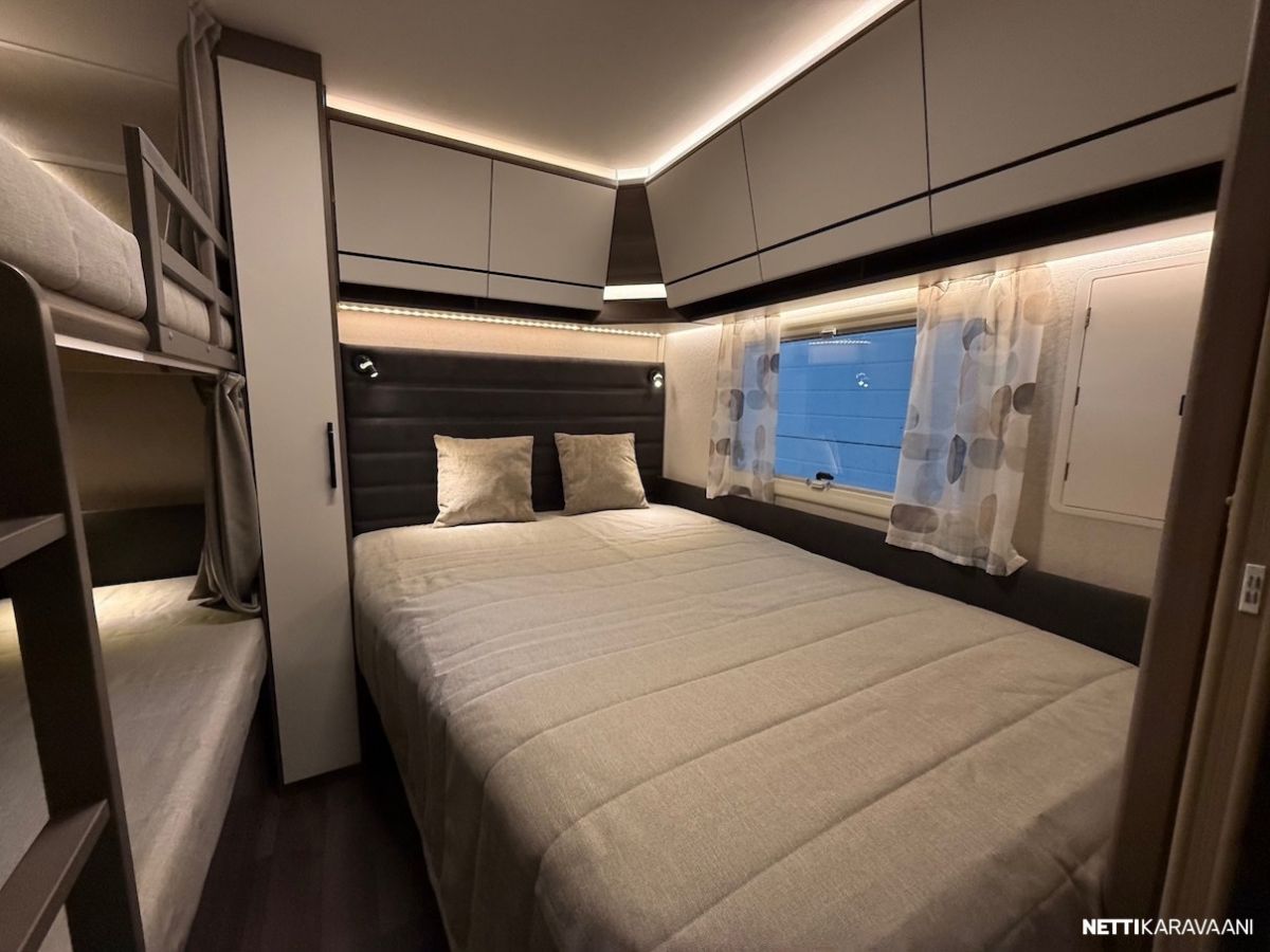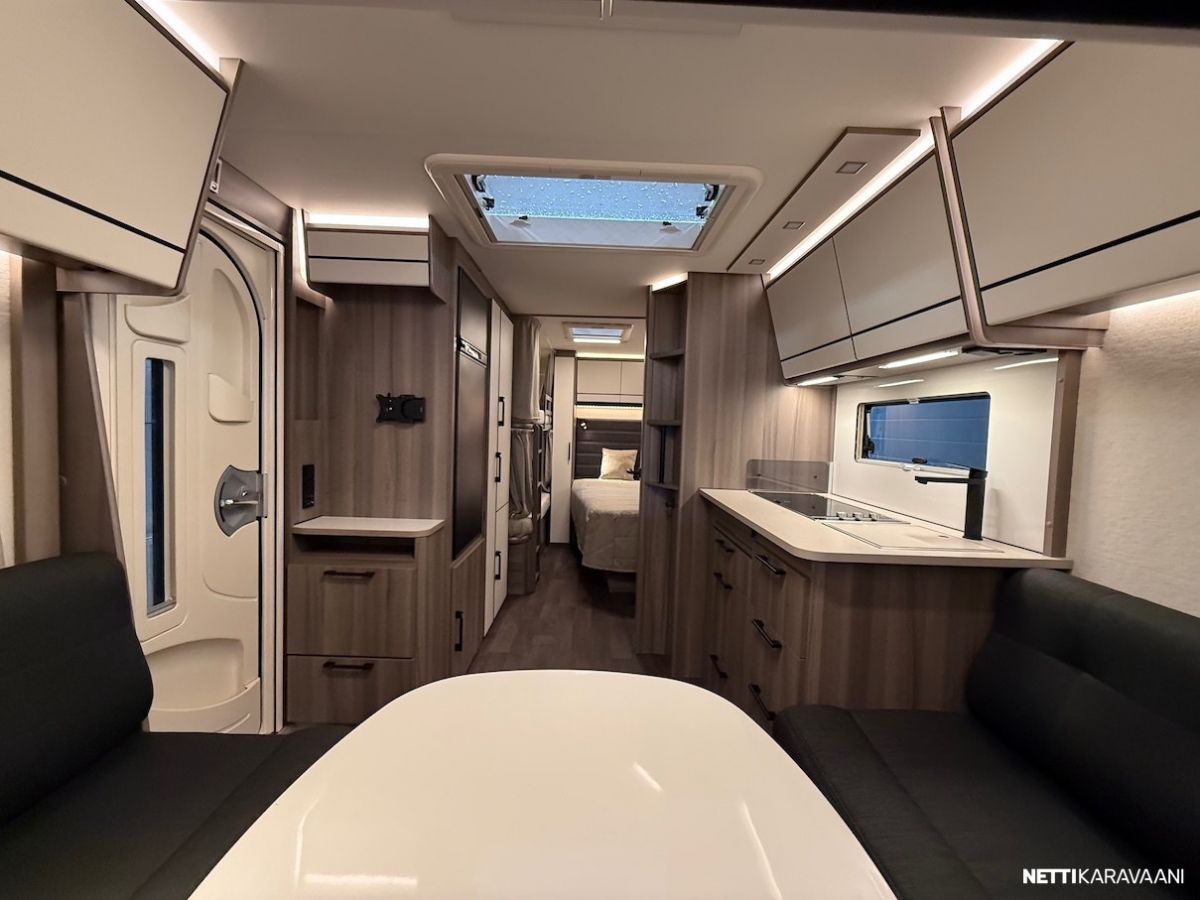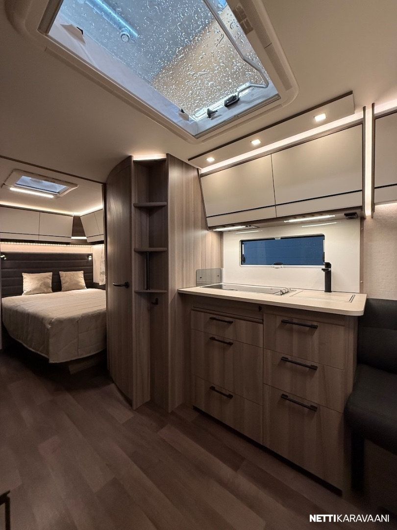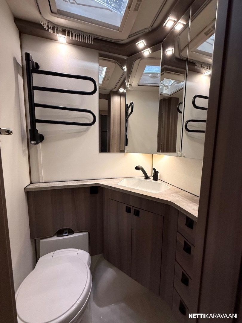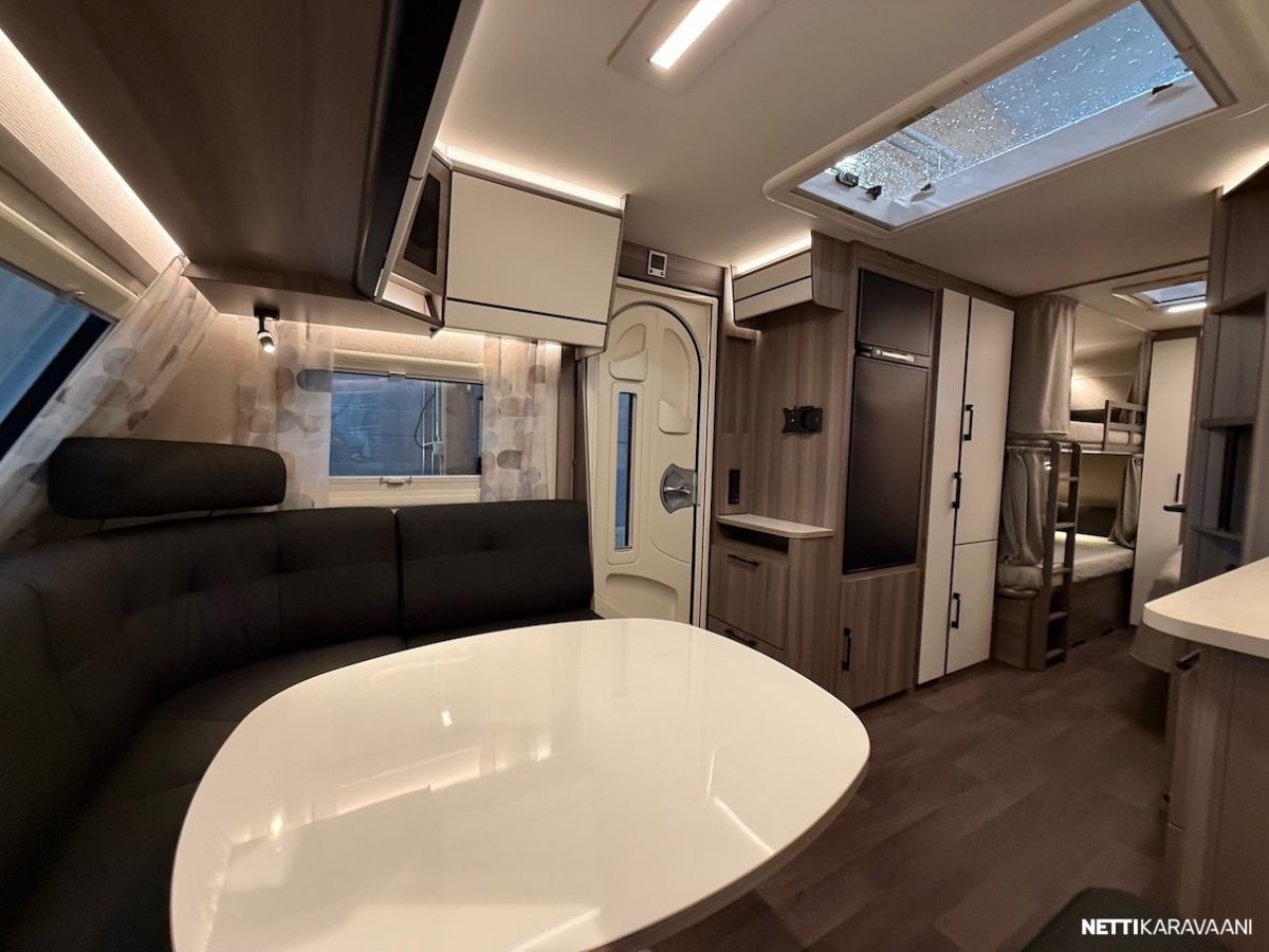 Alde -nestekeskuslämmitys, nestekiertoinen lattialämmitys, aurinkopaneelijärjestelmä, vesijärjestelmät ja säiliöt sisällä lämpimässä, Ecoprim Foam -eristys, Knott -alusta kitkavetopäällä ja itsesäätyvillä jarruilla, hyttysverkko-ovi, suksiboksi keulassa, sileä ulkopelti ja uudistunut Design, portaattomasti säädettävät verhokasetit ikkunoissa, koriin upotetut uretaanikarmi-ikkunat, valaistu kaasupullokotelo, liesituuletin, sähkön ulosotto, Bluetooth/Radio ja kaiuttimet, LED-valaistus ja epäsuora tunnelmavalaistus, TV-antenni, TV-teline jopa 32 tuumaiselle TV:lle, USB latauspisteitä, jätesäiliöt vetolaatikossa, Mukavuuspaketti (sis. suuri jääkaappi erillisellä pakastimella, niskatyynyt istuinryhmässä, pyyhekuivain kylpyhuoneessa, tavaraluukku sängyn alle), Design -paketti (sis. alumiinivanteet, suuri Heki kattoikkuna, ikkunallinen ulko-ovi, vetoaisan suojamuovi.