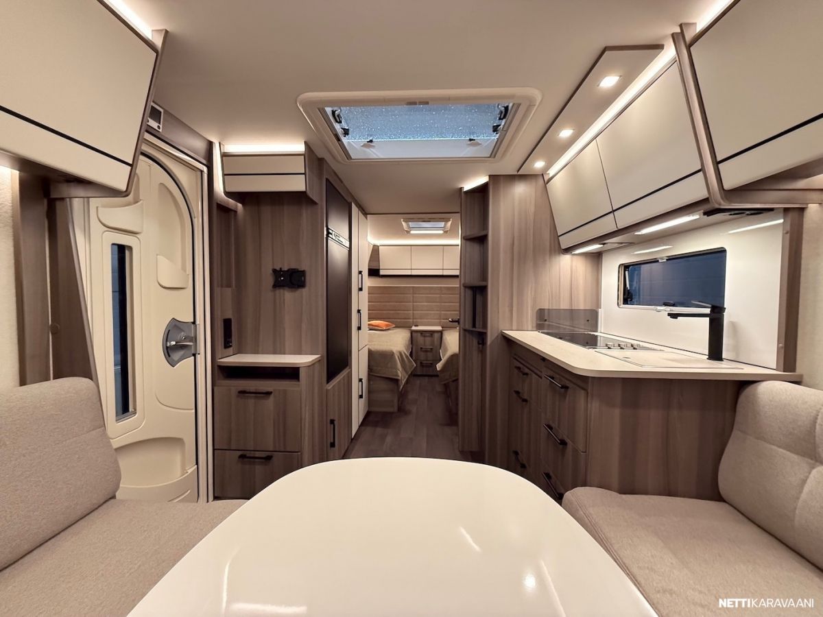 Alde -nestekeskuslämmitys, nestekiertoinen lattialämmitys, aurinkopaneelijärjestelmä, vesijärjestelmät ja säiliöt sisällä lämpimässä, Ecoprim Foam -eristys, Knott -alusta kitkavetopäällä ja itsesäätyvillä jarruilla, hyttysverkko-ovi, suksiboksi keulassa, sileä ulkopelti ja uudistunut Design, portaattomasti säädettävät verhokasetit ikkunoissa, koriin upotetut uretaanikarmi-ikkunat, valaistu kaasupullokotelo, liesituuletin, sähkön ulosotto, Bluetooth/Radio ja kaiuttimet, LED-valaistus ja epäsuora tunnelmavalaistus, TV-antenni, TV-teline jopa 32 tuumaiselle TV:lle, USB latauspisteitä, jätesäiliöt vetolaatikossa, Mukavuuspaketti (sis. suuri jääkaappi erillisellä pakastimella, niskatyynyt istuinryhmässä, pyyhekuivain kylpyhuoneessa, tavaraluukku sängyn alle), Design -paketti (sis. alumiinivanteet, suuri Heki kattoikkuna, ikkunallinen ulko-ovi, vetoaisan suojamuovi.