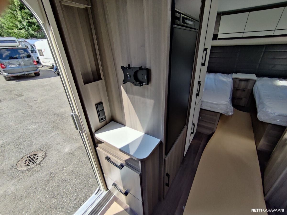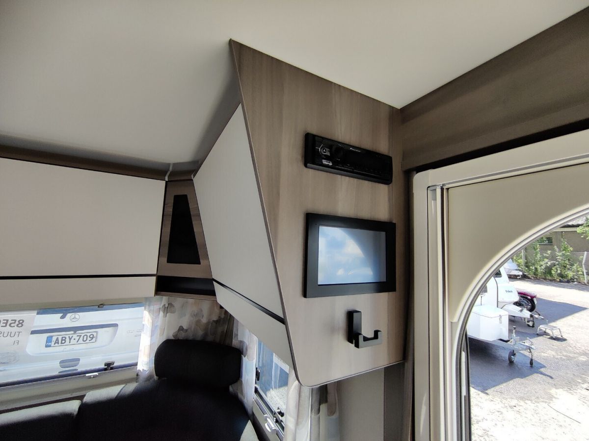 Kasetti WC, Kasettiverhot, Liesi, Lämminvesiboileri, Suihku, TV-antenni tai lautasantenni, Alde, Aurinkopaneeli, Kattoluukku, Lattialämmitys, Tukijalat