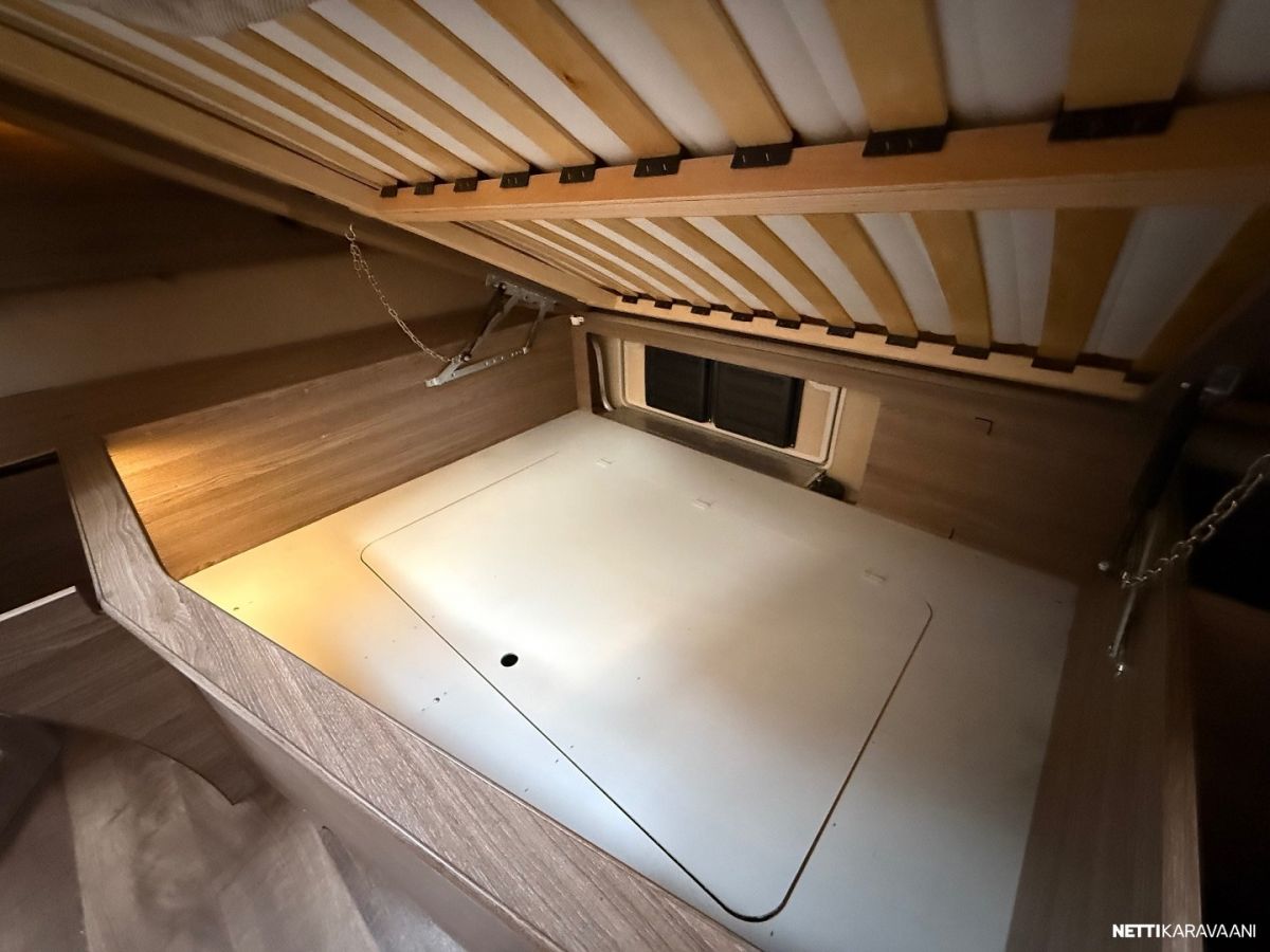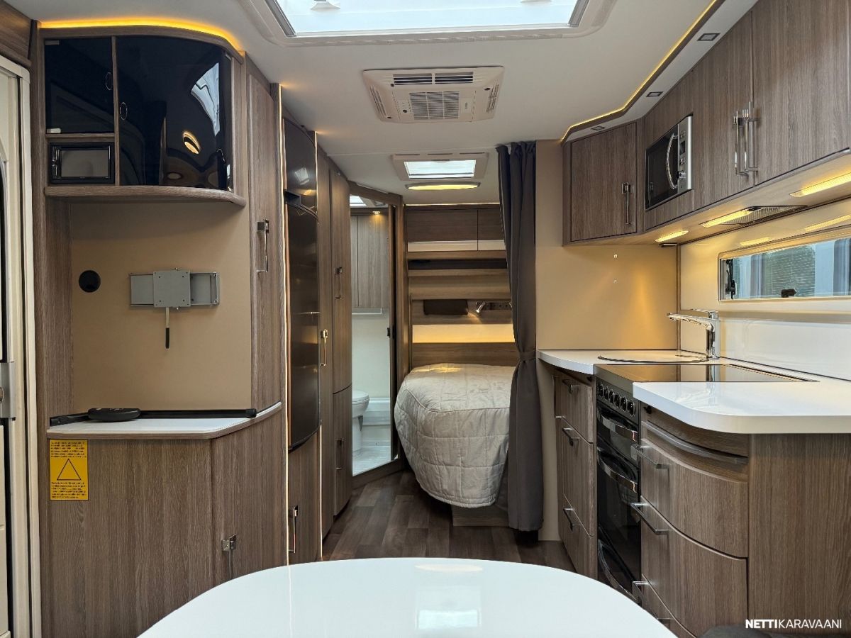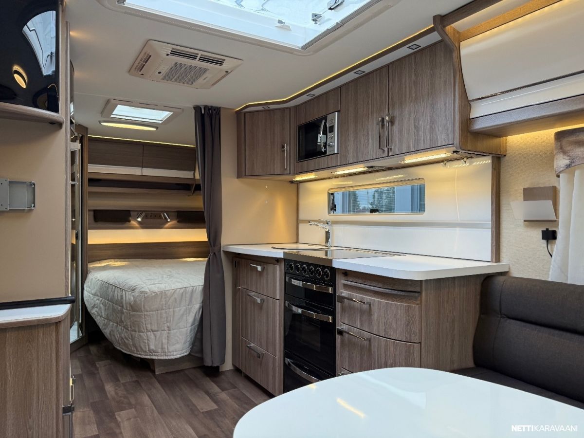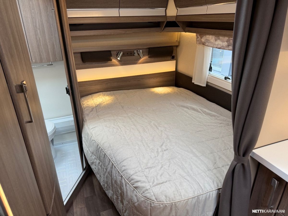 Jääkaappi, Kaasu-uuni, Kasetti WC, Kasettiverhot, Liesi, Lämminvesiboileri, Markiisi, Mikroaaltouuni, Pakastelokero, Pesuallas, Suihku, TV-antenni tai lautasantenni, Alde, Erikoisvanteet, Eristetty harmaavesisäiliö, Kattoluukku, Lattialämmitys, Pyöräteline, Sähköpatruuna, Tukijalat, Lattiamatot asunto-osassa