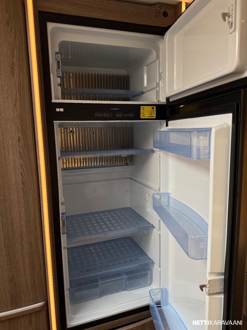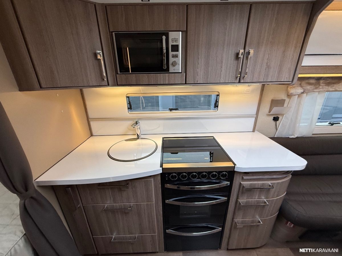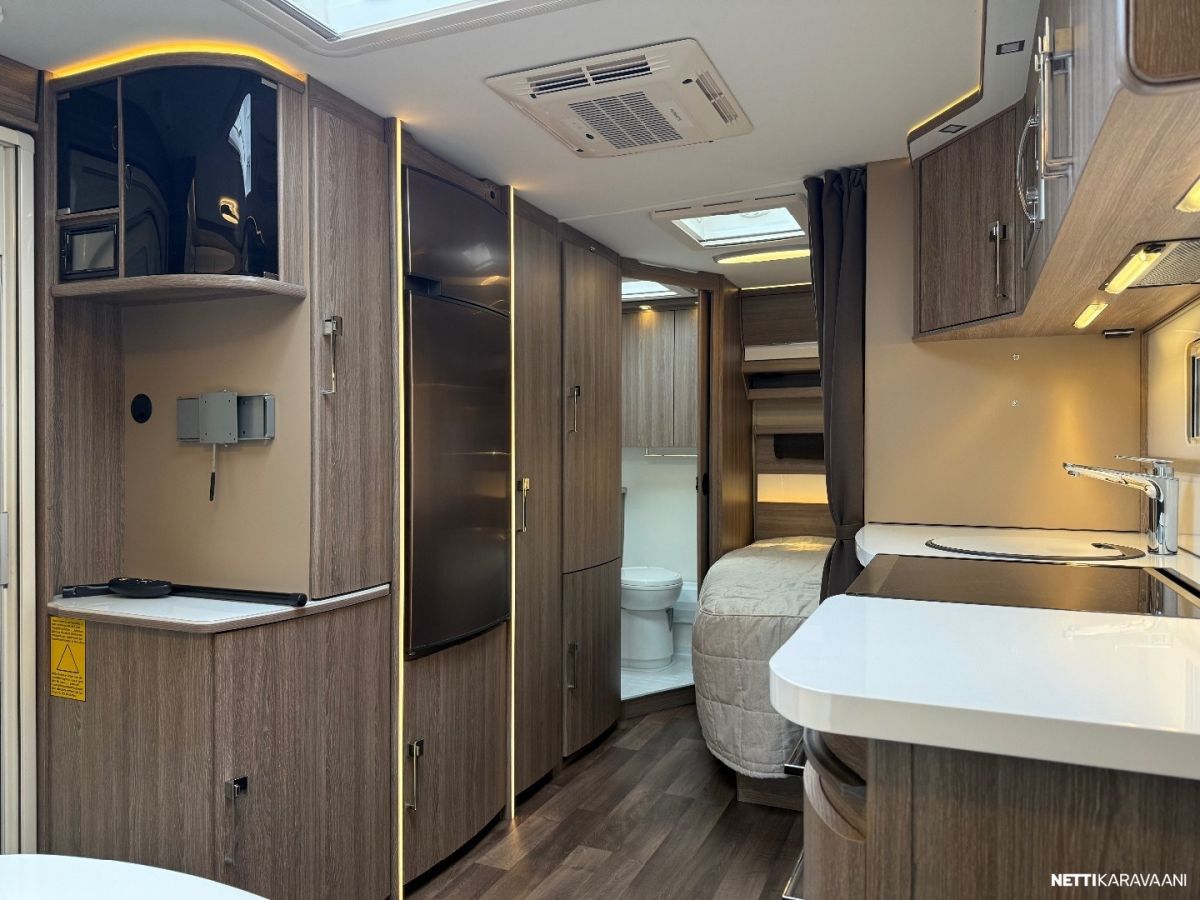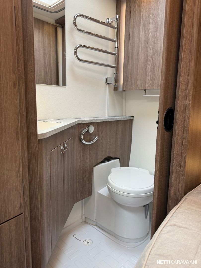 Jääkaappi, Kaasu-uuni, Kasetti WC, Kasettiverhot, Liesi, Lämminvesiboileri, Markiisi, Mikroaaltouuni, Pakastelokero, Pesuallas, Suihku, TV-antenni tai lautasantenni, Alde, Erikoisvanteet, Eristetty harmaavesisäiliö, Kattoluukku, Lattialämmitys, Pyöräteline, Sähköpatruuna, Tukijalat, Lattiamatot asunto-osassa