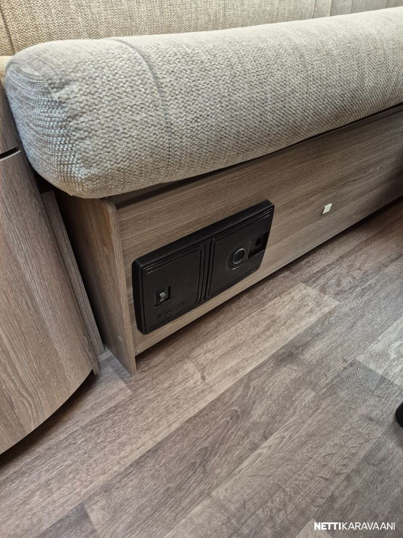 Jääkaappi, Kasetti WC, Kasettiverhot, Liesi, Lämminvesiboileri, Mikroaaltouuni, Pakastelokero, Pesuallas, Alde, Eristetty harmaavesisäiliö, Lattialämmitys, Sähköpatruuna, Tukijalat