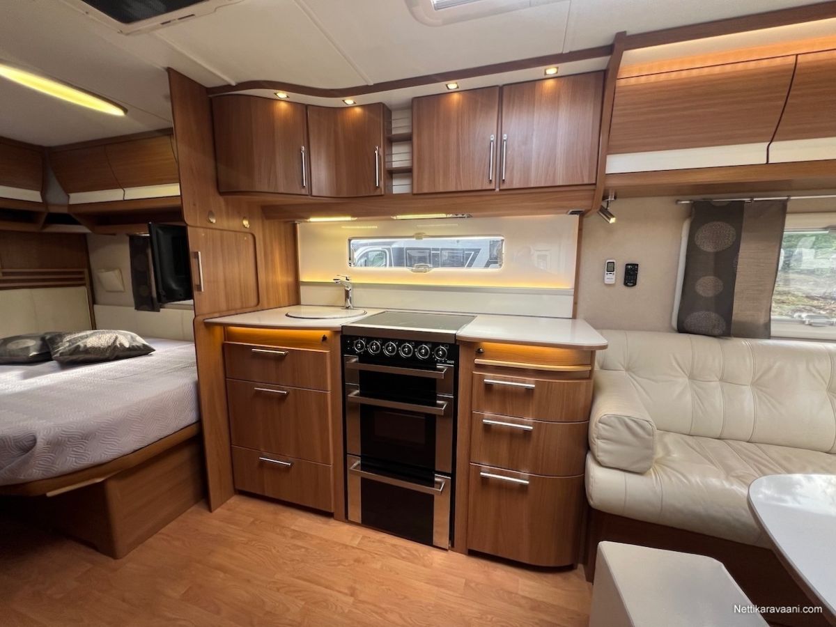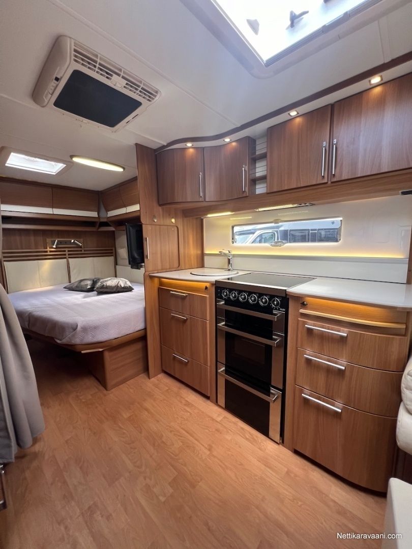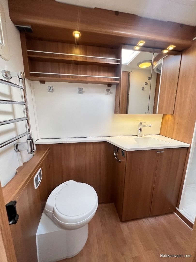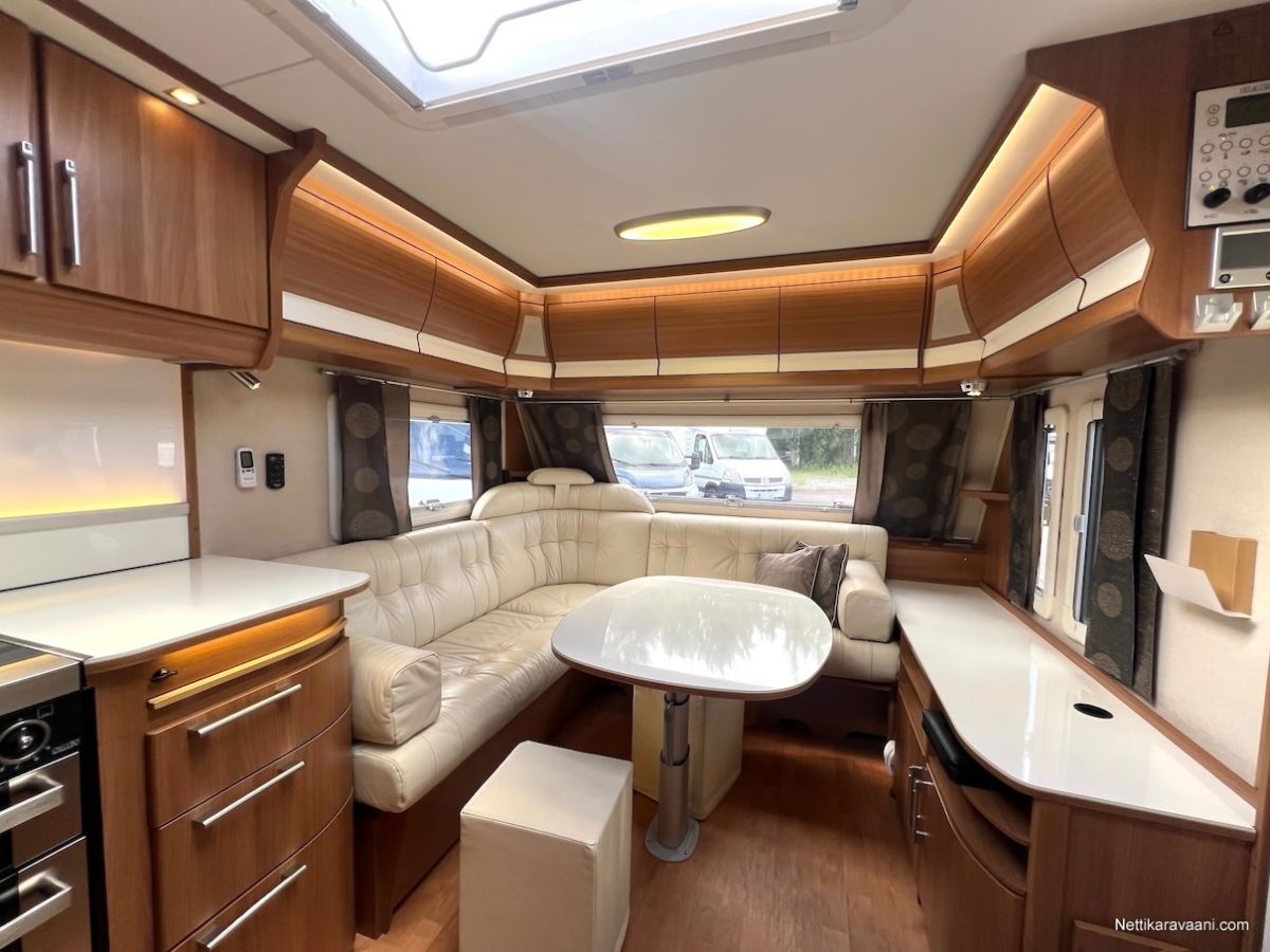 Alde -nestekeskuslämmitys, nestekiertoinen lattialämmitys, kaikki vesijärjestelmät sisällä lämpimässä, EcoPrim Foam -eristys, asuinosan ilmastointi, Pioneer -multimediajärjestelmä, suuri jääkaappi erillisellä pakastimella, kaasu-uuni/liesi -yhdistelmä, liesituuletin, nahkaverhoilu, L-istuinryhmä, LED-valaistus ja epäsuora tunnelmavalaistus, runsaasti kaappitilaa, erillinen suihku, ikkunallinen ulko-ovi, hyttysverkko-ovi, suksiluukku, alumiinivanteet, kitkavetopää, kWh-mittari, TV-antenni ja TV.