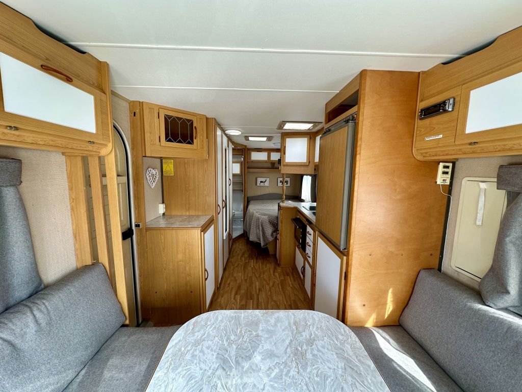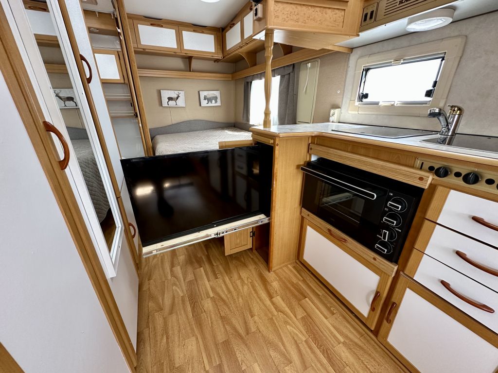 Leveys: 2 300 cm Pituus: 7 550 cm Rekisteröity: 06.05.1999 Katsastettu: 17.07.2023 Kokonaismassa: 1 460 kg Oma massa: 1 260 kg Makuupaikat: 4 Lämmitys: Nestekiertoinen keskuslämmitys