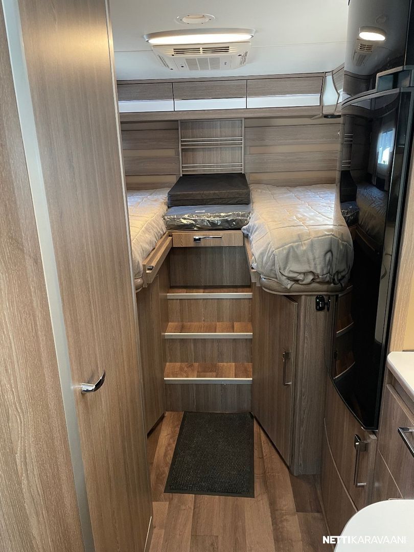 Ajotietokone, Jääkaappi, Kasetti WC, Kasettiverhot, Keskuslukitus: Kaukosäätöinen, Liesi, Lämminvesiboileri, Markiisi, Ohjaustehostin, Pakastelokero, Pesuallas, Pysäköintikamera, Suihku, Sähkökäyttöiset ikkunat, Sähköpeilit, TV-antenni tai lautasantenni, Vakionopeudensäädin, ABS-jarrut, Airbag, Alde, Aurinkopaneeli, Eristetty harmaavesisäiliö, Huoltokirja, Kattoluukku, Lattialämmitys, Sähköpatruuna, Turbo, Vetokoukku