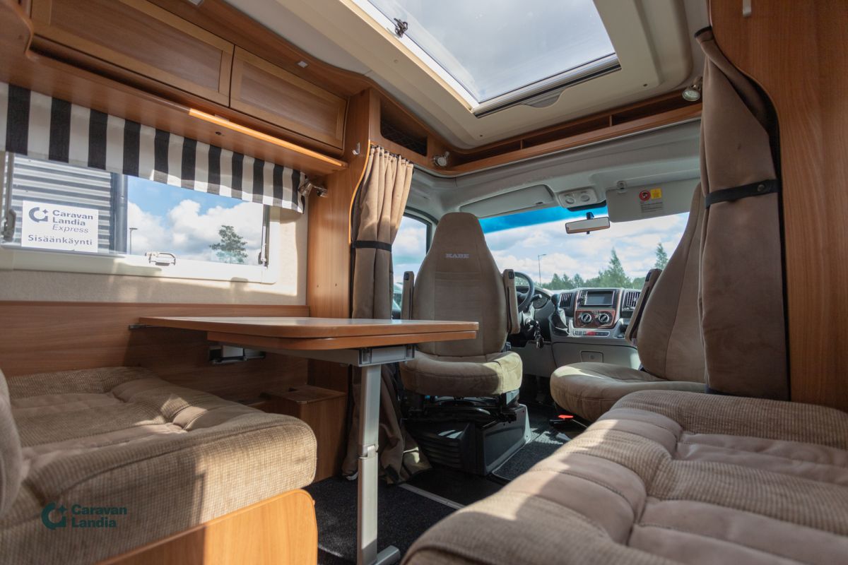 TÄHÄN AJONEUVOON 1,99 % KORKOTARJOUS - Tilava Kabe Alden nestekiertolämmityksellä ympärivuotiseen käyttöön. Huoltokirja, Kaikkiin vuodenaikoihin Pariskunnille Markiisi Markiisivalo Vetokoukku Kasettiverhot Peruutuskamera Multimediakeskus Ilmastointi ajotilassa Lukkiutumattomat jarrut (ABS) Sähkökäyttöiset ikkunat Sähköpeilit Vakionopeudensäädin Webasto/Eber Kattoluukku Aurinkopaneeli Sivusohva Iso kattoikkuna Iso pöytäryhmä Nestekiertolämmitys Alde Lämminvesiboileri kWh-mittari Pullonvaihtaja L-keittiö Liesituuletin Iso-jääkaappi Pakastelokero Kaasuliesi Kaasu-uuni Lisävuode istuinryhmästä Parivuode pitkittäin Kasetti WC Pesuallas Erillinen suihku TV-teline TV-antenni tai lautasantenni Meiltä voit ostaa etänä vaikka kotisohvaltasi! Kokeile kuinka helppoa ja vaivatonta matkailuajoneuvon ostaminen on.