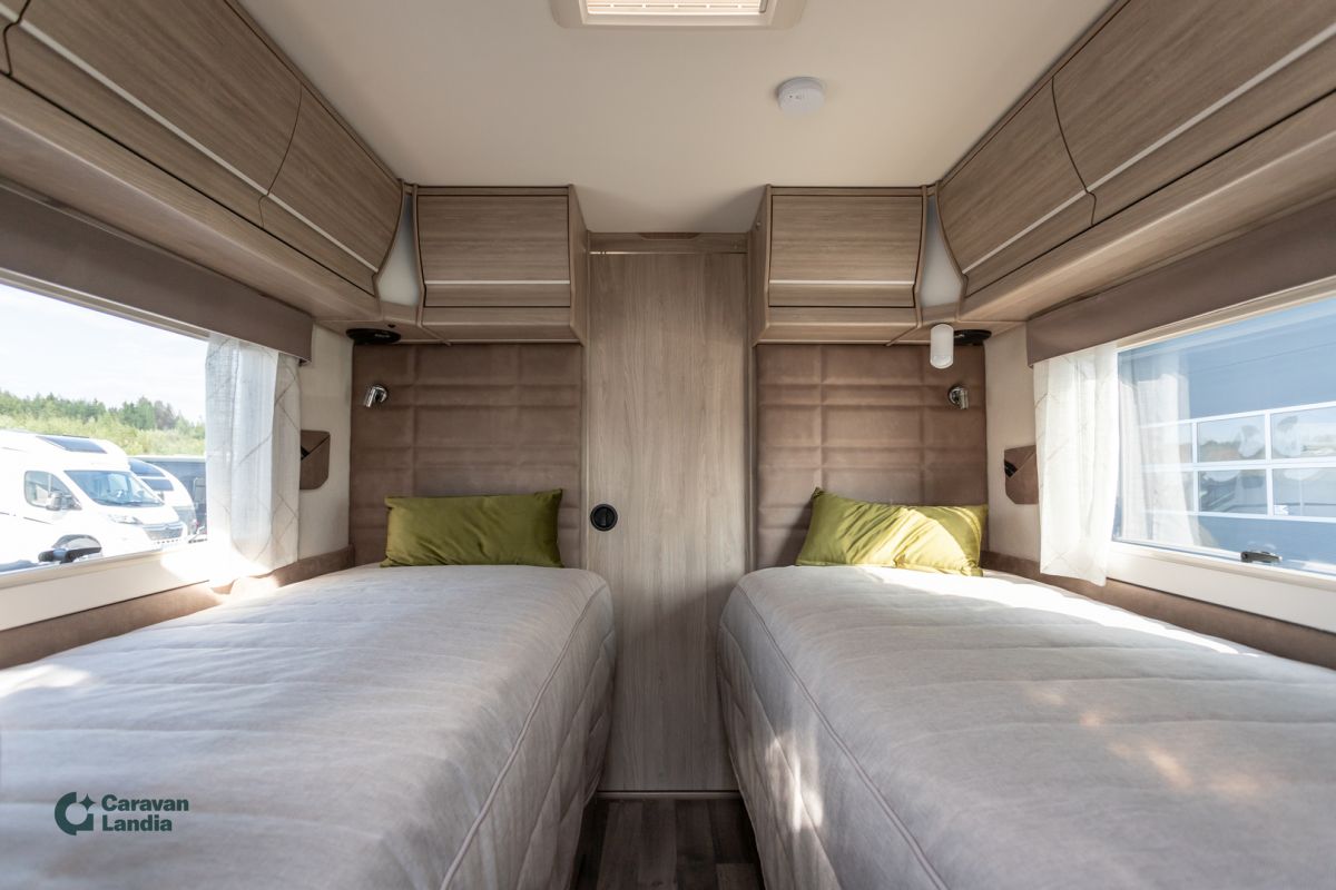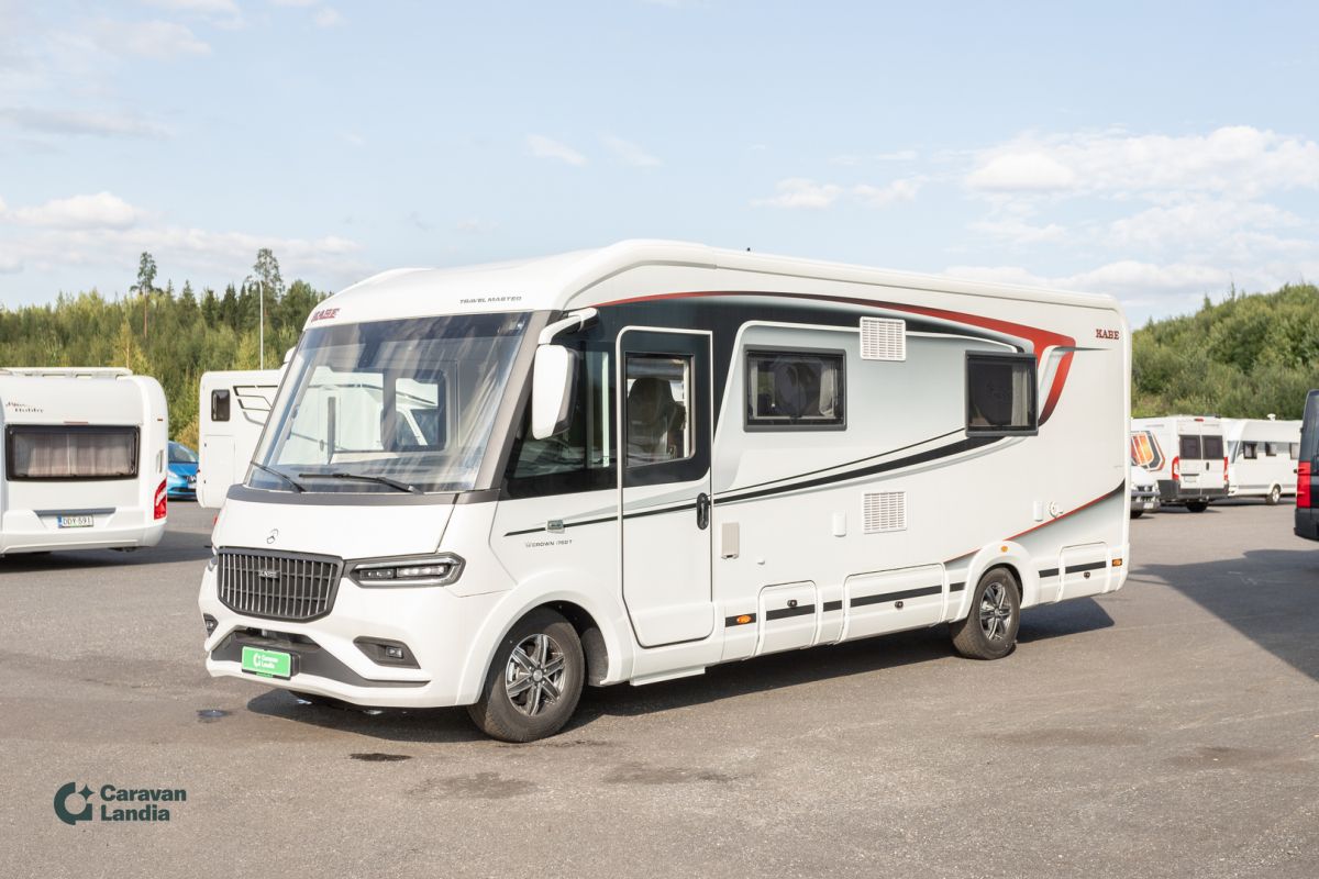 Huipputyylikäs Kabe loistavin varustein ympärivuotiseen käyttöön. UUSI AUTO NOPEAAN TOIMITUKSEEN! ALV-vähennyskelpoinen Pohjoismainen varustelu ALDE 3030 nestekeskuslämmitys Lämminvesivaraaja Automaattinen lattialämmitysjärjestelmä AGS II Pro Sähköpatruuna 230V 3 kW Talvikäyttöön sovitettu vesijärjestelmä Peruutuskamera Hyttysverho-ovi Alaslaskettava parivuode ohjaamon päälle sähkötoiminen Makuutila dinette-ryhmässä Sähköllä toimiva porras Hyttysverkolla ja pimennysverholla varustettu ilmastoitu Mini Heki -kattoluukku Ilmankierron optimoiva sisustus Jätevesisäiliön sähkötoiminen tyhjennys (myös manuaalinen toiminto) Jääkaappi TecTower pakastelokerolla (molemmilta puolin avattavalla ovella) Kalusteuuni Liesituuletin Lämmitetty jätevesisäiliö 90 litraa Tuorevesisäiliö 20/90 litraa Epäsuora valaistus yläkaappien luona WC- osastossa pesuallas/suihkuallas ja kaappi KABE Smart D kosketuspaneeli kellon sisä- ja ulkolämpötilan näyttö LED-valot Langaton latausalusta Tavaraluukun aukko 2x76x104 cm Ilmastointi ohjaamossa Adaptiivinen vakionopeudensäädin Nahkaverhoiltu monitoimiohjauspyörä LED-valot: lähi- / kaukovalot DRL-päiväajovalot Ajovaloavustin Sumuvalot Sadetunnistin Moottori: Mercedes-Benz 170 hv 9-vaihteinen automaattivaihteisto 9G-Tronic Polttoainesäiliö 92 litraa Sähkökäyttöiset lasinnostimet Luistonesto- ja ajonvakautusjärjestelmä ESP Lukkiutumattomat ABS-jarrut Aluvanteet 16” Nukkumapaikat 6:lle