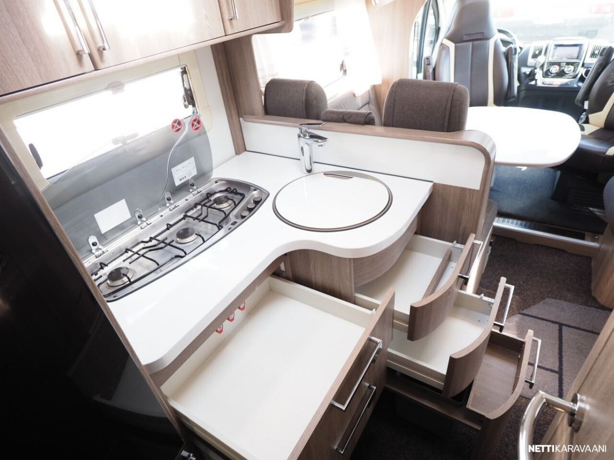 Ajotietokone, Jääkaappi, Kasetti WC, Kasettiverhot, Keskuslukitus: Kaukosäätöinen, Lattiamatot asunto-osassa, Liesi, Lämminvesiboileri, Markiisi, Nahkasisusta, Ohjaustehostin, Pakastelokero, Pesuallas, Pysäköintikamera, Suihku, Sähkökäyttöiset ikkunat, TV-antenni tai lautasantenni, Vakionopeudensäädin, ABS-jarrut, Airbag, Käynnistyksenesto, Alde, Erikoisvanteet, Eristetty harmaavesisäiliö, Kahdet renkaat, Kattoluukku, Lattialämmitys, Sähköpatruuna, Turbo