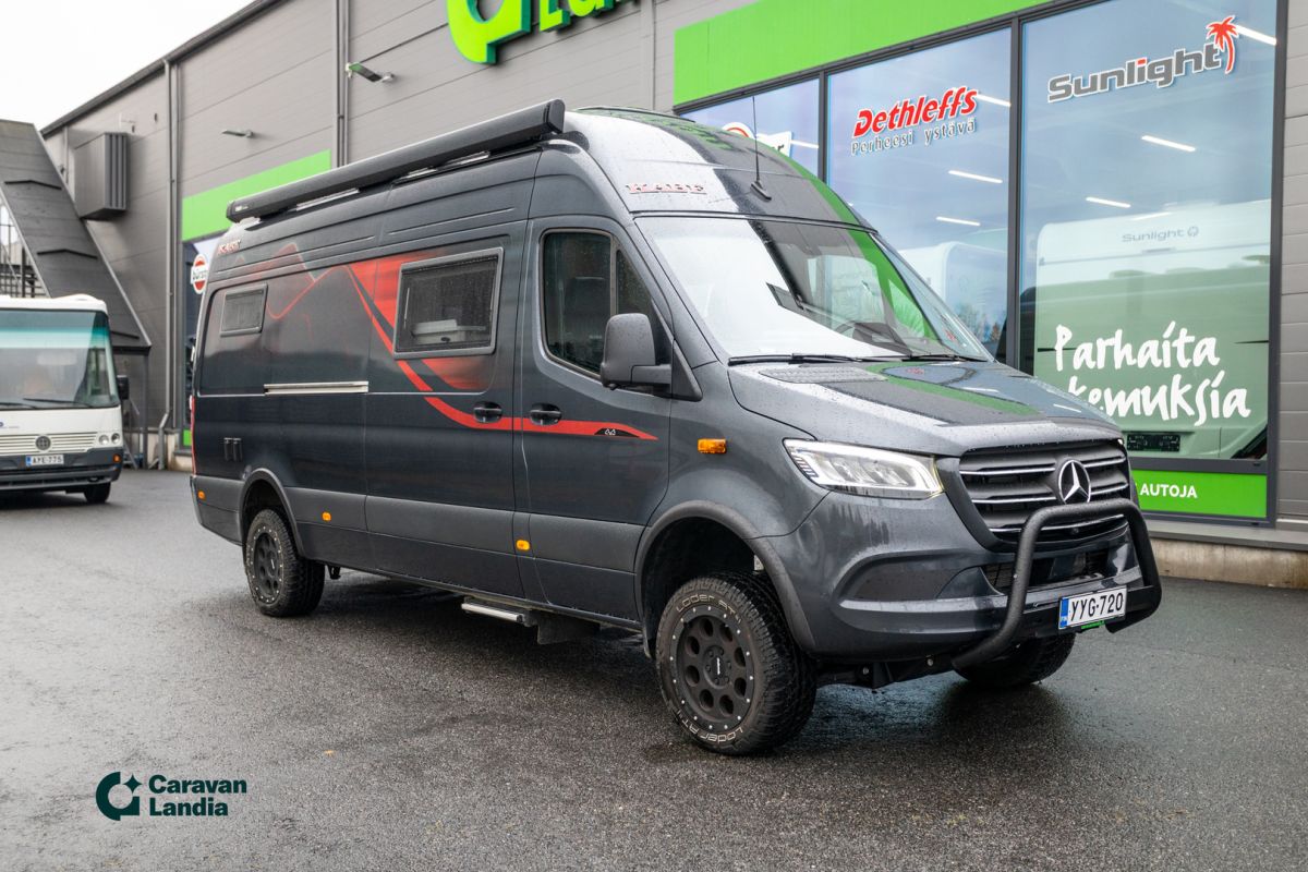 Kabe Van 690 LB on laadukas retkeilyauto, joka on suunniteltu niille, jotka eivät halua rajoittaa matkailuaan asvaltoituihin teihin. Tämä ainutlaatuinen auto tarjoaa tinkimätöntä mukavuutta Kabe-laadulla, samalla kun sen varustus antaa vapauden mennä ihan mihin haluaa. Tämä malli on varustettu Off road paketilla, johon kuuluvat muun muassa maastokelpoiset renkaat, taaten pidon ja luotettavuuden haastavammassakin maastossa. Mukavuudesta ei ole tingitty, sillä erillisvuoteet takaavat levolliset yöunet kompaktissa tilassa. Lisäksi loistava ALDE-lämmitys lattialämmityksellä ja ohjaamossa pitää huolen siitä, että matkustaminen on mukavaa ja lämmintä vuoden ympäri. Kabe Van 690 LB on enemmän kuin retkeilyauto; se on kutsu äärimmäiseen vapauteen ja miellyttäviin hetkiin, jossa laatu, mukavuus ja rajaton liikkuminen kohtaavat täydellisesti. Erittäin kattavan vakiovarustelun lisäksi tässä autossa lisävarusteen: Offroad-paketti (18" vanteet, karkeakuvia renkaat, pyöräkotelon levikkeet, karjapuskuri, ulkopuolen design), Tenorite Grey ulkoväritys, adaptiivinen vakionopeudensäädin, 360 peruutuskamera, asuinosan lisäakku, mattosarja, sähkötoiminen markiisi, neliveto, tehokkaampi 190 hv moottori. Tehdastakuu voimassa 1 omistaja Vähän ajettu Etätyöskentelijöille Kaikkiin vuodenaikoihin Pariskunnille Retkeilijöille Full-LED-ajovalot Sumuvalot Erikoisvanteet Markiisi Markiisivalo Vetokoukku Avaimeton käynnistys Start & Stop Hyttysverkko ovi Ohjaamon pimennysverhot Kasettiverhot Multimediakeskus 10.25"MBUX Peruutuskamera Navigointijärjestelmä Automaattivaihteisto Ilmastointi ajotilassa (automaattinen) Luistonestojärjestelmä Keskuslukitus Monitoimiohjauspyörä Puolinahkaverhoilu Sähkökäyttöiset ikkunat Sähköpeilit Turbo Vakionopeudensäädin Isofix-valmius LiFePO4 akku (230Ah) Aurinkopaneeli (<100W) Kattotuuletin Invertteri (2000W) Iso kattoikkuna Nestekiertolämmitys Alde Sähköpatruuna Lämminvesiboileri Lämmitetty ja eristetty harmaavesijärjestelmä Nestekiertoinen lattialämmitys Lattialämmitys ohjaamossa Polttoainekäyttöinen lisälämmitin Kaasun ulosotto Pullonvaihtaja Sähkörappu Sivukeittiö Liesituuletin Iso-jääkaappi Pakastelokero Kaasuliesi Erillisvuoteet Kasetti WC Pesuallas Suihku Takatalli TV-teline Meiltä voit ostaa etänä vaikka kotisohvaltasi! Kokeile kuinka helppoa ja vaivatonta matkailuajoneuvon ostaminen on., Alv-vähennyskelpoinen