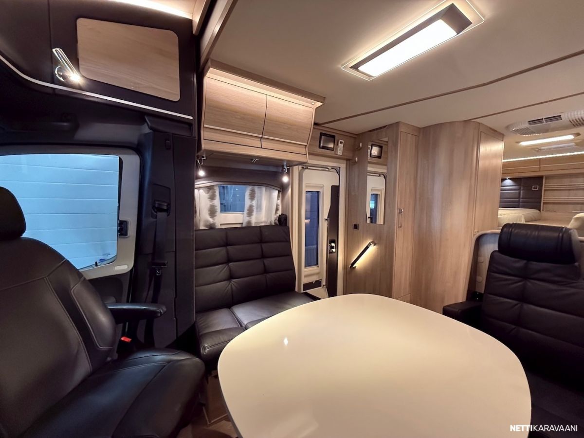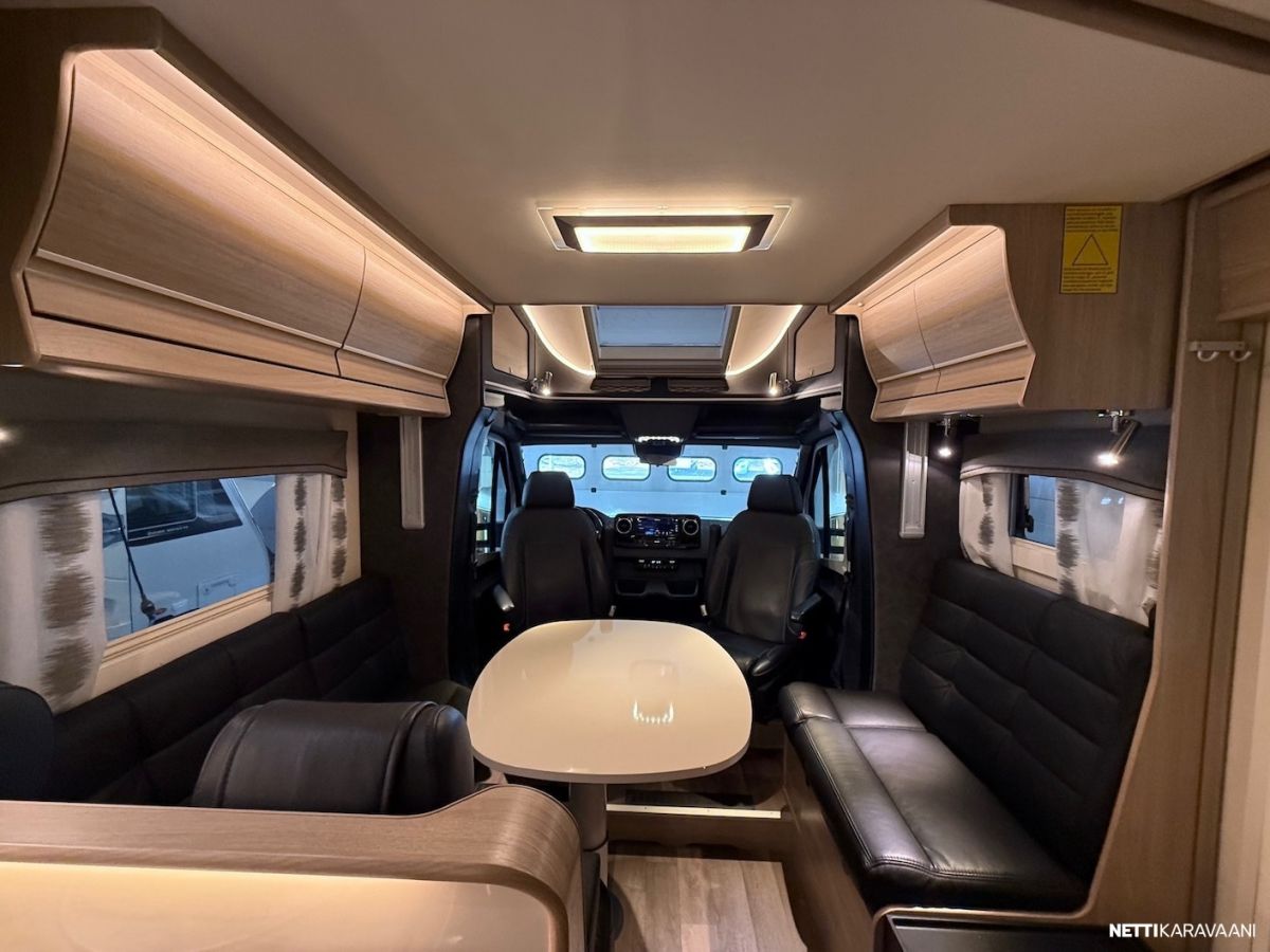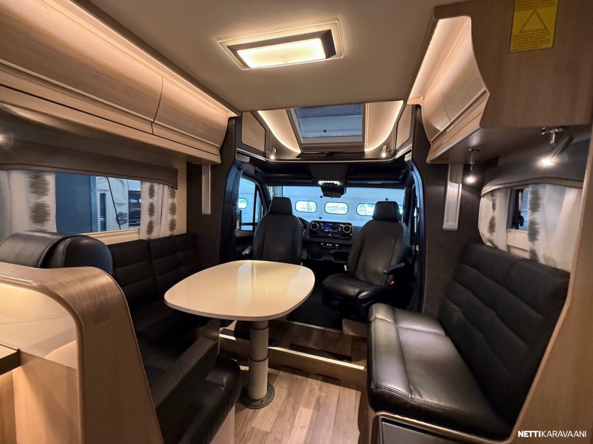 Varusteissa mm: 9-vaihteinen automaattivaihteisto, Al-Ko -alusta, vireystila-avustin, automaattinen hätäjarrutus, sivutuuliavustin, dieselkäyttöinen moottorilämmitys, Mercedes MBUX -multimediajärjestelmä peruutuskameralla ja navigoinnilla, nahkainen monitoimiratti, ohjaamon Remis -kaihdinverhot, ohjaamon astinlaudat, ohjaamon kattoikkuna, Alde -nestekiertolämmitys ja AGS II lattialämmitys, ohjaamon nestekiertoinen lattialämmitys, lämmönvaihdin asuinosan ja moottorin välille, talvikäyttöinen jätevesijärjestelmä, Kabe Air vent -tuuletinkattoluukku, liesituuletin, leveä ikkunallinen ulko-ovi keskuslukituksella, hyttysverkko-ovi, L-istuinryhmä, LED -sisävalaistus ja epäsuora valaistus, joustinpatjat ja petauspatjat, päiväpeitteet, suuri jääkaappi erillisellä pakastimella molemminpuolin aukeavilla ovilla, monipuolisesti säädettävä pöytä pilarijalalla, TV-antenni ja TV-teline, ulkovalo liiketunnistimella, alaslaskettava nostovuode, sähkösäädettävät erillisvuoteet, suuri takatalli molemminpuoleisin luukuin, kaasu-uuni, käsinojallinen dinette ja slide-out-sohva mukavampaa matkustamista varten, SmartD Remote -etähallintajärjestelmä reitittimellä, ohjaamon istuimet monipuolisin säädöin, mm. sähköinen ristiseläntuki. Mercedes Mukavuuspaketti (sis. liikennemerkkitunnistin, ajovaloautomatiikka, Mercedes -automaatti-ilmastointi, sähköinen seisontajarru), Designpaketti (sis. kromattu etusäleikkö, alumiinivanteet, Skyview -ikkunan koriste, LED-ajovalot ja päiväajovalot), kaasupullon automaattivaihtaja sisänäytöllä, asuinosan tupla-akut, mattosarja, Beiget keittiön yläkaapit, Springfield -nahkaverhoilu, suihkun puulattiaritilä, luukkujen keskuslukitus kaukosäädöllä, tilava säilytyslaatikko auton helmassa, vararengasteline, viides rekisteröity matkustajapaikka, markiisi, kaasun ulosotto, vetokoukku, kahdet renkaat aluvantein, asuinosan ilmastointilaite.