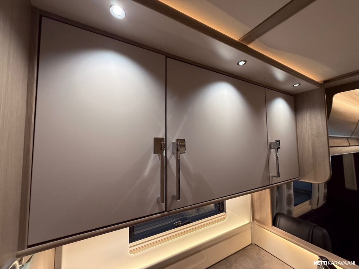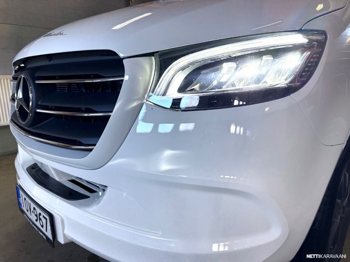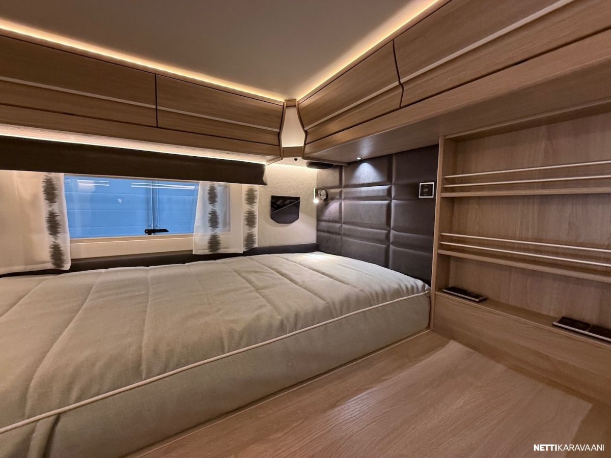 Varusteissa mm: 9-vaihteinen automaattivaihteisto, Al-Ko -alusta, vireystila-avustin, automaattinen hätäjarrutus, sivutuuliavustin, dieselkäyttöinen moottorilämmitys, Mercedes MBUX -multimediajärjestelmä peruutuskameralla ja navigoinnilla, nahkainen monitoimiratti, ohjaamon Remis -kaihdinverhot, ohjaamon astinlaudat, ohjaamon kattoikkuna, Alde -nestekiertolämmitys ja AGS II lattialämmitys, ohjaamon nestekiertoinen lattialämmitys, lämmönvaihdin asuinosan ja moottorin välille, talvikäyttöinen jätevesijärjestelmä, Kabe Air vent -tuuletinkattoluukku, liesituuletin, leveä ikkunallinen ulko-ovi keskuslukituksella, hyttysverkko-ovi, L-istuinryhmä, LED -sisävalaistus ja epäsuora valaistus, joustinpatjat ja petauspatjat, päiväpeitteet, suuri jääkaappi erillisellä pakastimella molemminpuolin aukeavilla ovilla, monipuolisesti säädettävä pöytä pilarijalalla, TV-antenni ja TV-teline, ulkovalo liiketunnistimella, alaslaskettava nostovuode, sähkösäädettävät erillisvuoteet, suuri takatalli molemminpuoleisin luukuin, kaasu-uuni, käsinojallinen dinette ja slide-out-sohva mukavampaa matkustamista varten, SmartD Remote -etähallintajärjestelmä reitittimellä, ohjaamon istuimet monipuolisin säädöin, mm. sähköinen ristiseläntuki. Mercedes Mukavuuspaketti (sis. liikennemerkkitunnistin, ajovaloautomatiikka, Mercedes -automaatti-ilmastointi, sähköinen seisontajarru), Designpaketti (sis. kromattu etusäleikkö, alumiinivanteet, Skyview -ikkunan koriste, LED-ajovalot ja päiväajovalot), kaasupullon automaattivaihtaja sisänäytöllä, asuinosan tupla-akut, mattosarja, Beiget keittiön yläkaapit, Springfield -nahkaverhoilu, suihkun puulattiaritilä, luukkujen keskuslukitus kaukosäädöllä, tilava säilytyslaatikko auton helmassa, vararengasteline, viides rekisteröity matkustajapaikka, markiisi, kaasun ulosotto, vetokoukku, kahdet renkaat aluvantein, asuinosan ilmastointilaite.