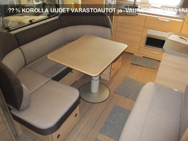UUSI, Rekisteröimätön, 60-Years Huippuvaunu huippuvarustein, ETUkeittiö ja takana KOKO L E V E Ä kylpyhuone, ja siittä edempänä poikittainen SAAREKEVUODE. Alde nestelämmitys ja NESTElattialämmitys, ISO kattoikkuna edessä, ja ISO 177L jääkaappi/pakastin Tässä vaunussa seuraavat lisävarusteet: , 150027 Teline vararenkaalle kaasupullokoteloon +1 kg 76 € , Asuminen / Makuutilat / Sisusta / Tekstiilit , 552009 Joustava pöytämekanismi +4 kg 215 € , 551965 Leveämpi vuode pöytäryhmästä sis. Patjat +3 kg 326 € , 552369 Muotoonommellut aluslakanat 2:lle vuoteelle (Kiinteisiin vuoteisiin, , riippuen pohjaratkaisusta) +1 kg 92 € , Keittiö / Kylpyhuone , 400060-05 Mikroaaltouuni (Keittiöyksikössä) +14 kg 370 € , Kaasu / Lämmitys / Ilmastointi , 301057 Etänäyttö + TRUMA Eis ex lämmitysvastus DuoControlliin 205 € , 301957 Duo Control CS -automaattinen pullonvaihtaja, sis.kaasusuodattimen +1 kg 534 € , 302033 Kaasuvaroitin 274 € , 300518 Kaasun ulosotto +1 kg 279 € , 552052 Asuinosan ilmastointi DOMETIC Freshjet 2200 +29 kg NYT 0€ (2.916 €) , Merkintä: , Mikäli tämä varuste on valittuna, ajoneuvon korkeus kasvaa n. 11cm , Markiisi / Markiisin lisävarusteet , 501997-01 Markiisi 455 x 250 cm – kattoasennus, antrasiiti +33 kg 1.951 € , , , Kampanjahinta 50590€ + tk. + lisävarusteet 7238€ = 57828€ Minus Juken ALE 2000€ = 55828€ + tk. 1150€, Edullinen Rahoitus ja Vaihdot, Kysy! katso Suomeksi > www.knaus.fi >konfiguraattori JA ASIAKHAAN OMIA TARJOUKSIAKIN KUUNNELHAAN!!, Ilmastointi (Automaattinen), Jääkaappi, Kasetti WC, Kasettiverhot, Lattiamatot asunto-osassa, Liesi, Lämminvesiboileri, Markiisi, Pakastelokero, Parivuode, Pesuallas, Sisätilanpistoke, Stereot, Suihku, Kevytmetallivanteet, Panoraamakatto, Alde, Erikoisvanteet, Huoltokirja, Kattoluukku, Lattialämmitys, Nestekiertolämmitys, Sähköpatruuna, Tukijalat