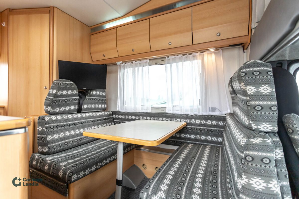 Näppärä ja lämminhenkinen alkovimallin auto valmiina seikkailuun. Markiisi Pyöräteline Kattokaiteet/tikkaat Peruutuskamera Sähkökäyttöiset ikkunat Kattoluukku Aurinkopaneeli Iso pöytäryhmä Keskuslämmitys Truma Lämminvesiboileri Jääkaappi Pakastelokero Kasetti WC Liesi Pesuallas