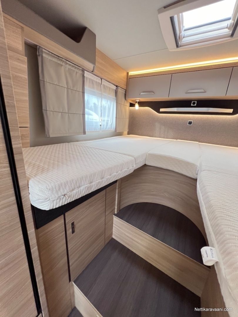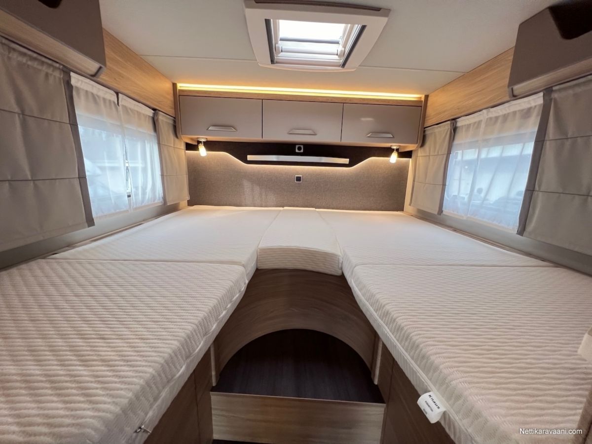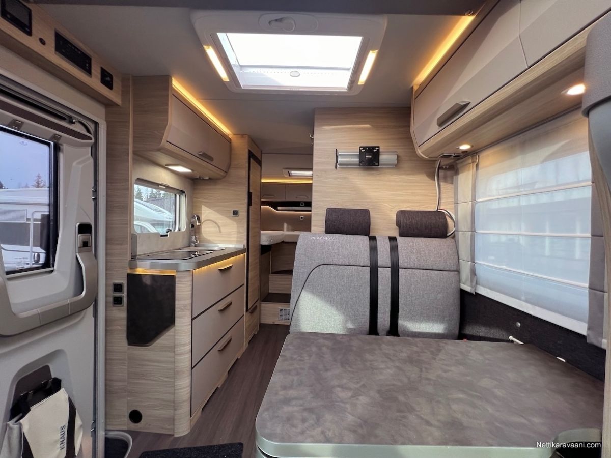 Ajotietokone, Jääkaappi, Kasetti WC, Kasettiverhot, Keskuslukitus: Kaukosäätöinen, Liesi, Lämminvesiboileri, Markiisi, Navigaattori, Ohjaustehostin, Pakastelokero, Pesuallas, Pysäköintikamera, Suihku, Sähkökäyttöiset ikkunat, Sähköpeilit, Vakionopeudensäädin, ABS-jarrut, Airbag, Ajonvakautusjärjestelmä, Luistonesto, Alde, Erikoisvanteet, Eristetty harmaavesisäiliö, Huoltokirja, Kattoluukku, Lattialämmitys, Sähköpatruuna, Sähkörappu, Turbo