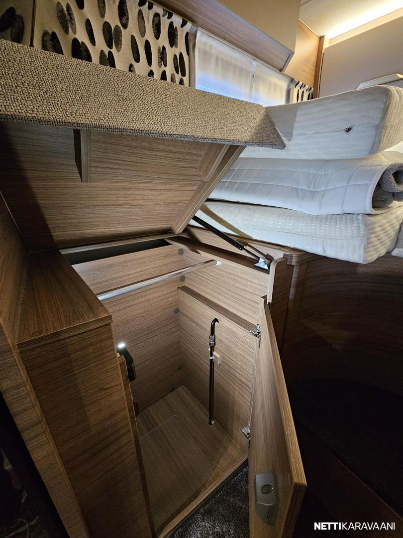 - Älykäs Dometic invertteri verkonvaihtoautomatiikalla. Mm. asuinosan ilmastointia mahdollista käyttää invertterin kautta akuilla.