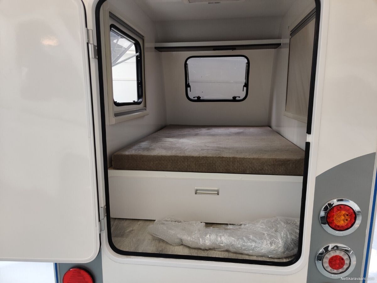 Tilaustuote saatavilla 6-8 vkon toimitusajalla Se vähän minipoksia isompi midipoksi. Korotettu vuode, 3x ikkuna, kattoluukku, sisävalot, hyllyjä. Aivan loistava katsastus vapaa kevyt retkeilijän unelma. Vaunu, asuntovaunu, matkailuvaunu, asuntoauto, matkailuauto, karavaanari, Tuusula, K&K Kivinen, Hobby, Kabe, Fendt, Poksi, Kulkuri, Respo, Ontour, Maxia, De luxe, Excellent, Prestige, Premium, NTL, NT, N, Katsastusvapaa vaunu, Opal, Diamant, Saphir.