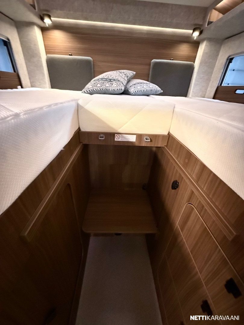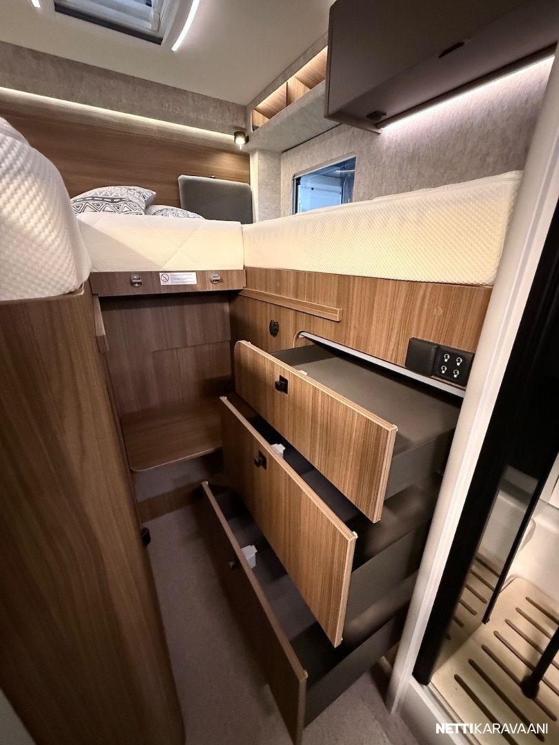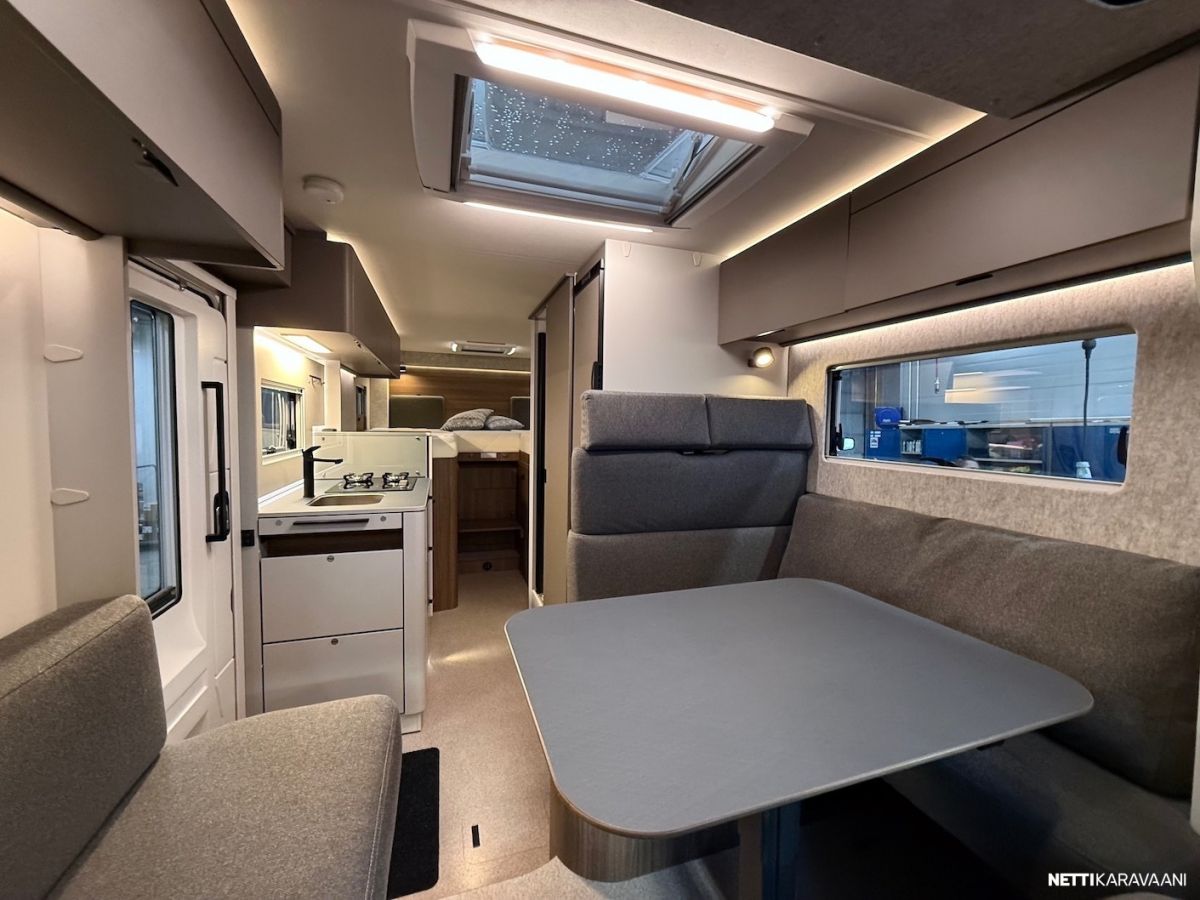 Ajotietokone, Jääkaappi, Kasetti WC, Kasettiverhot, Keskuslukitus: Kaukosäätöinen, Lattiamatot asunto-osassa, Liesi, Lämminvesiboileri, Markiisi, Ohjaustehostin, Pakastelokero, Pesuallas, Suihku, Sähkökäyttöiset ikkunat, Sähköpeilit, Vakionopeudensäädin, ABS-jarrut, Airbag, Ajonvakautusjärjestelmä, Luistonesto, Sumuvalot, Erikoisvanteet, Eristetty harmaavesisäiliö, Kattoluukku, Lattialämmitys, Sähköpatruuna, Trumatic, Turbo