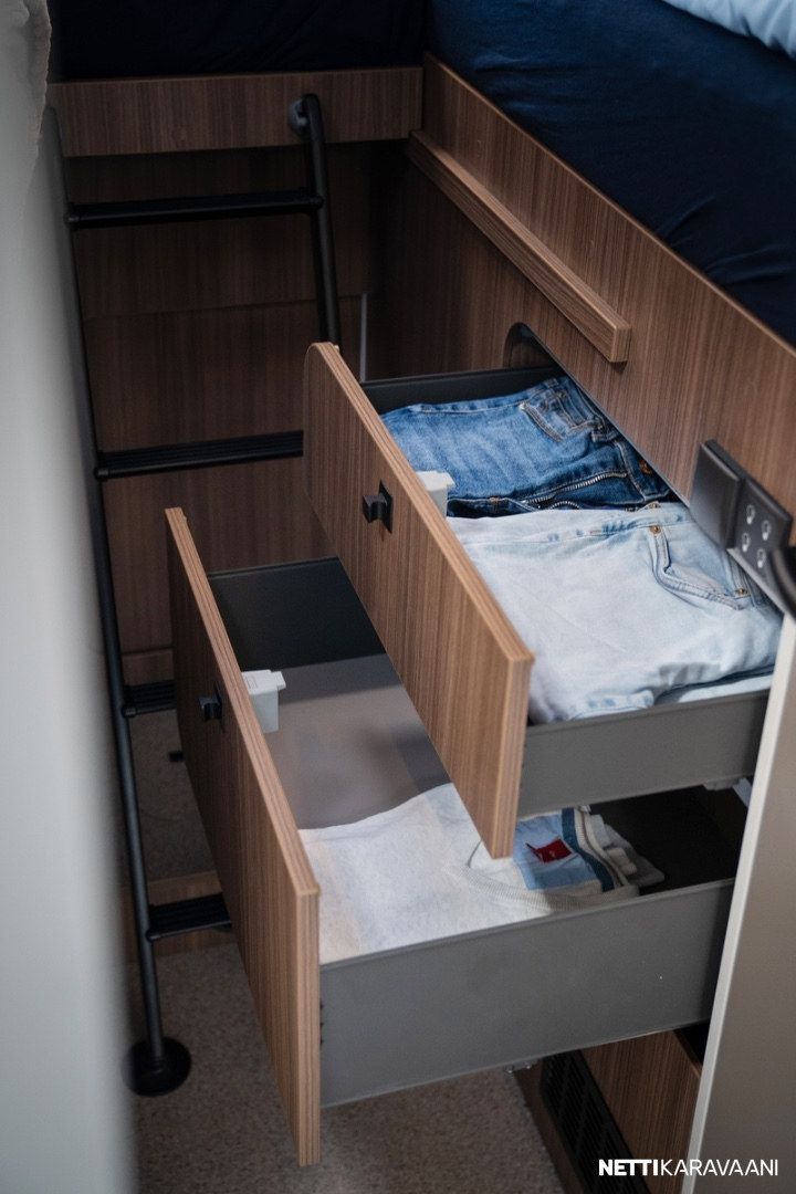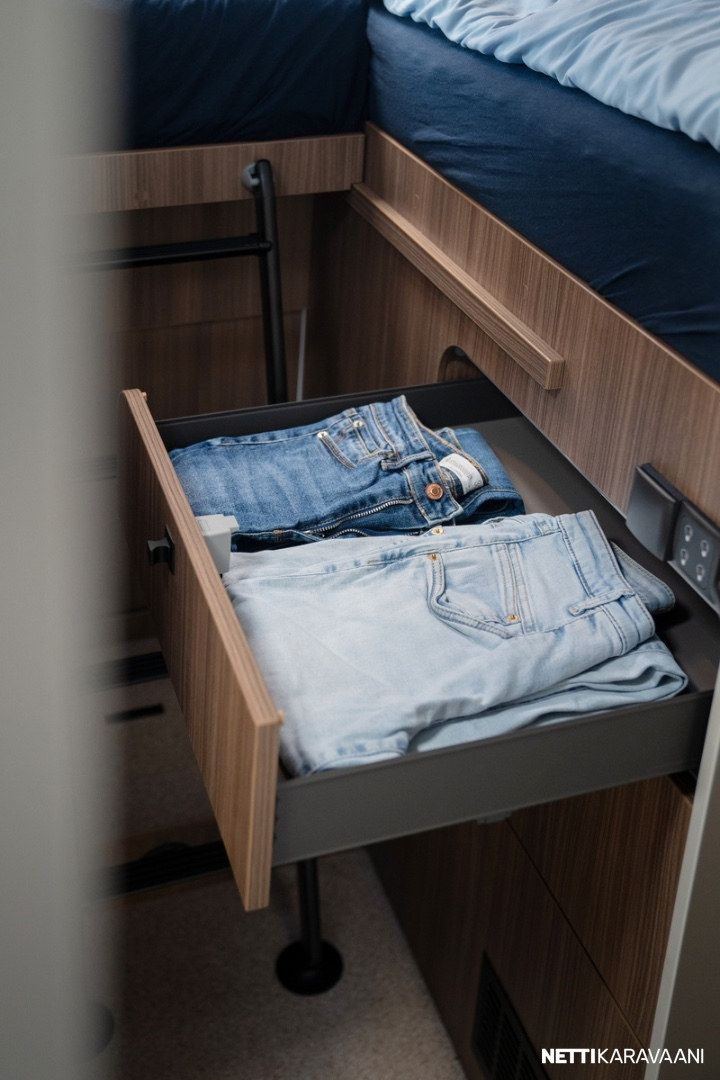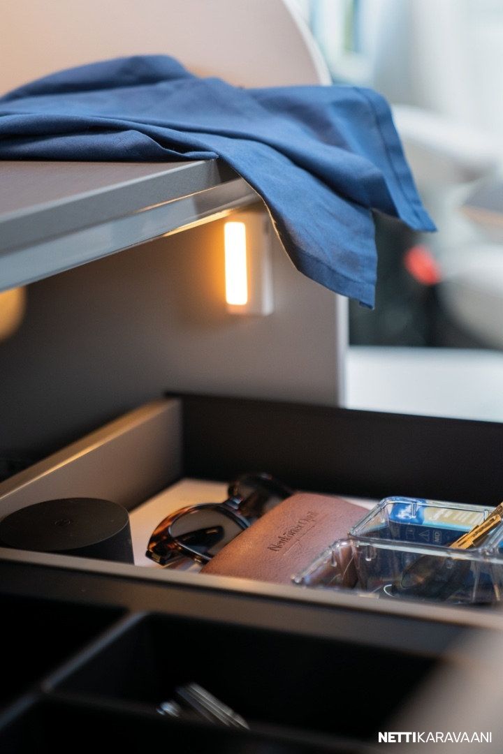 Ajotietokone, Jääkaappi, Kasetti WC, Kasettiverhot, Keskuslukitus: Kaukosäätöinen, Liesi, Lämminvesiboileri, Markiisi, Ohjaustehostin, Pakastelokero, Pesuallas, Pysäköintikamera, Suihku, Sähkökäyttöiset ikkunat, Sähköpeilit, Vakionopeudensäädin, ABS-jarrut, Airbag, Ajonvakautusjärjestelmä, Luistonesto, Sumuvalot, Erikoisvanteet, Eristetty harmaavesisäiliö, Kattoluukku, Lattialämmitys, Sähköpatruuna, Trumatic, Turbo