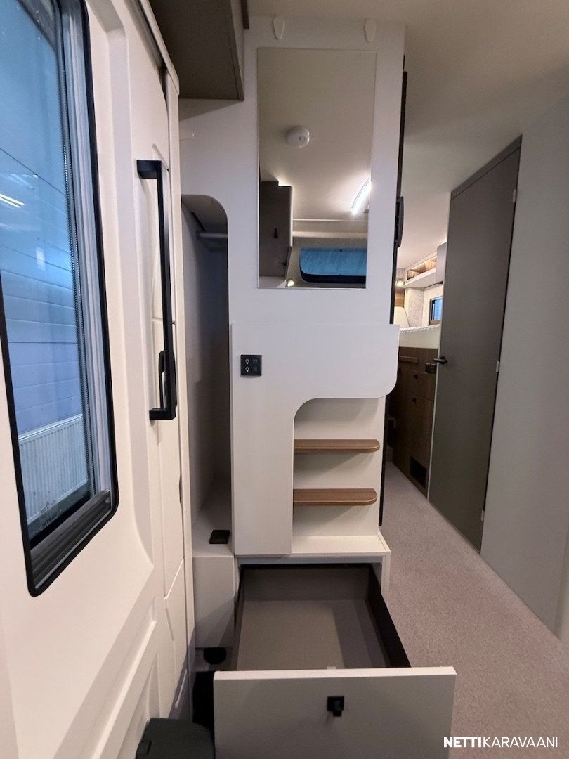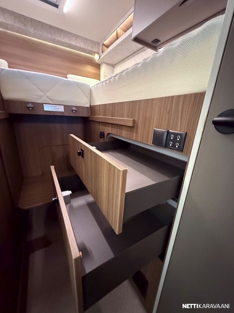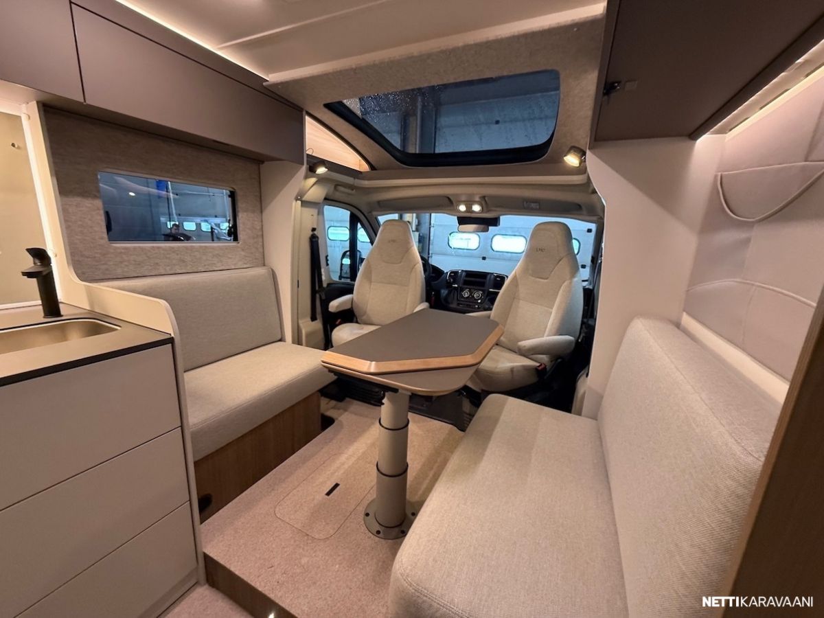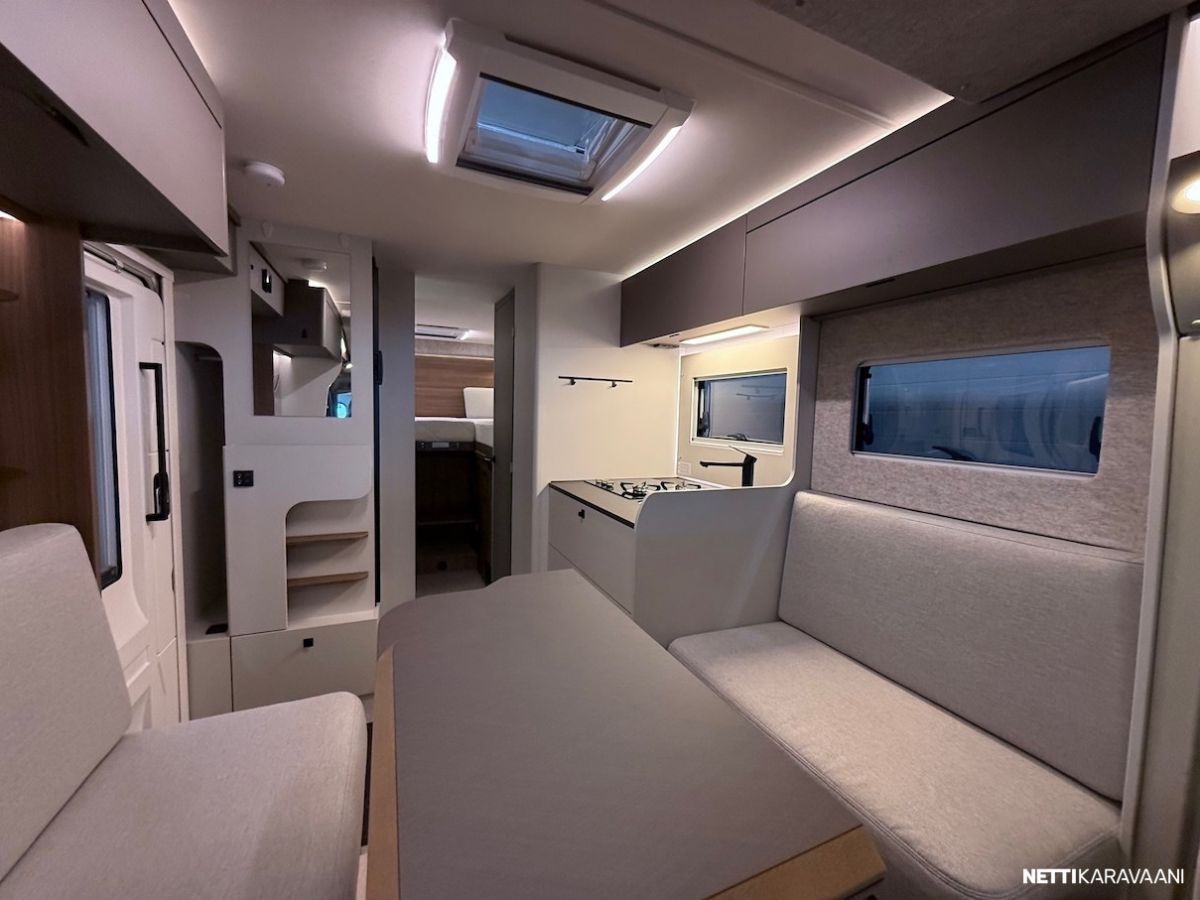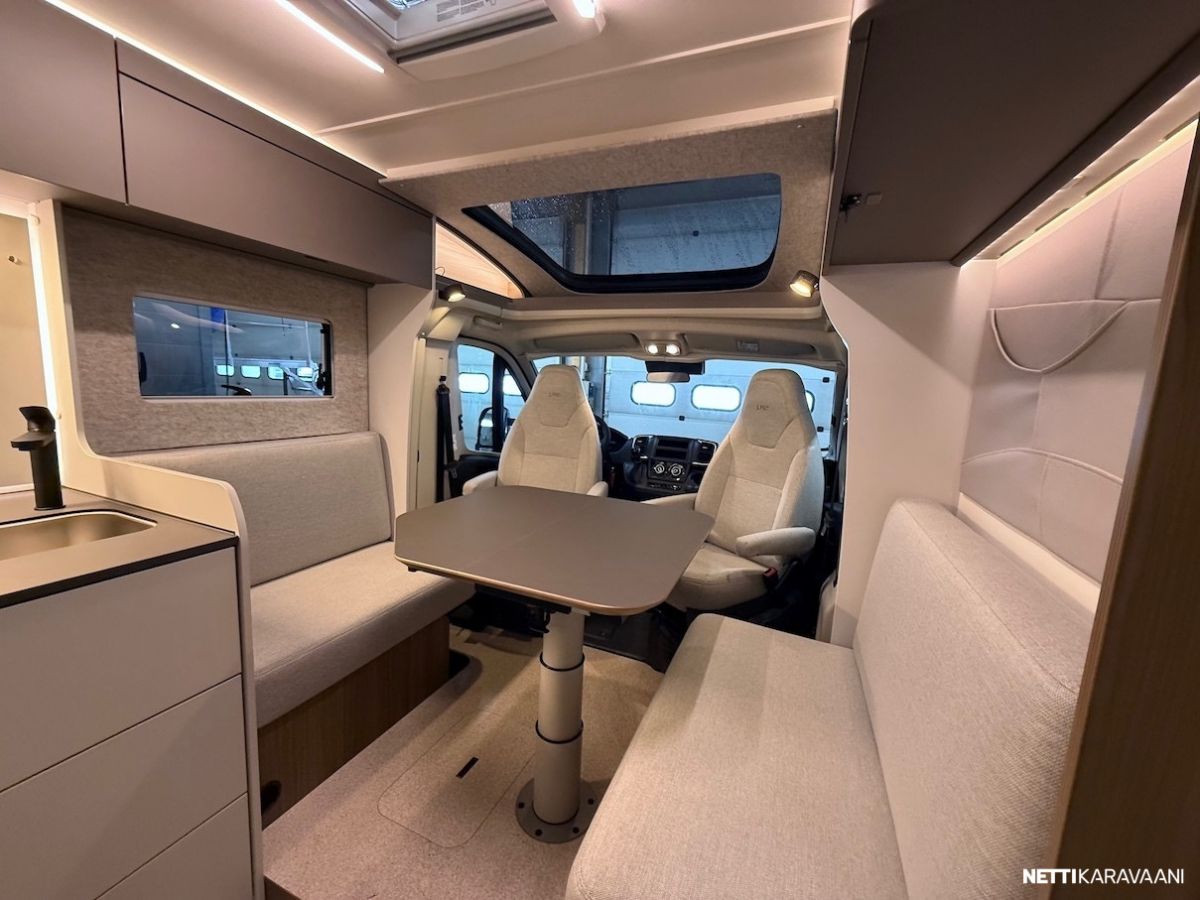 Ajotietokone, Jääkaappi, Kasetti WC, Kasettiverhot, Keskuslukitus: Kaukosäätöinen, Lattiamatot asunto-osassa, Liesi, Lämminvesiboileri, Markiisi, Ohjaustehostin, Pakastelokero, Pesuallas, Pysäköintikamera, Suihku, Sähkökäyttöiset ikkunat, Sähköpeilit, Vakionopeudensäädin, ABS-jarrut, Airbag, Ajonvakautusjärjestelmä, Luistonesto, Sumuvalot, Erikoisvanteet, Eristetty harmaavesisäiliö, Kattoluukku, Lattialämmitys, Sähköpatruuna, Trumatic, Turbo