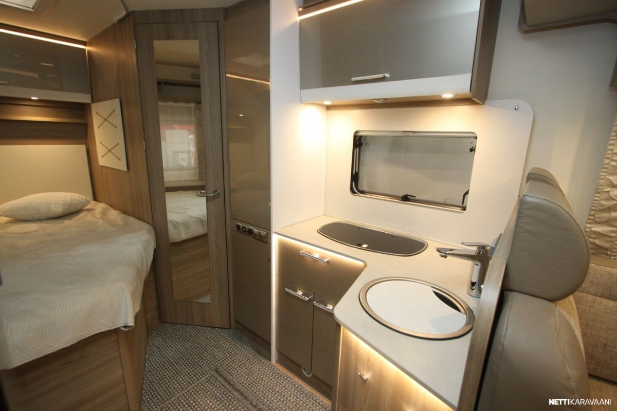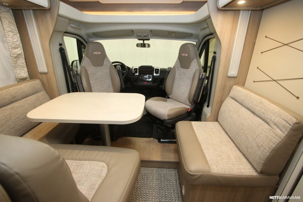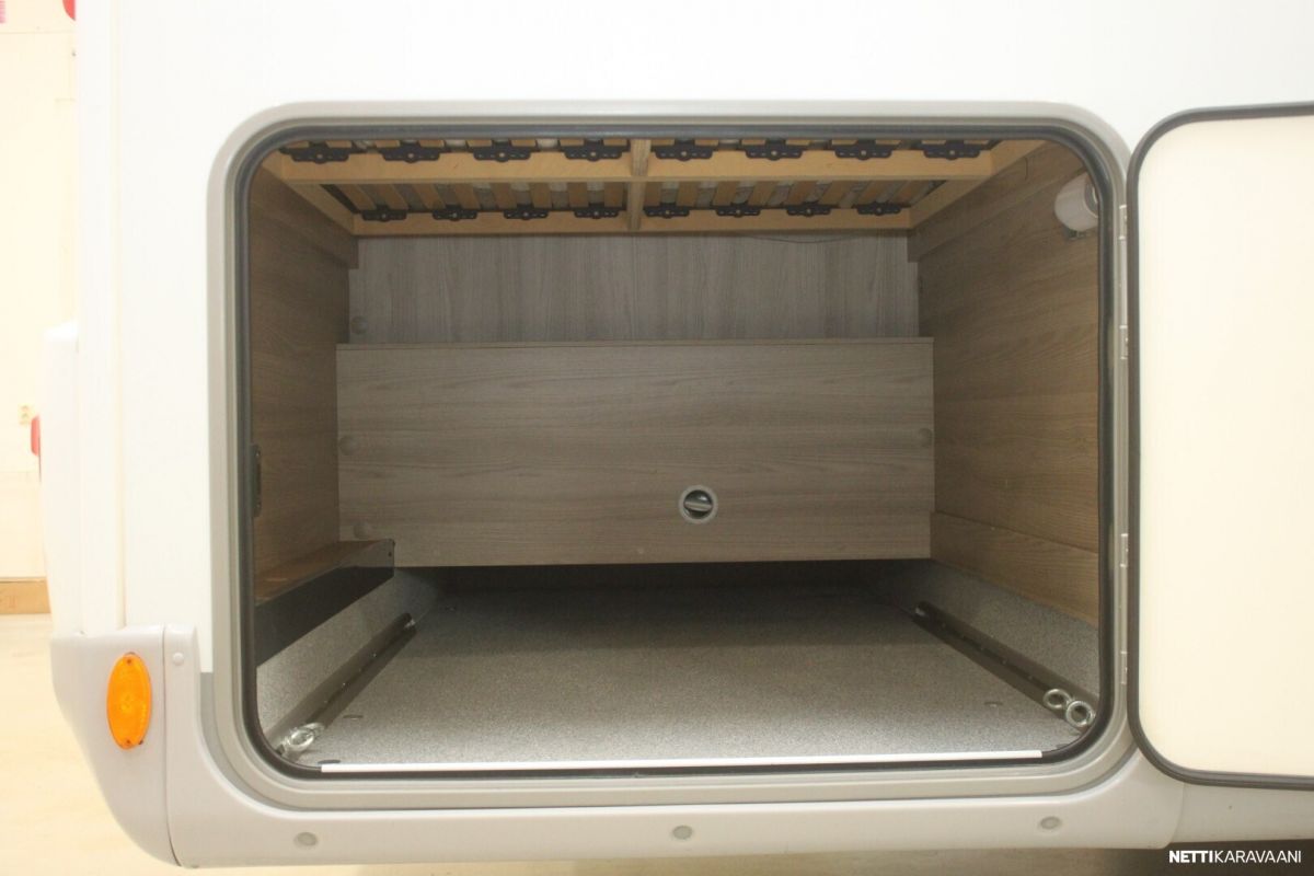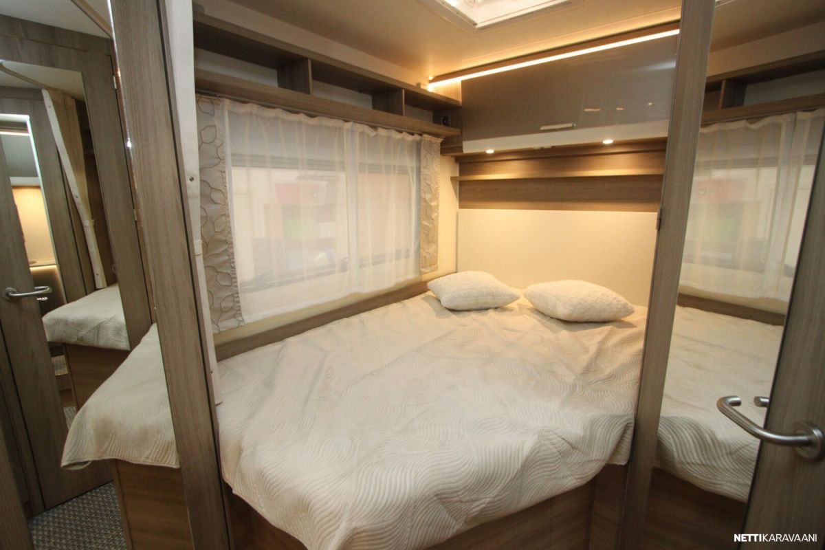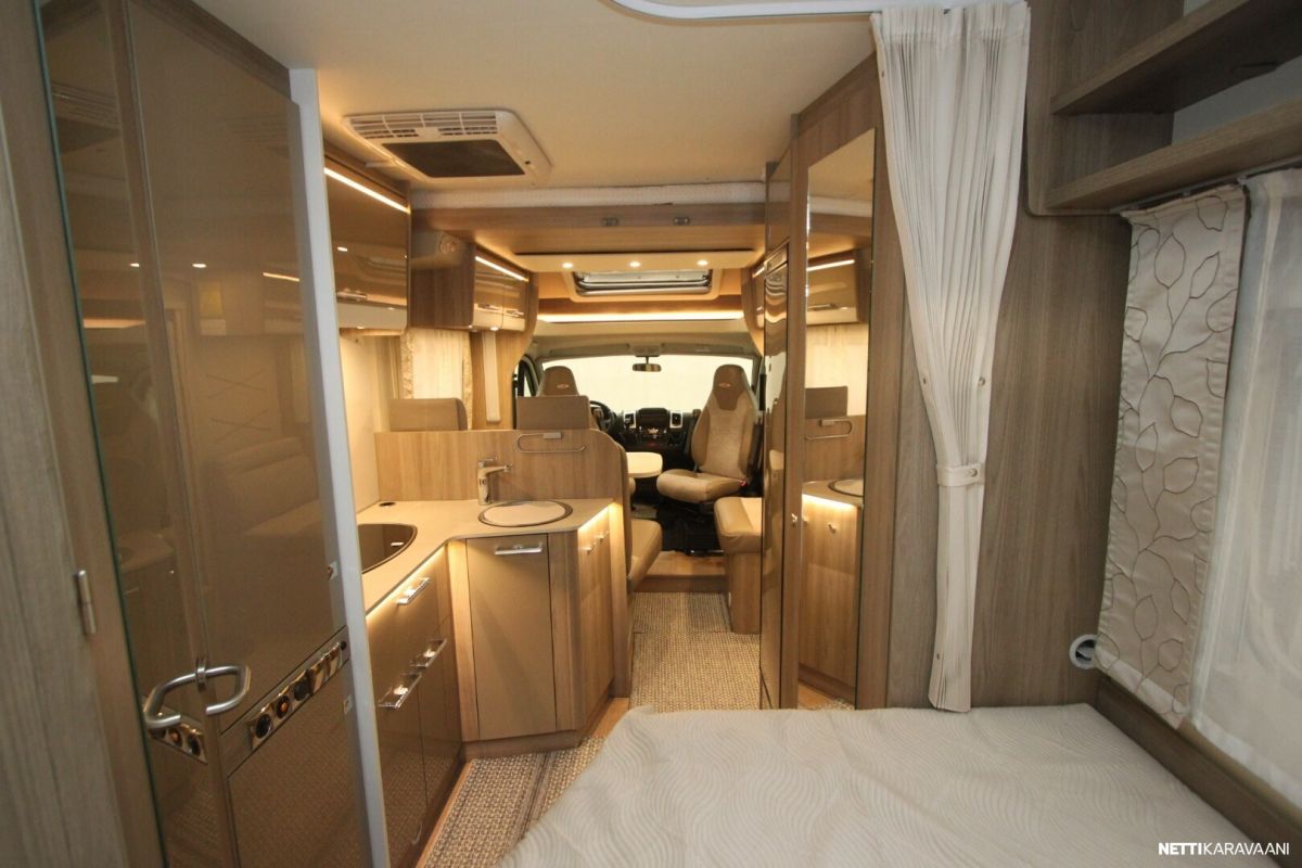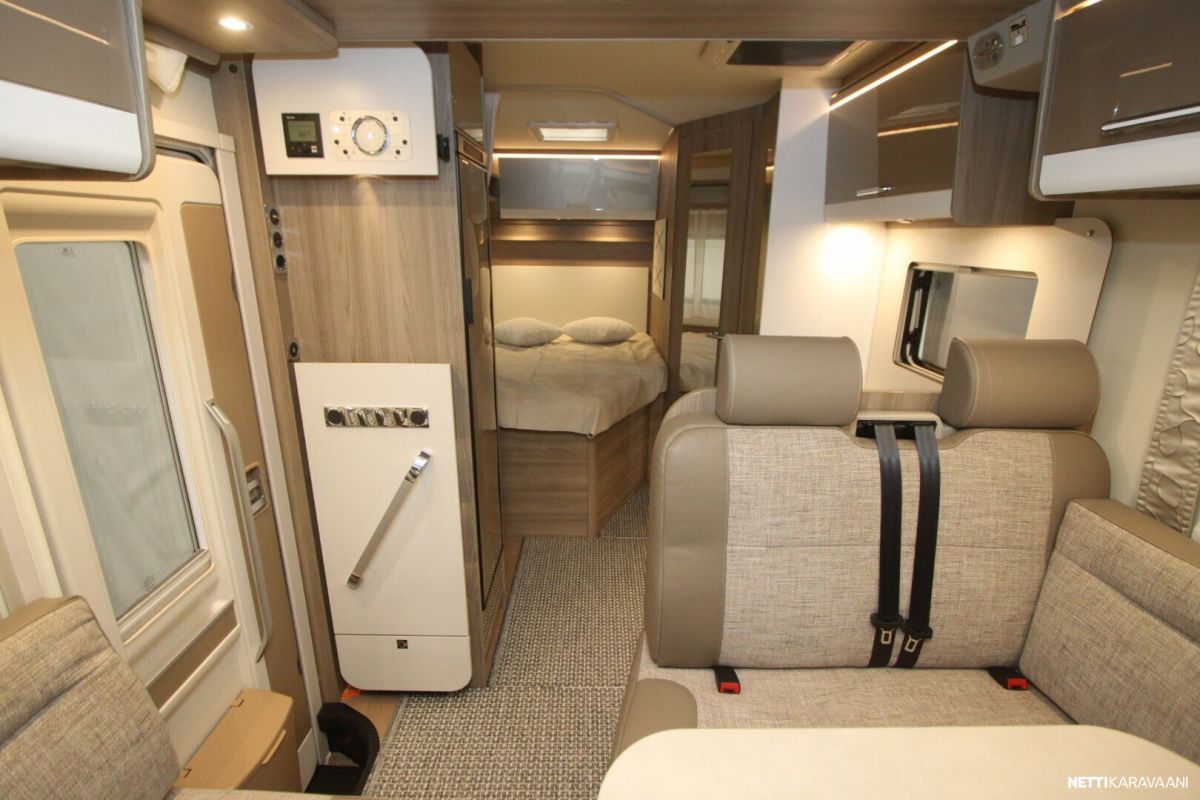Ajotietokone, Jääkaappi, Kasetti WC, Kasettiverhot, Keskuslukitus: Kaukosäätöinen, Liesi, Lohkolämmitin, Lämminvesiboileri, Markiisi, Ohjaustehostin, Pakastelokero, Pesuallas, Pysäköintikamera, Sisätilanpistoke, Suihku, Sähkökäyttöiset ikkunat, Sähköpeilit, Vakionopeudensäädin, ABS-jarrut, Airbag, Käynnistyksenesto, Erikoisvanteet, Huoltokirja, Kahdet renkaat, Kattoluukku, Trumatic, Turbo, Lattialämmitys, Sähköpatruuna