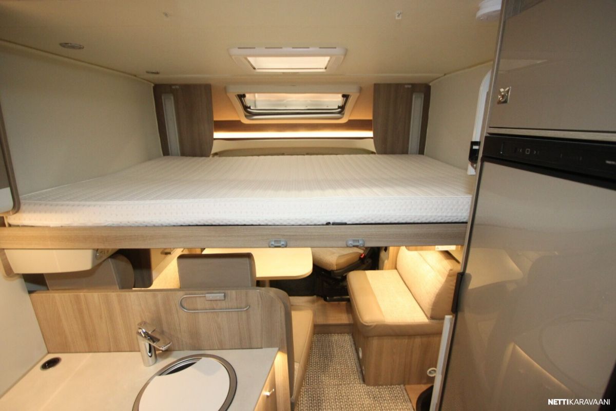 Petipaikkojakin autosta löytyy 4:lle hengelle. Etuosan laskuvuode laskeutuu katosta kädenkäänteessä sähköisesti vain nappia painamalla.
