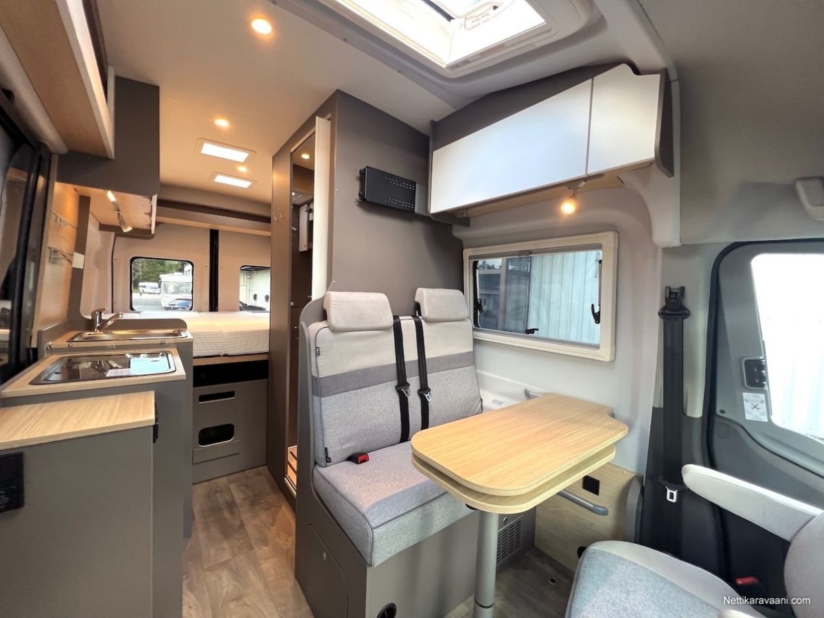 Vaihteisto: Automaatti Polttoaine: Diesel Vetotapa: Etuveto Pituus: 598 cm Matkustajat: 4 Kokonaismassa: 3 500 kg Makuupaikat: 3 Ajokortti: B Lämmitys: Ilmakeskuslämmitys