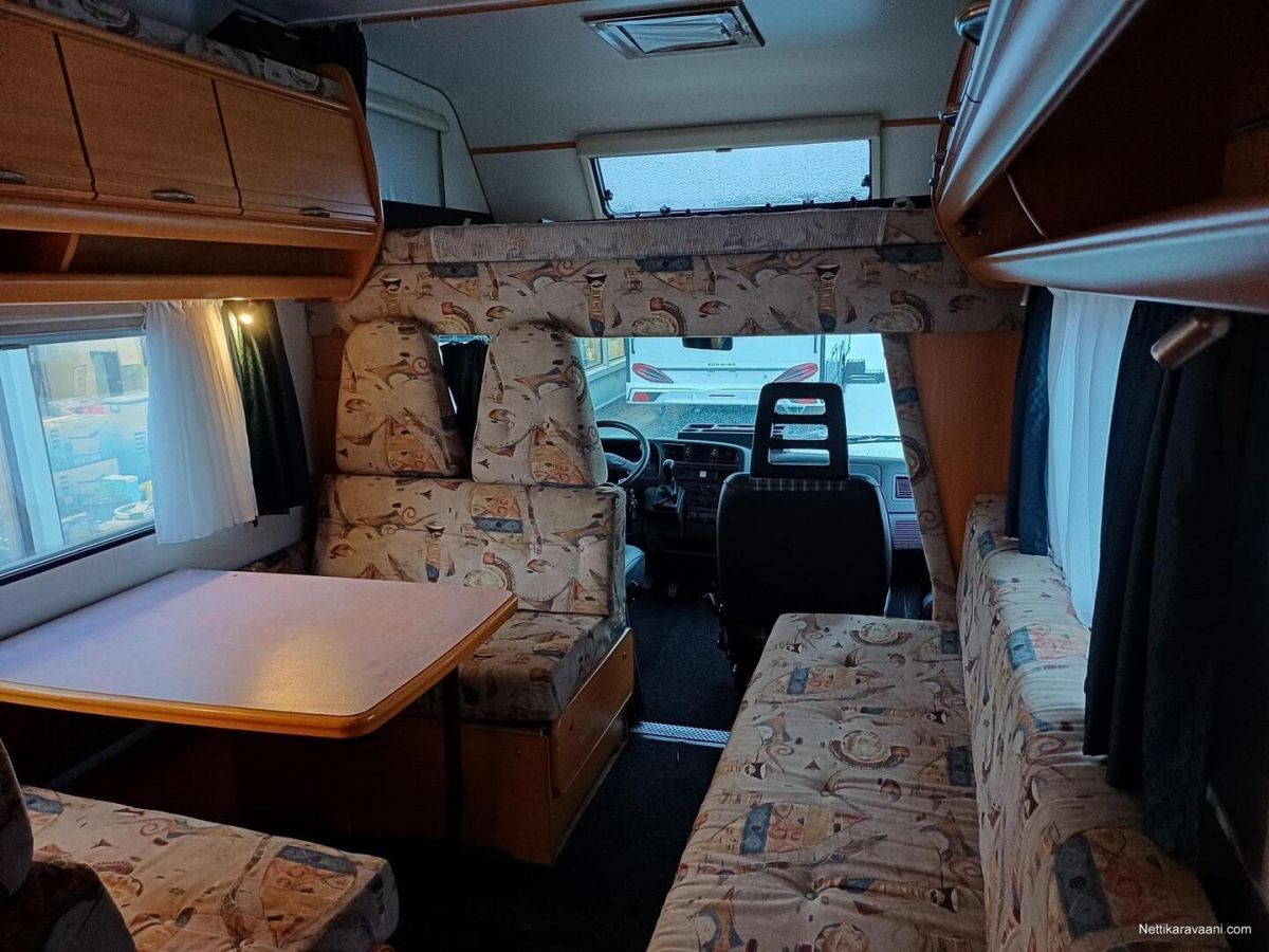 Vaihteisto: Manuaali Polttoaine: Diesel Vetotapa: Etuveto Leveys: 225 cm Pituus: 590 cm Rekisteröity: 01.01.1999 Katsastettu: 01.02.2026 Matkustajat: 6 Oma massa: 2 825 kg Makuupaikat: 5 Ajokortti: Ei määritelty Lämmitys: Nestekiertoinen keskuslämmitys
