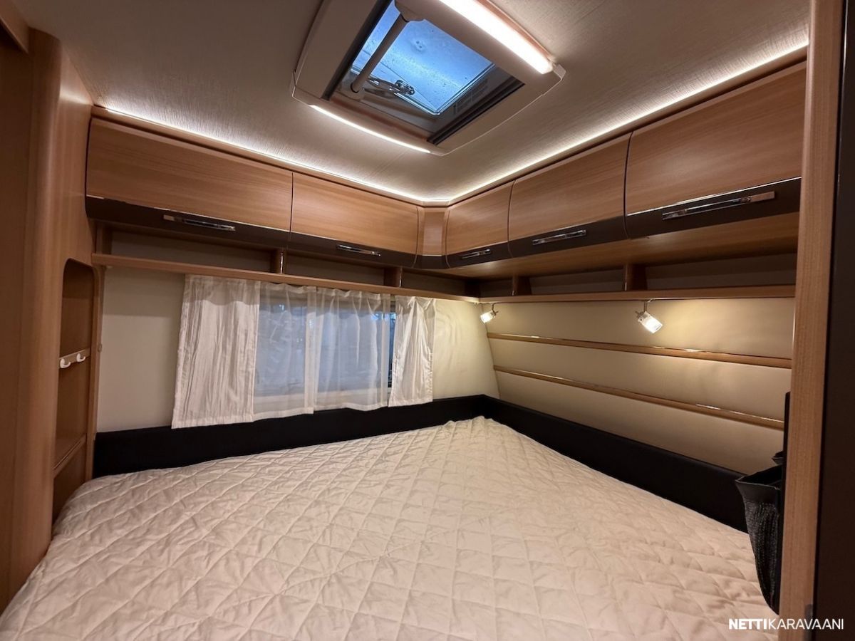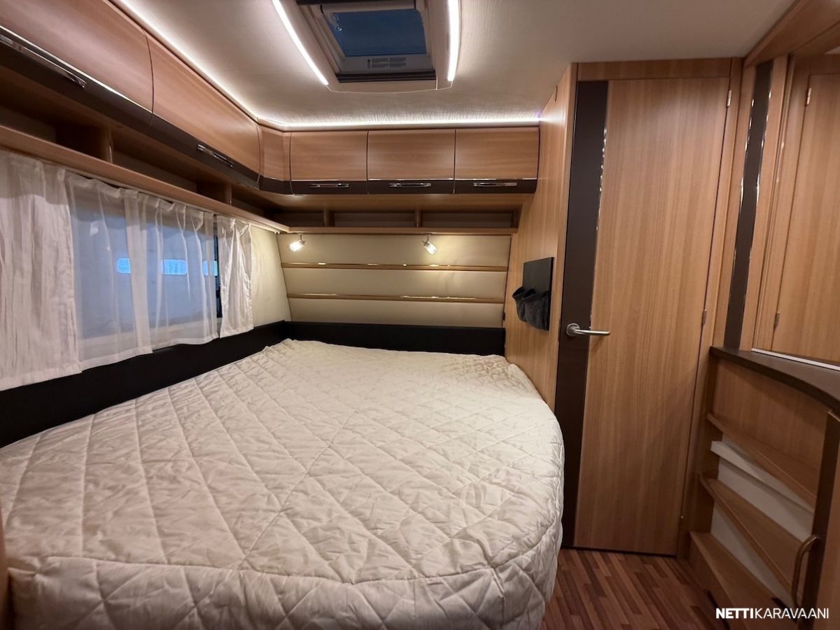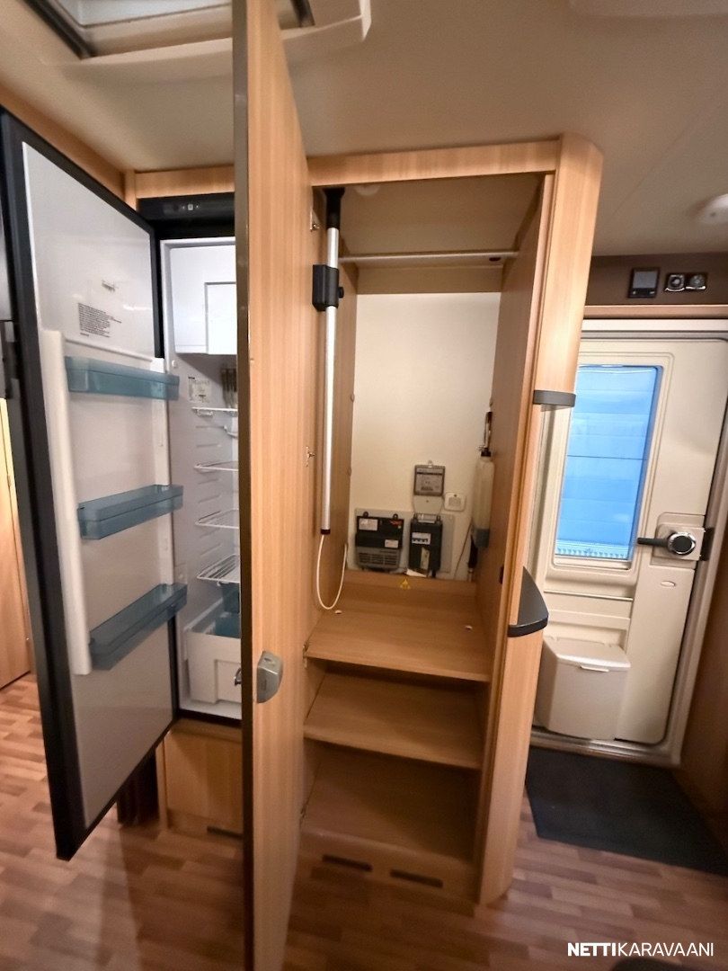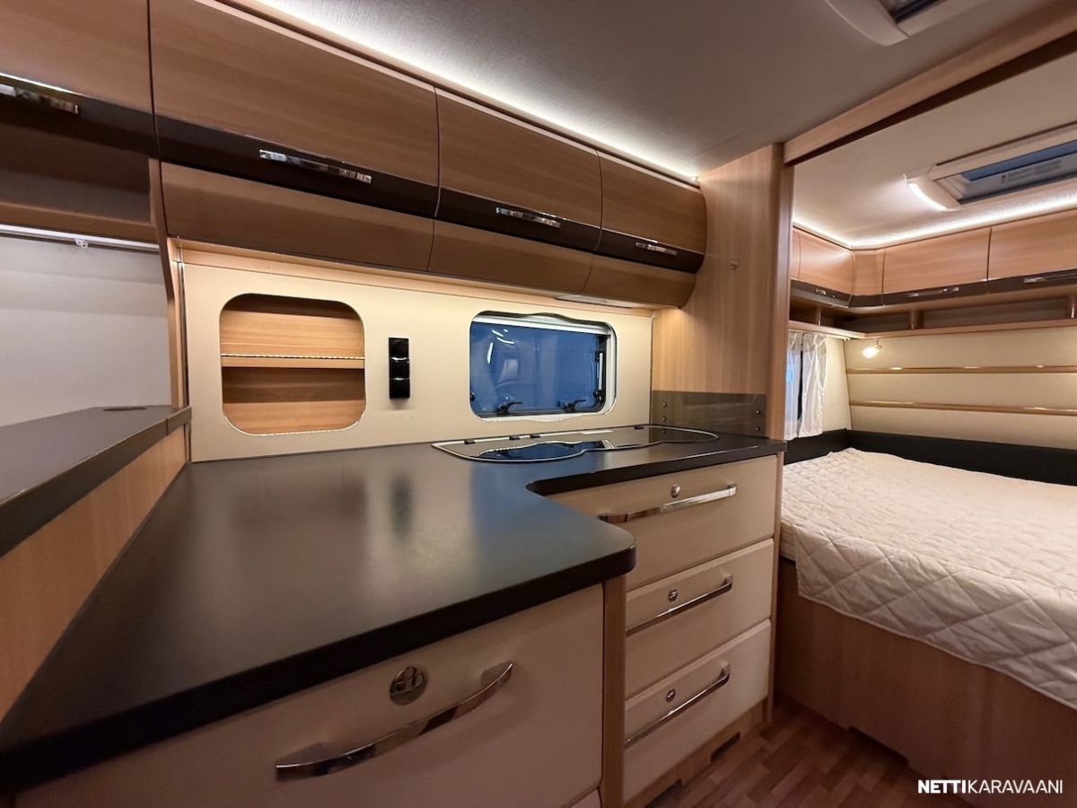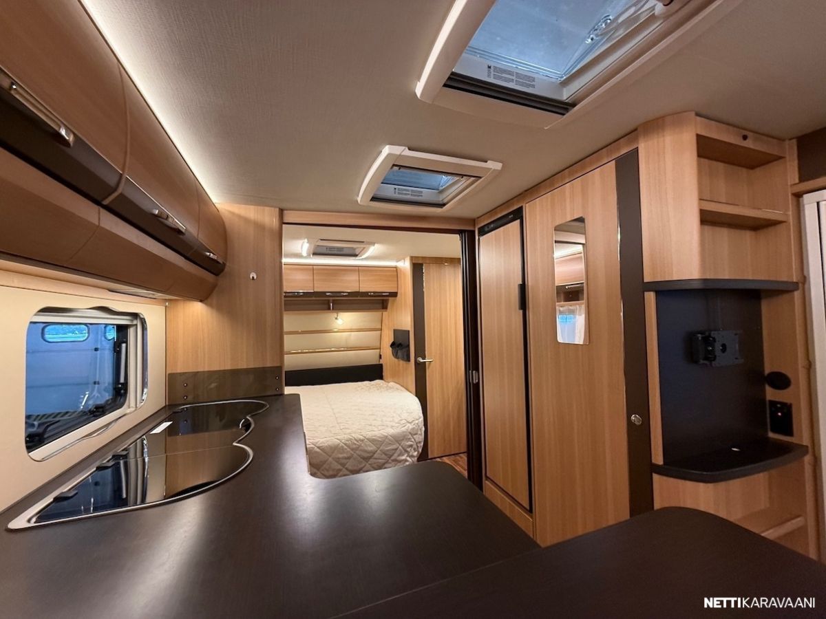 Alde -nestekeskuslämmitys, nestekiertoinen lattialämmitys, puuvapaa LLT-korirakenne ja XPS-Foam -eristys, kaikki vesijärjestelmät, myös jätevesisäiliö, sisällä lämpimässä, automaattinen kaasupullonvaihtaja sisänäytöllä, leveä ulko-ovi ikkunalla, hyttysverkko-ovi, LED -valaistus ja epäsuora tunnelmavalaistus himmentimellä, tilava SlimTower -jääkaappi, tavaraluukku sängyn alle, TV-antenni, kWh -mittari, koriin upotetut Polyvision alumiinikarmi-ikkunat.