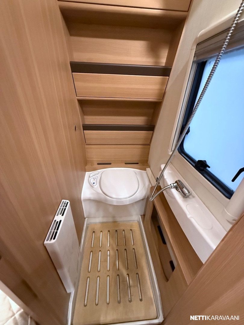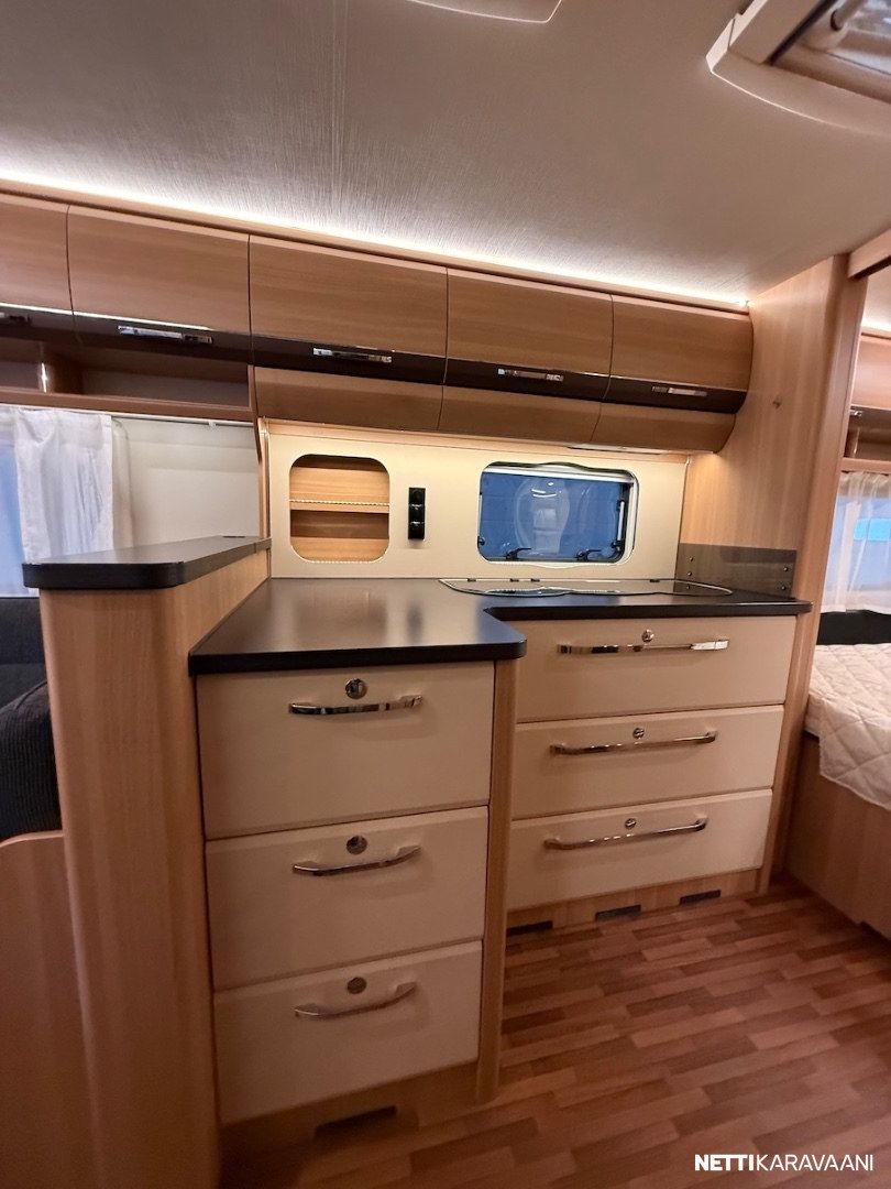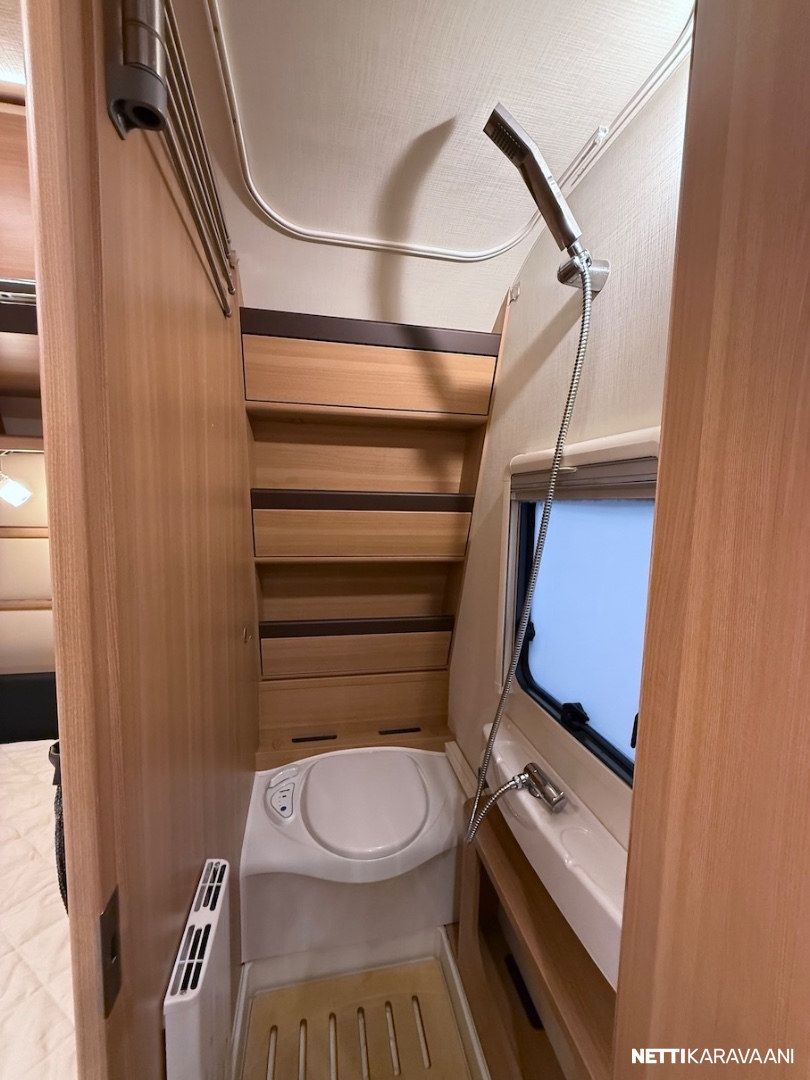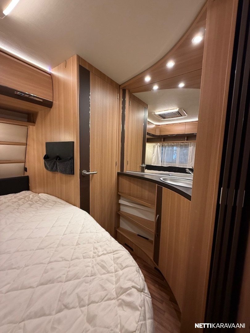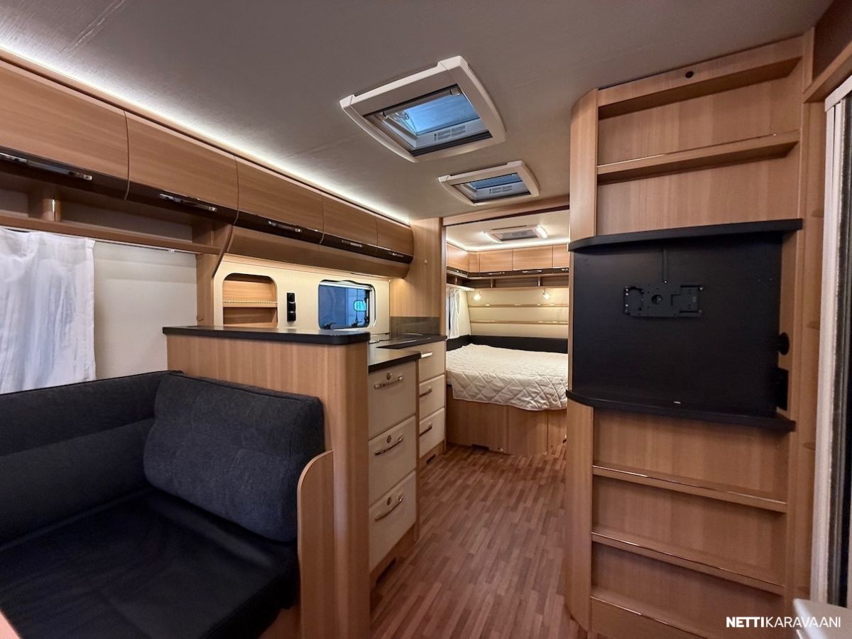 Alde -nestekeskuslämmitys, nestekiertoinen lattialämmitys, puuvapaa LLT-korirakenne ja XPS-Foam -eristys, kaikki vesijärjestelmät, myös jätevesisäiliö, sisällä lämpimässä, automaattinen kaasupullonvaihtaja sisänäytöllä, leveä ulko-ovi ikkunalla, hyttysverkko-ovi, LED -valaistus ja epäsuora tunnelmavalaistus himmentimellä, tilava SlimTower -jääkaappi, tavaraluukku sängyn alle, TV-antenni, kWh -mittari, koriin upotetut Polyvision alumiinikarmi-ikkunat.