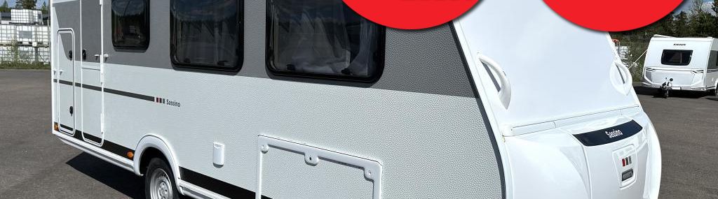 CARAVANMESSUTARJOUS! TÄHÄN VAUNUUN 185W AURINKOPANEELI KAUPAN PÄÄLLE!! ARVO 1.000EUR. LISÄKSI EDULLINEN 2.49% + KULUT KIINTEÄ KORKOTARJOUS. TARJOUS VOIMASSA 12.10.2025 ASTI!, Ulkoisesti ja sisustaltaan uudistunut Sassino kevyenä ja mukautuvana lapsiperhemallina aktiiviselle liikkujalle. Tyylikäs skandinaavinen harmaa sisustus puunvärisillä kalusteilla ja mustilla yksityiskohdilla huokuu arvokkuutta. Vaunun pohjalevy lasikuitua eli ei happanevaa pohjavaneria! Vuodepaikat jopa kuudelle hengelle. Vuoteet takana 200/195 x 83cm, Vuode edessä 192 x 92cm Perusvaunu: 26.200eur, Autarkie-paketti 1.150eur (sis. 12 V kiertoilma-automatiikka - Akku 95 Ah AGM - Laturi - Akkujen jännityksen näyttö - 12 V pääkytkin), Sassino-paketti 2.630eur (sis. Harmaavesisäiliö 25L pyörillä - Vararengasteline kaasupullokotelossa - Hyttysverkko-ovi - Lisävalaistus valokisko sis. spottivalot - Katon vahvistus ilmastointilaitteelle - 2x USB-pistoke virtakiskossa - Nokkapyörä ja aisapainon näyttö - Tuorevesisäiliö 44 l ulkopuolisella täyttötuella - , Talla takatukijalkoihin)