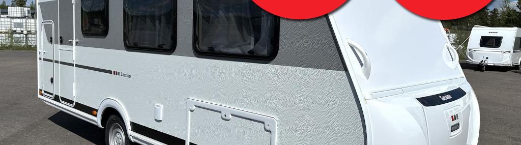 HELSINGIN CARAVANMESSUTARJOUS! TÄMÄ VAUNU MESSUTARJOUSHINTAAN 27.900E + TOIMITUSKULUT! VAUNUN OVH 29.980E ELI ETUSI 2.080E! LISÄKSI SAAT EDULLISEN 2.49% + KULUT KIINTEÄN KORKOTARJOUKSEN VAUNULLE. TARJOUKSET VOIMASSA 02.02.2026 ASTI!, Ulkoisesti ja sisustaltaan uudistunut Sassino kevyenä ja mukautuvana lapsiperhemallina aktiiviselle liikkujalle. Tyylikäs skandinaavinen harmaa sisustus puunvärisillä kalusteilla ja mustilla yksityiskohdilla huokuu arvokkuutta. Vaunun pohjalevy lasikuitua eli ei happanevaa pohjavaneria! Vuodepaikat jopa kuudelle hengelle. Vuoteet takana 200/195 x 83cm, Vuode edessä 192 x 92cm Perusvaunu: 26.200eur, Autarkie-paketti 1.150eur (sis. 12 V kiertoilma-automatiikka - Akku 95 Ah AGM - Laturi - Akkujen jännityksen näyttö - 12 V pääkytkin), Sassino-paketti 2.630eur (sis. Harmaavesisäiliö 25L pyörillä - Vararengasteline kaasupullokotelossa - Hyttysverkko-ovi - Lisävalaistus valokisko sis. spottivalot - Katon vahvistus ilmastointilaitteelle - 2x USB-pistoke virtakiskossa - Nokkapyörä ja aisapainon näyttö - Tuorevesisäiliö 44 l ulkopuolisella täyttötuella - , Talla takatukijalkoihin)
