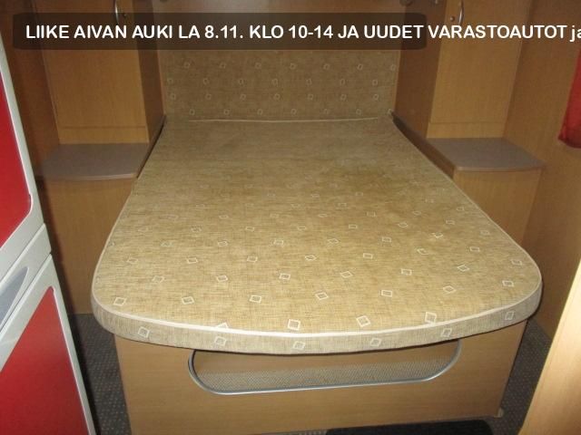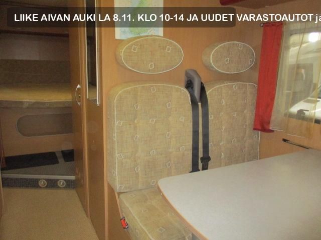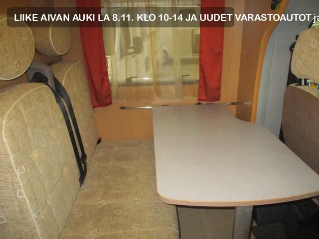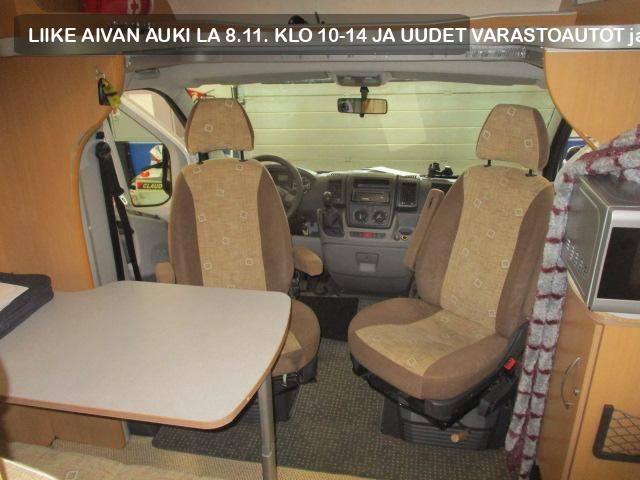 Nopeusrajoitus: 80 km/h Vaihteisto: Manuaali Polttoaine: Diesel Leveys: 2 350 cm Pituus: 7 156 cm Rekisteröity: 05.01.2009 Katsastettu: 19.05.2025 Matkustajat: 4 Kokonaismassa: 3 500 kg Oma massa: 2 985 kg Makuupaikat: 3 Ajokortti: B Lämmitys: Ilmakeskuslämmitys