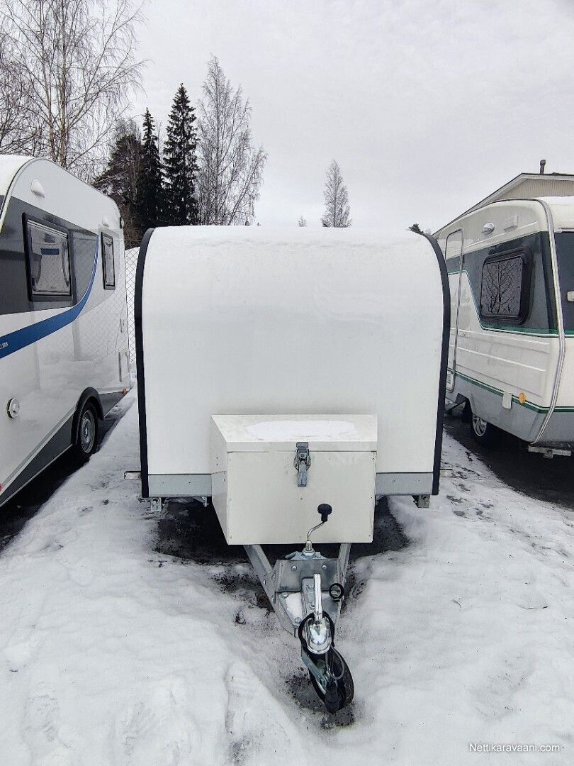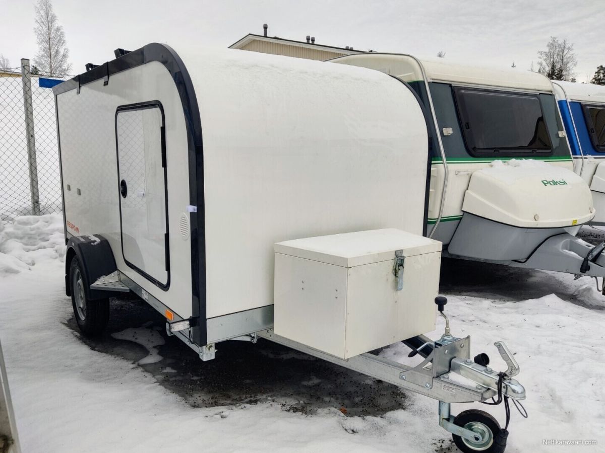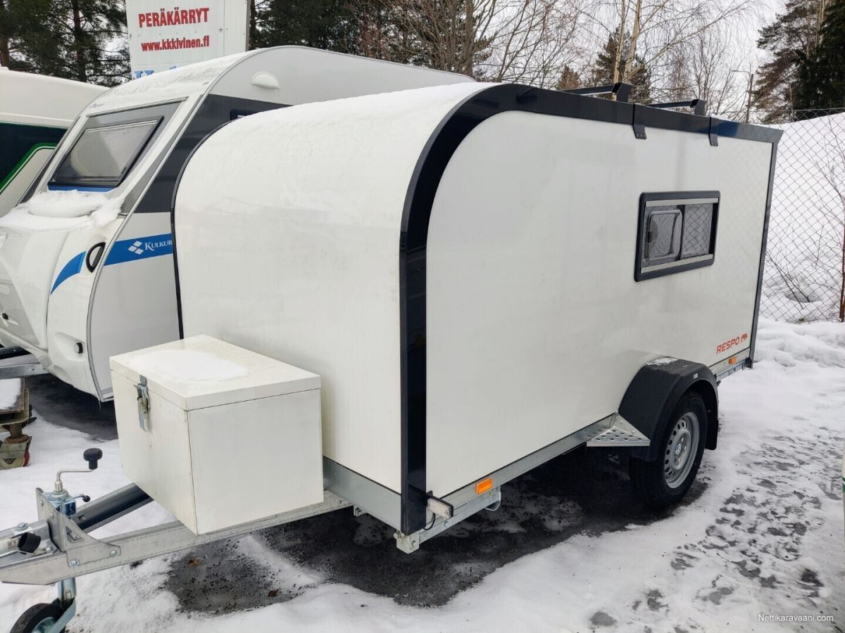 Uusi Respon katsastusvapaa minicaravan lämmityksellä Caravan 3.0 Tuotekoodi: F301T147 Kattotelineet (musta) Tuotekoodi: 16355-M/16444-M- +175.00 € Aurinkosähköjärjestelmä Tuotekoodi: 14468- +415.00 € Akkujärjestelmä Tuotekoodi: 14512- +600.00 € Säilytystila (matala) Tuotekoodi: 14660-V- +325.00 € Diesel-lämmitysjärjestelmä Tuotekoodi: 18165- +475.00 € yhteensä 9760.00 € Saatavilla tilattaessa hyvin lisävarusteita, aina keittiöstä markiisiin ja alumiinivanteisiin, sekä muutamin eri värityksin. Sisämitat: 2.90 x 1.43 m Sisäkorkeus: 1.29 m Ulkomitat: 4.15 x 1.90 m Korkeus: 1.92 m Kokonaispaino: ilman jarruja 750kg / jarrulla 800 kg ja 1350kg Omapaino: ilman jarruja 383 kg / jarrulla 411 kg ja 413 kg Kantavuus: ilman jarruja 367kg / jarrulla 389 kg ja 937kg Renkaat: 750kg – 800kg versiot 155R13 ja 1350kg versiot 185R14C Akseli: kumivääntö Runko: kuumasinkitty Pohja: laminoitu vedenkestävä vaneri Runkopaneelit: säänkestävä XPS-lämpöeristetty lasikuitulaminaatti