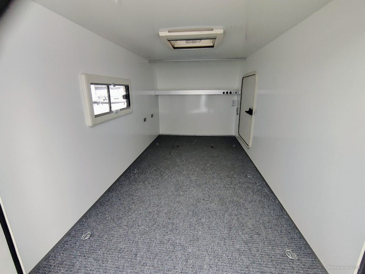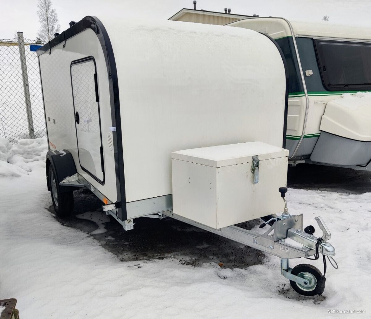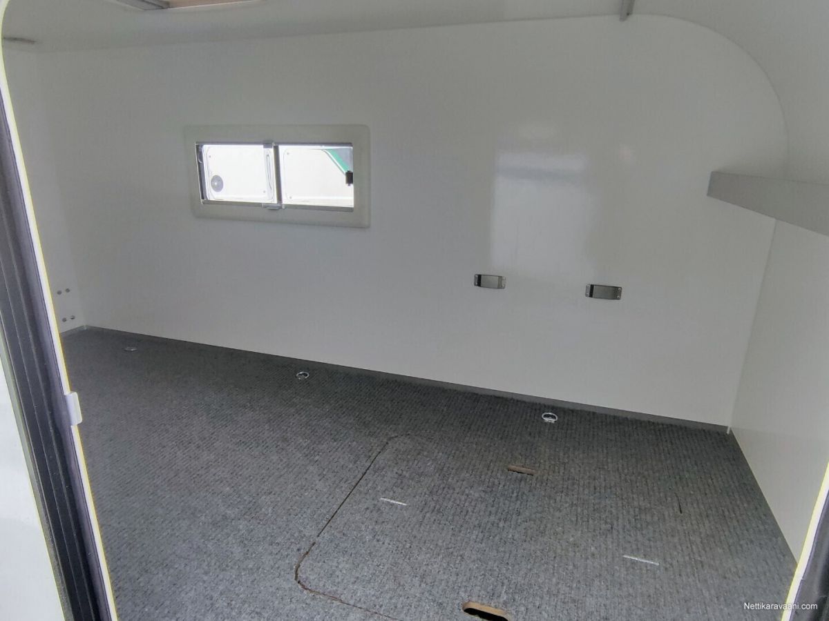 Uusi Respon katsastusvapaa minicaravan lämmityksellä Caravan 3.0 Tuotekoodi: F301T147 Kattotelineet (musta) Tuotekoodi: 16355-M/16444-M- +175.00 € Aurinkosähköjärjestelmä Tuotekoodi: 14468- +415.00 € Akkujärjestelmä Tuotekoodi: 14512- +600.00 € Säilytystila (matala) Tuotekoodi: 14660-V- +325.00 € Diesel-lämmitysjärjestelmä Tuotekoodi: 18165- +475.00 € yhteensä 9760.00 € Saatavilla tilattaessa hyvin lisävarusteita, aina keittiöstä markiisiin ja alumiinivanteisiin, sekä muutamin eri värityksin. Sisämitat: 2.90 x 1.43 m Sisäkorkeus: 1.29 m Ulkomitat: 4.15 x 1.90 m Korkeus: 1.92 m Kokonaispaino: ilman jarruja 750kg / jarrulla 800 kg ja 1350kg Omapaino: ilman jarruja 383 kg / jarrulla 411 kg ja 413 kg Kantavuus: ilman jarruja 367kg / jarrulla 389 kg ja 937kg Renkaat: 750kg – 800kg versiot 155R13 ja 1350kg versiot 185R14C Akseli: kumivääntö Runko: kuumasinkitty Pohja: laminoitu vedenkestävä vaneri Runkopaneelit: säänkestävä XPS-lämpöeristetty lasikuitulaminaatti