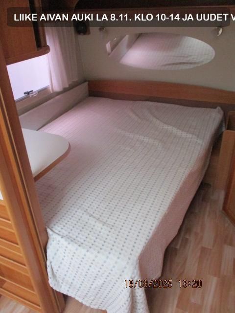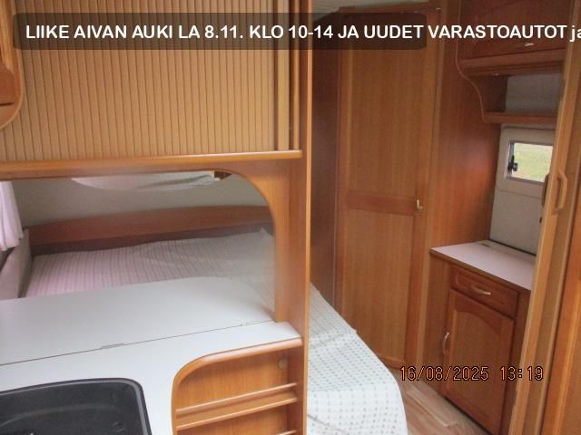 Leveys: 2 540 cm Pituus: 7 340 cm Rekisteröity: 15.04.2004 Katsastettu: 08.06.2023 Kokonaismassa: 1 450 kg Oma massa: 1 230 kg Makuupaikat: 4 Lämmitys: Nestekiertoinen keskuslämmitys